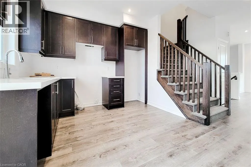 From Rymal Rd E, turn onto Dakota Blvd, then left onto Soho St Welcome to 61 Soho Street, Unit 33 a modern townhouse available for lease in a highly desirable Stoney Creek Mountain neighbourhood. Just over 2 years old, this home offers 3 bedrooms and 3 bathrooms, perfect for families or professionals seeking comfort and convenience.The main floor features a beautiful kitchen with upgraded cabinetry, quartz countertops, and all stainless steel appliances. The open-concept living and dining area is filled with natural light and walks out to a balcony, perfect for everyday living and entertaining.Upstairs, the primary bedroom includes a glass shower partition in the ensuite, while all bedrooms feature Zebra blinds for a stylish and functional finish. Added convenience includes inside-entry garage, in-unit laundry, and modern fixtures throughout.Located close to major highways, grocery stores, restaurants, schools, and parks, this home offers an ideal blend of modern living and excellent accessibility. Don't miss this opportunity to lease a stylish, well-maintained home in one of Hamiltons fastest-growing communities! Please note: Photos were taken prior to the installation of appliances, zebra blinds and paved driveway. (id:27476)