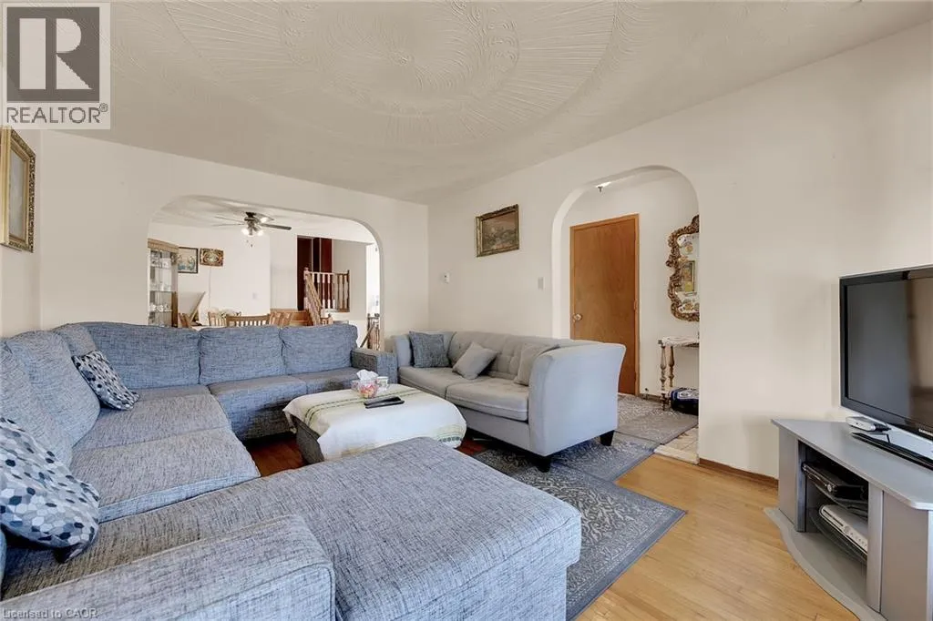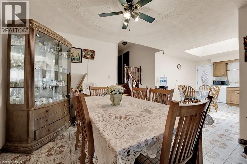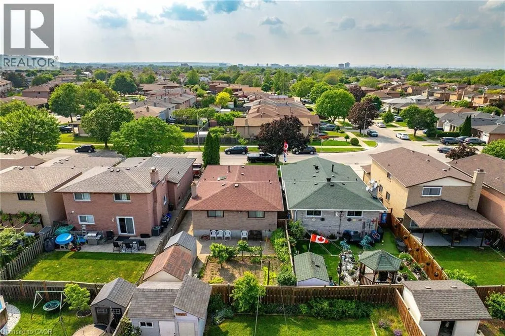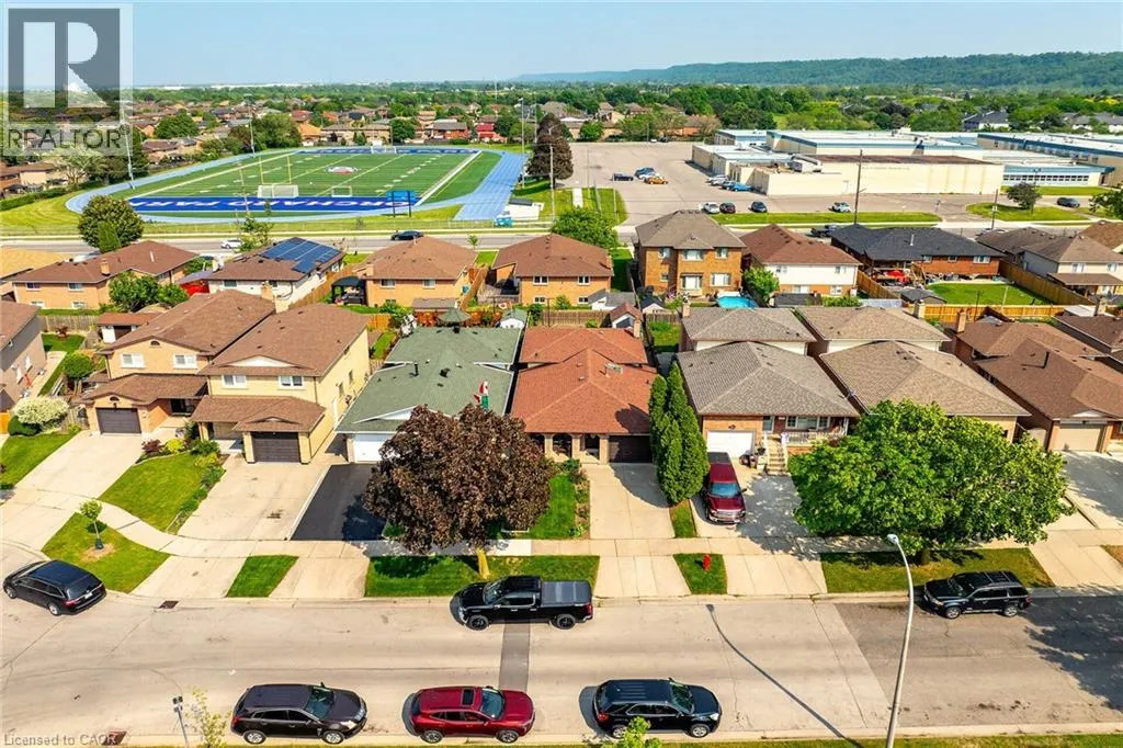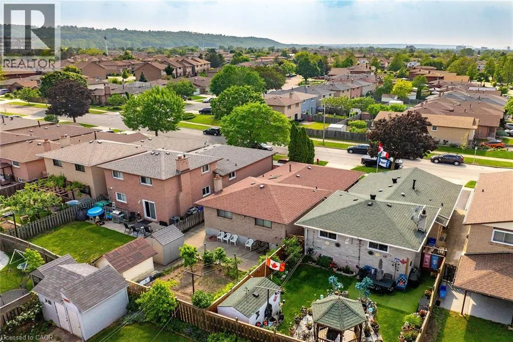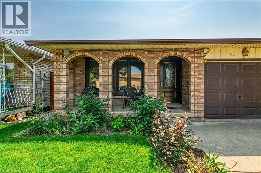 HIGHWAY 8 - NORTH ON DEWITT - WEST ON JUNIPER DRIVE Welcome to 45 Juniper Drive, Stoney Creek. This 4 level-back split is nestled in mature neighbourhood, steps to Orchard Park SS, major shopping, parks, hwy access and much more. Home is humongous and can accommodate small or large families. Upper level features 3 large bedrooms with hardwood flooring and full bathroom. Main level features huge living room with hardwood, eat-in kitchen, separate dining room and 2 separate entrances/exists. Lower level features extra large family room, bar section and 2nd full bathroom. Unspoiled basement awaits your personal touches to add even more living space. Beautiful backyard features patio section, garden and 2 sheds. Single car garage with inside entry, along with single card driveway. RSA. (id:27476)