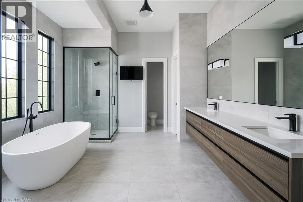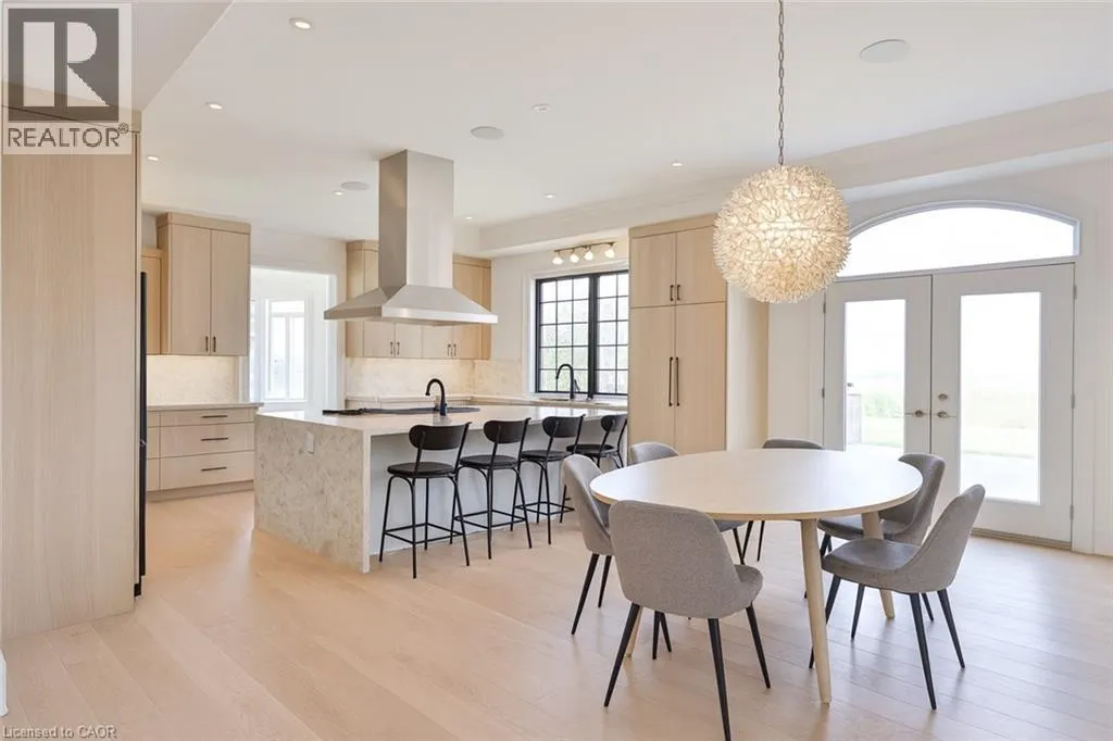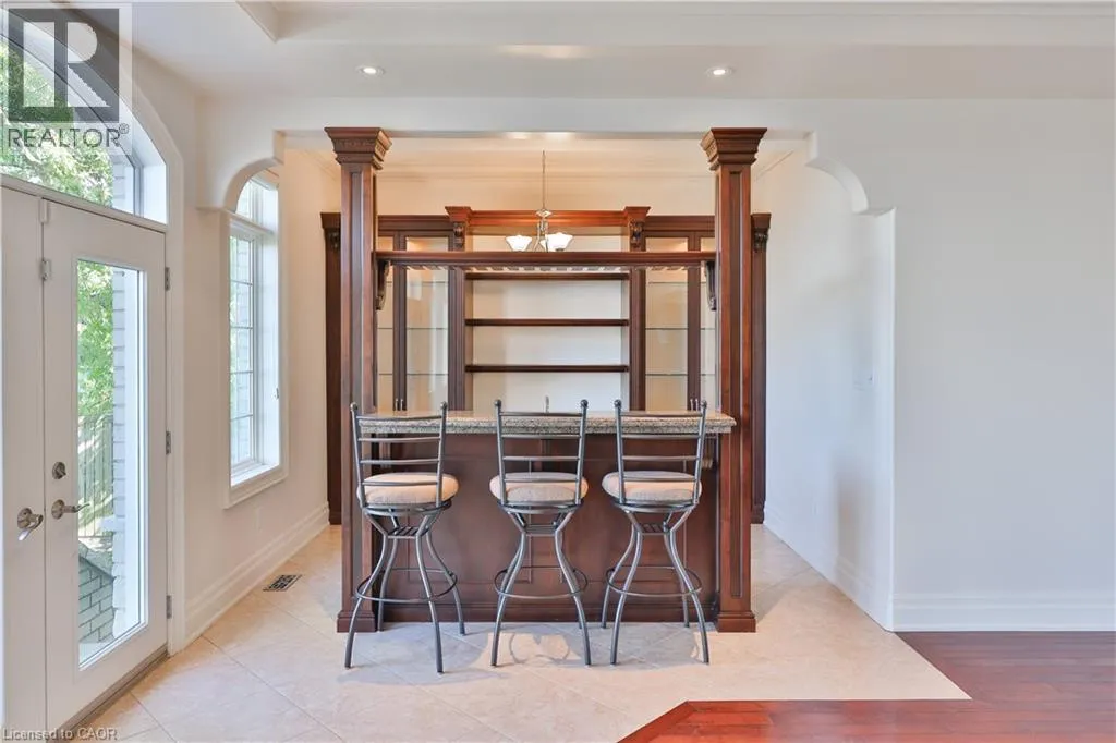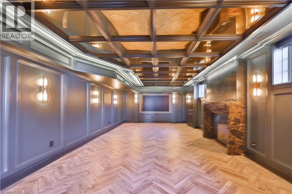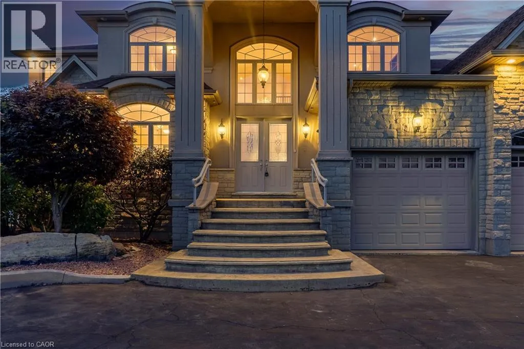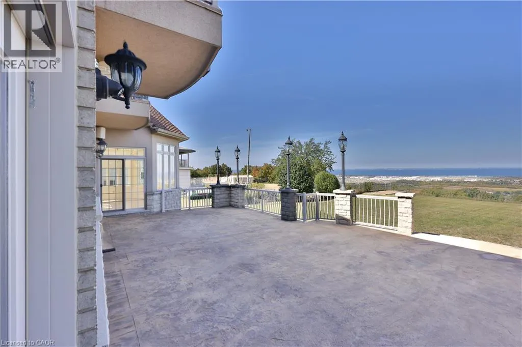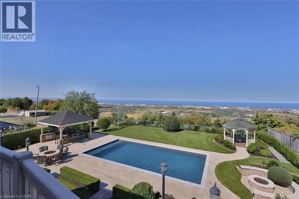 King St E and Ridge Road Welcome to 803 Ridge Road an extraordinary custom-built residence set on a pristine 0.81 acre lot with breathtaking vistas of Lake Ontario and the Toronto skyline. Spanning nearly 9,000 sq.ft. of finished living space, this home masterfully combines timeless craftsmanship with modern luxury.Step into the grand foyer with 19 ceilings and an elegant oak and wrought-iron staircase. The expansive living and great rooms feature multiple fireplaces, soaring ceilings, and walls of windows that flood the home with natural light. A double-sided fireplace connects the great room to the breakfast area and kitchen area. A custom gourmet kitchen is a chefs dream, appointed with Wolf and Viking appliances, built-in cabinetry, a spacious pantry, and a walk-out to the patio. A formal oversized dining room connected to the ventilated solarium ideal for a cigar lounge or private retreat and wet bar make this level perfect for entertaining. The primary suite is a true sanctuary with its own fireplace, private balcony overlooking the lake, a massive walk-in closet, and a spa-like 6-piece ensuite. Every bedroom offers its own ensuite, and two additional bedrooms enjoys a balcony with panoramic lake views. A cozy family room overlooking the front yard completes this level, providing a quiet retreat for evenings at home. The fully finished lower level was designed for both leisure and wellness. It includes two bedrooms plus full bathroom, a home theatre, a fitness room, and recreation room, a dumbwaiter for convenience and a wine cellar. Ample storage rooms make it as functional as it is luxurious. This is a rare offering a lakeview luxury estate with every amenity imaginable, minutes to Burlington, Oakville, and quick highway access. (id:27476)