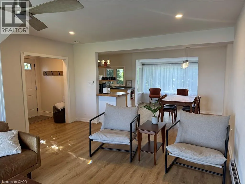 LEWIS RD. Super opportunity to live direct lakefront in this picture-perfect 3 bedroom, 2 bathroom home with coastal beach house vibes. This is a full home rental with only a small portion of the basement reserved for utilities, giving you the entire living space. The main floor offers a bright kitchen, open dining area, and living room with windows framing the sparkling water at your doorstep. Natural light fills the space and creates a welcoming atmosphere that makes every day feel like a getaway. Upstairs there are three well-sized bedrooms and a second bathroom, providing plenty of room for family living or flexible use such as a home office. Each room continues the airy, light-filled feel while maintaining a strong connection to the waterfront setting. Step outside and enjoy the lifestyle that comes with living directly on the lake. Mornings bring crisp, vibrant sunrises in shades of orange and pink, while evenings invite you to relax with calming views as the daylight fades across the water. The shoreline becomes your retreat, perfect for coffee on the patio or quiet moments with the sound of the waves. The location balances tranquility with convenience. You are only minutes from Costco, restaurants, shopping, and everyday amenities. Fifty Point Conservation Area is nearby for trails, beaches, and outdoor recreation. With quick QEW access, commuting is simple whether heading into Hamilton, Niagara, or the GTA. This rare offering allows you to experience everyday cottage living right here in the city, a perfect blend of comfort, convenience, and natural beauty. (id:27476)