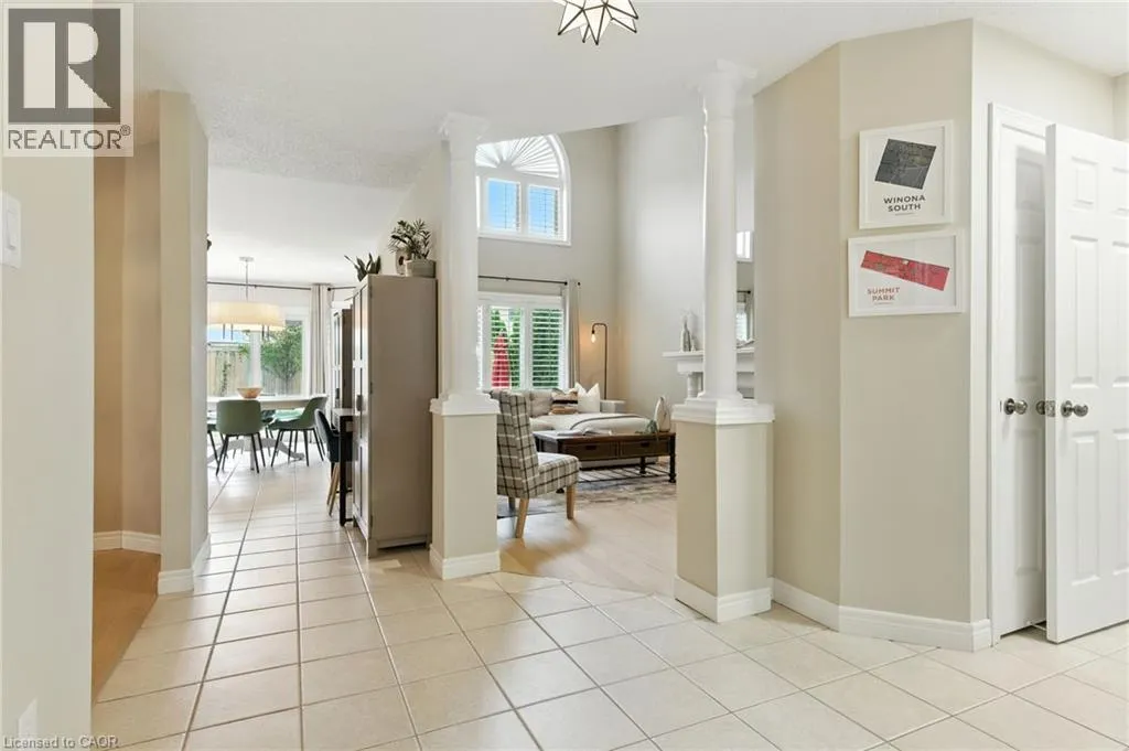 Winona Road - Sonoma Lane Elegant and timeless, welcome to 56 Sonoma Lane, an executive 3 bedroom, 2.5 bathroom home nestled on a 40 x 115-ft lot in a sought-after neighbourhood in Stoney Creek! Elevated curb appeal, landscaped garden beds, and mature greenery surround the exterior of this great home, complemented by an aggregate concrete driveway. You'll be impressed from the moment you step inside, with abundant natural light, tall ceilings, hardwood flooring, California shutters, and stylish tones throughout. Thoughtfully designed, the formal living room, which overlooks the front of the home, opens into the large dining room with a stunning chandelier, the perfect setting for hosting family gatherings. The eat-in kitchen offers ample cabinetry and counterspace, a peninsula, stainless steel appliances, and a lovely breakfast area with bow windows and a walk-out to the beautiful backyard. The sophisticated great room with soaring ceilings and a gas fireplace is the homeâs focal point. Completing the main floor is a powder room and a laundry room with inside access from the double garage. Upstairs, you will find the large primary bedroom, a retreat of its own, with a walk-in closet and a 4-piece ensuite bathroom. Two additional spacious bedrooms with ample closet space and a 4-piece bathroom complete the second floor. The basement offers abundant storage, a cold cellar, and endless opportunities to custom-design your dream recreation space. Step outside to your serene outdoor oasis, complete with a spacious patio, open green space, lush gardens, and beautiful greenery! This quiet, family-friendly location is close to schools, trails, and parks, including Winona Park, home of the annual Winona Peach Festival, the Lake Ontario waterfront, the marina and beach at Fifty Point, wineries, the Winona Crossing Plaza with all amenities, easy highway access, and more. Seize the moment and make this beautifully refined home and property yours! (id:27476)