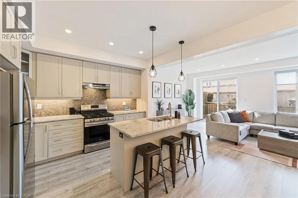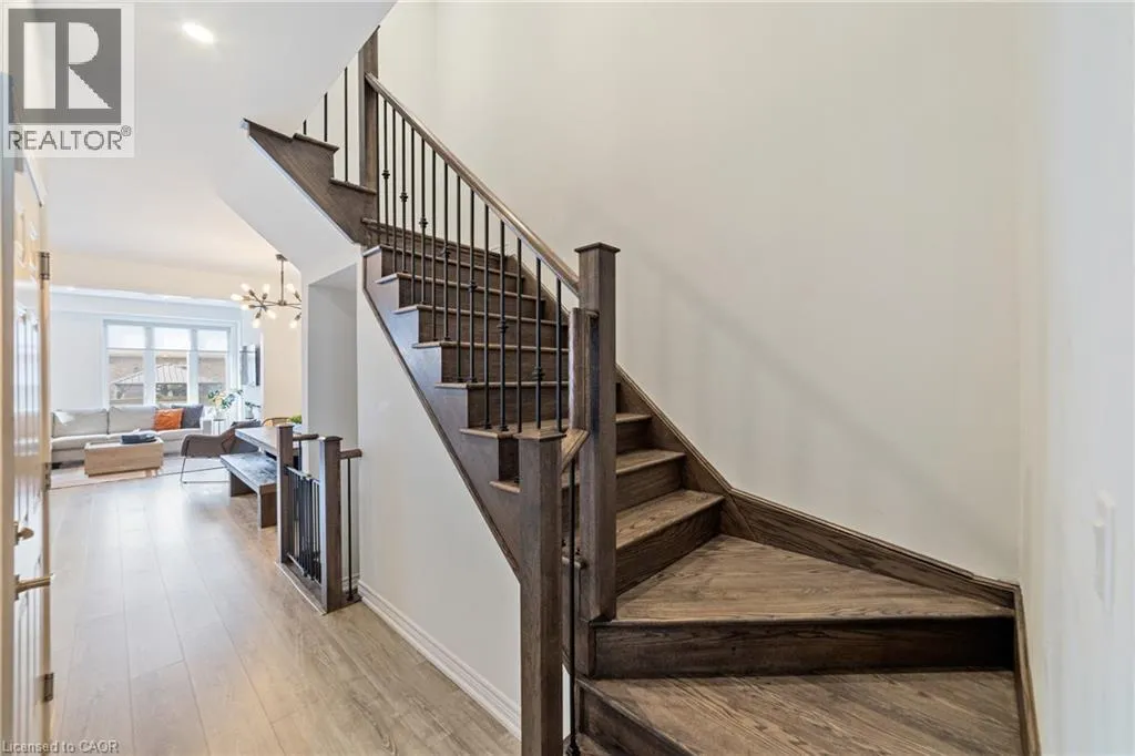 Rymal Road E. to Dakota This beautifully crafted two-storey townhome by Branthaven Homes boasts a striking brick and stone exterior that exudes curb appeal. Step inside to discover refined finishes and thoughtfully designed living spaces, featuring soaring 9-foot ceilings and stylish laminate and ceramic flooring throughout. The modern kitchen is equipped with granite countertops and stainless-steel appliances, perfect for both everyday living and entertaining. Upstairs, youâll find three generously sized bedrooms, including a primary suite with a walk-in closet and a private ensuite. A spacious laundry room and an additional full bathroom add to the home's convenience. Ideally located on Stoney Creek Mountain, this home sits across from the scenic 192-acre Eramosa Karst Conservation Area and is just minutes from the Red Hill Valley Parkway. It's also steps away from Bishop Ryan Catholic Secondary School. This exceptional home won't last long (id:27476)