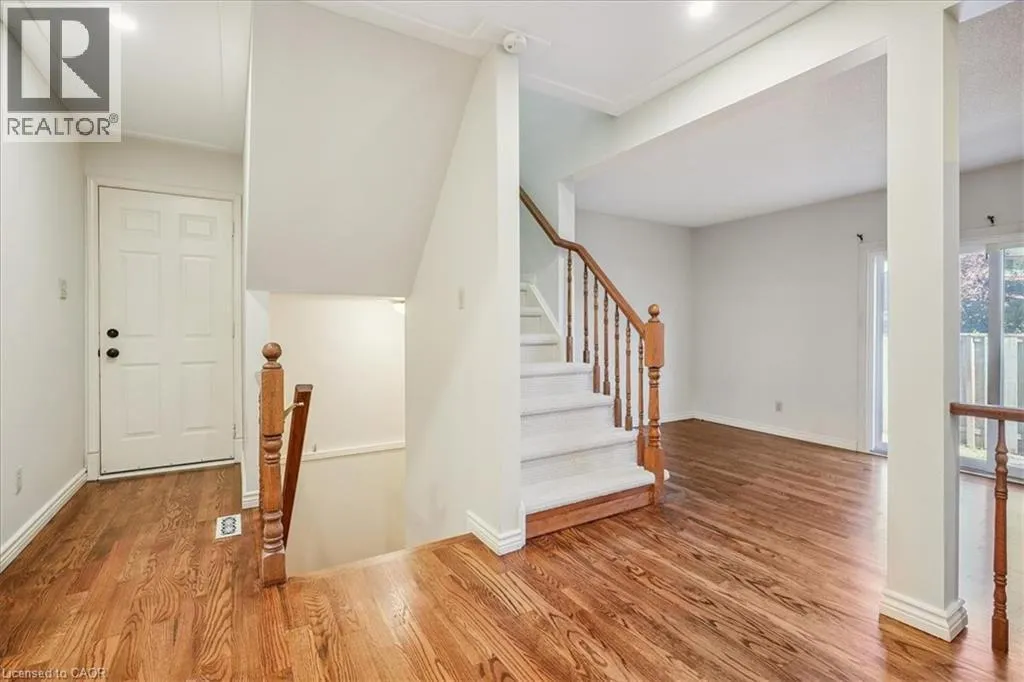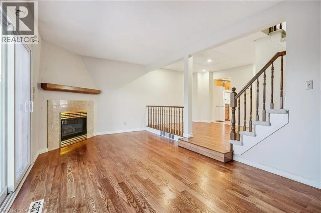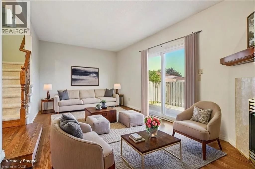 east on #8 Highway inbetween Spartan Ave & Dewitt Rd, behind apartment building ""The Renaissance"" Beautifully maintained link-style townhome in a sought-after community offering quick and convenient access to the QEW toward Niagara. Freshly painted throughout, this home features refinished hardwood floors in the living and dining rooms, a cozy gas fireplace, and brand-new carpet on the bedroom level. The finished lower level provides excellent flexibility for a teen retreat, home office, or recreation area, while the large laundry and storage room adds everyday practicality. Enjoy direct access from both the family room and garage to a spacious rear patioâperfect for entertaining or relaxing outdoors. Additional updates include a new furnace. Quick possession is available for those ready to move right in! (id:27476)