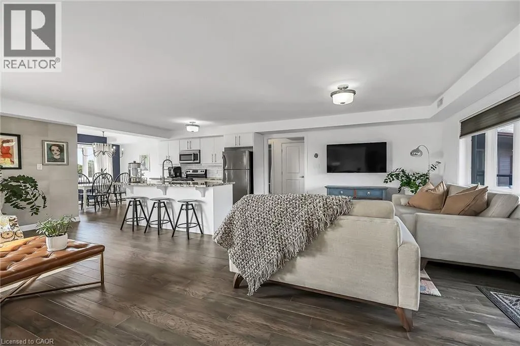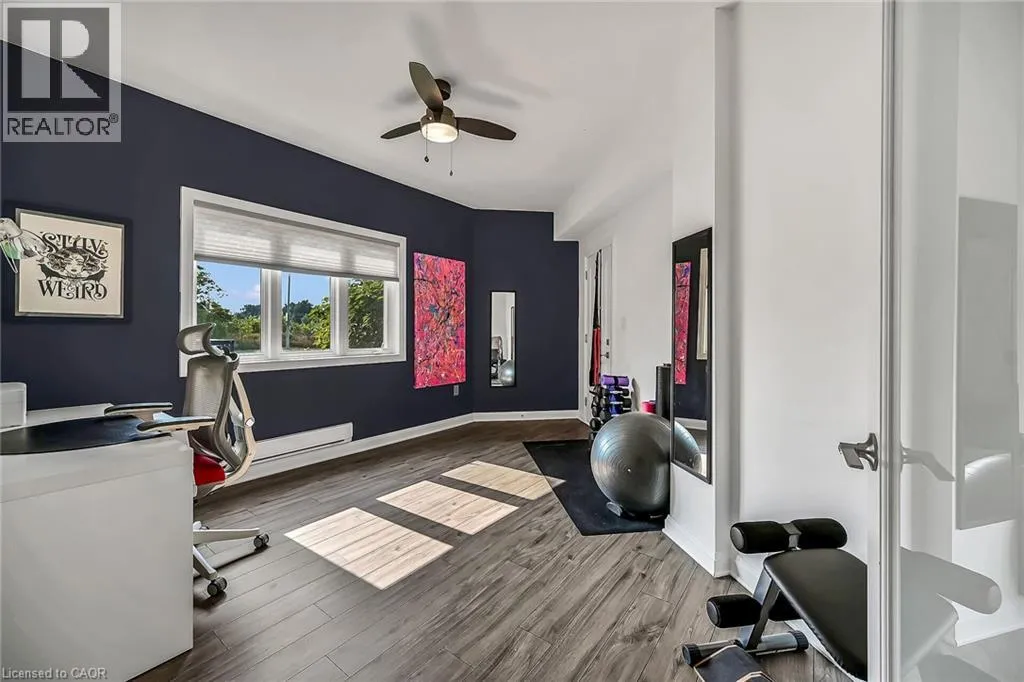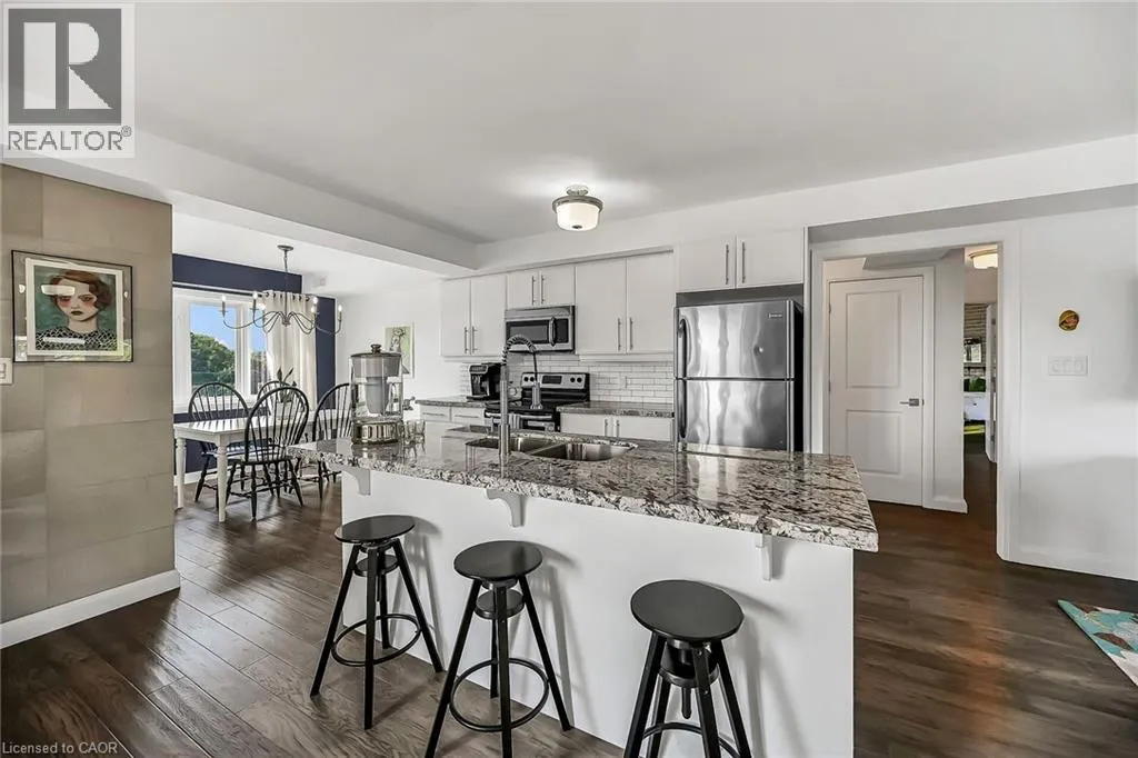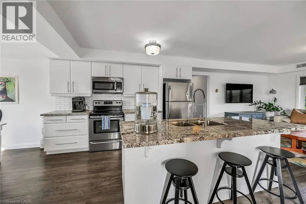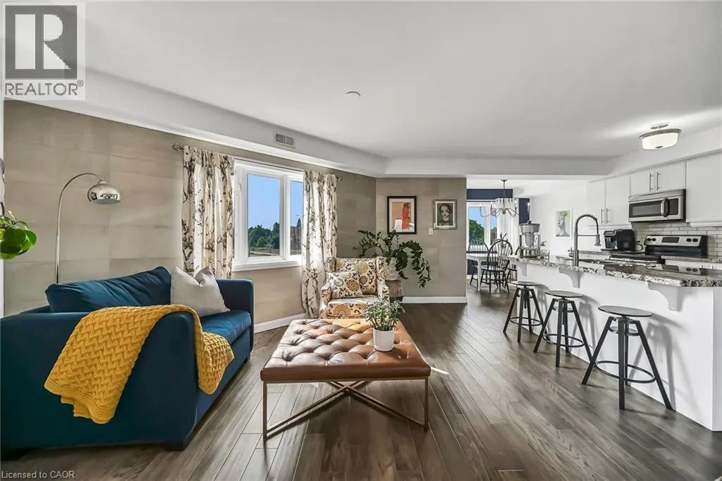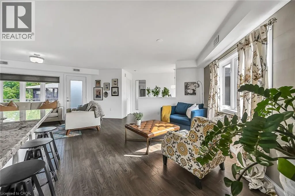 Mud St W to Echovalley Bright, Spacious & Stylish Condo-Townhome in the Heart of Valley Park. Discover over 1,800 sq. ft. of beautifully maintained, low-maintenance living in one of Stoney Creek Mountainâs most desirable communities. This contemporary two-level condo-townhome offers modern finishes, functional design, and unbeatable convenienceâperfect for families, professionals, and nature lovers alike. Enjoy a 1.5-car garage with direct entry into a versatile bonus roomâideal as a home office, gym, or hobby spaceâfeaturing a large window for plenty of natural light. Upstairs, the open-concept layout showcases engineered hardwood flooring, large sun-filled windows, and fresh paint throughout. The stylish kitchen features a new tiled backsplash, while the dining area is enhanced by a modern chandelier for an elegant touch. A brick accent wall in the primary bedroom adds warmth and character. Walk-out access from both the living room and primary suite leads to a spacious glass balcony, perfect for your morning coffee or evening unwind. Ample storage includes a full pantry, linen closet, under-stair storage, and generous bedroom closets. Just 3 km to Red Hill Valley Pkwy & Lincoln Alexander Pkwy. 5-min walk to Valley Park Rec Centre (library, rink, pool, pickleball). 10-min walk to Heritage Green Sports Park (dog park, splash pad, fields). 1 km to Felkerâs Falls and nearby escarpment trails (Albion Falls, Devilâs Punchbowl). Steps to pharmacies, grocery stores, and everyday amenities Experience the perfect balance of comfort, convenience, and outdoor lifestyleâyour next chapter starts here on Stoney Creek Mountain. (id:27476)