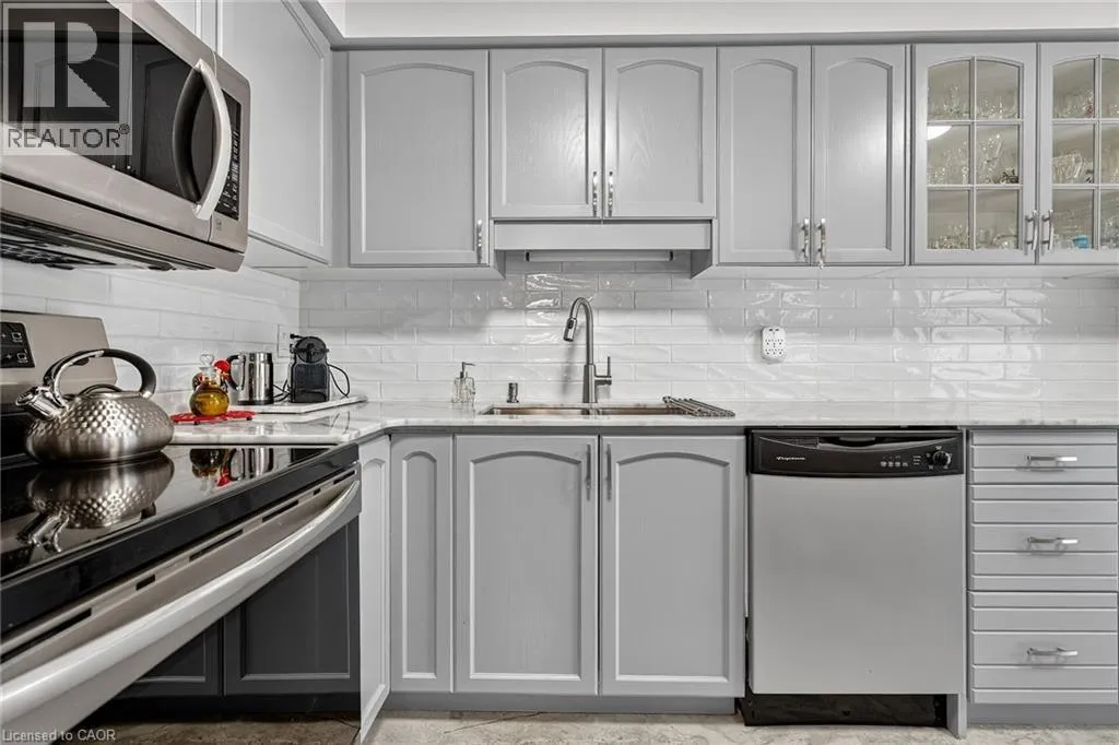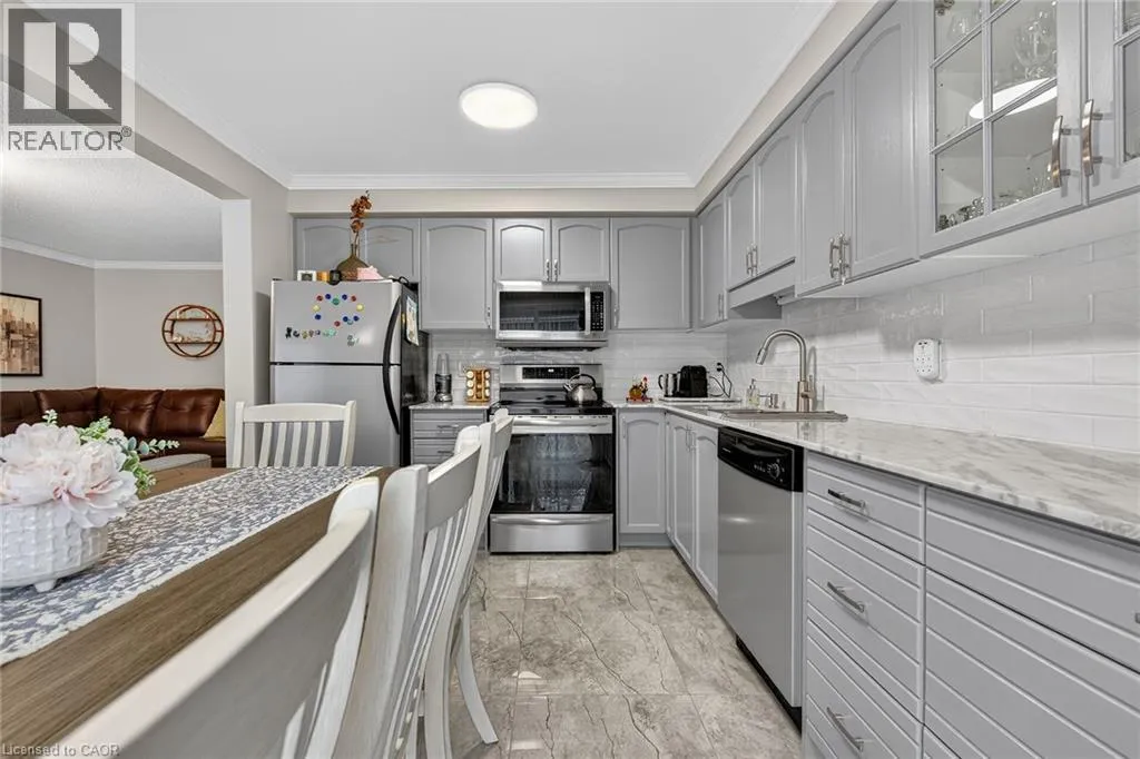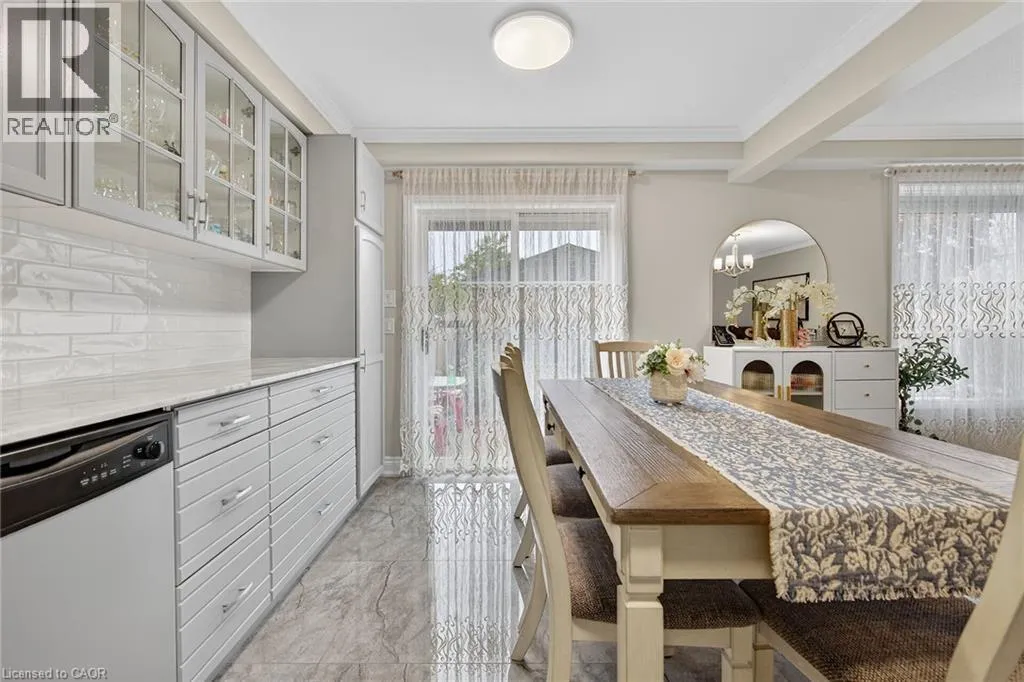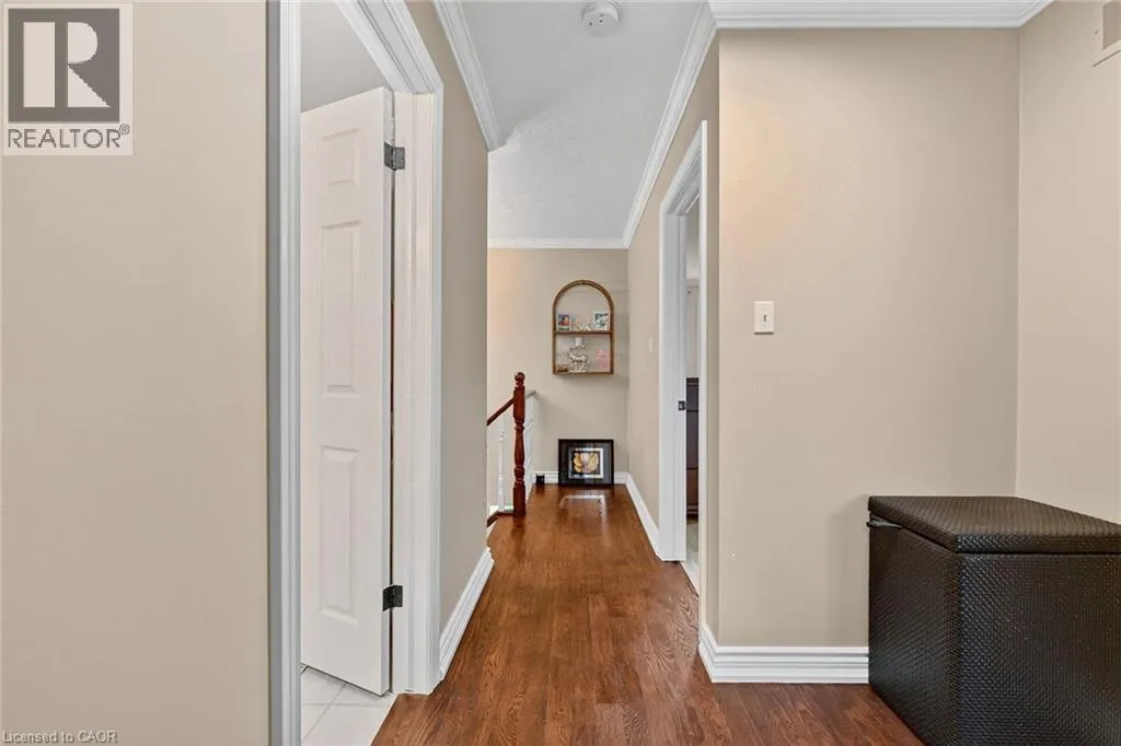 Off Barton St between Grays Rd and Green Rd. IMMACULATE AND IMPRESSIVE AT EVERY STEP! Welcome to 25 Vulcan Crt, a highly desired Freehold Townhome in Central Stoney Creek! Beautiful brick exterior, concrete driveway and front porch create a sharp curb appeal. Be amazed as you enter this pristine home with stylish and modern finishes throughout. Gleaming porcelain tiles take you to the open concept main floor layout. Bright kitchen w/stainless steel appliances and marble countertops, dining room with sliding doors to the backyard deck. Living room offers a cozy gas fireplace and space for your large furniture. Professionally painted with precision and crown moulding throughout, as every finish in each corner is sharp and tidy. Hardwood staircase and floors on the 2nd level with California shutters in the 3 bedrooms and 2 full bathrooms. Master offers a large ensuite with a soaker tub and 2 counters and oversized window facing the sunrise. Fully finished basement with a big 4th bedroom and walk-in closet with hardwood floors and pot lights. 3rd full bathroom and laundry suite also in the lower level. Feel at peace in the relaxing backyard with a painted deck and many green gardens to enjoy. Don't miss out on this terrific townhome! CHECK OUT VIRTUAL LINK for the full photo gallery! Room sizes approximate. (id:27476)