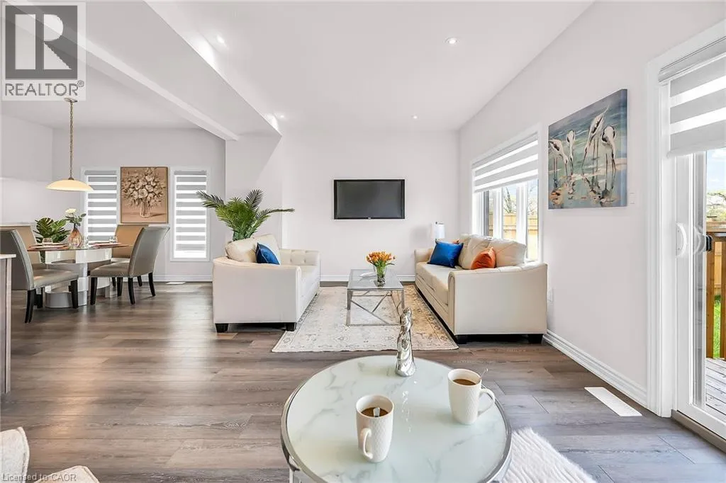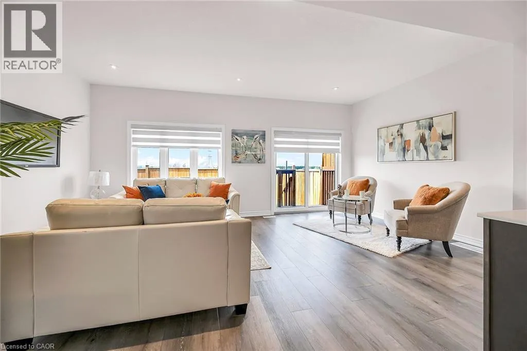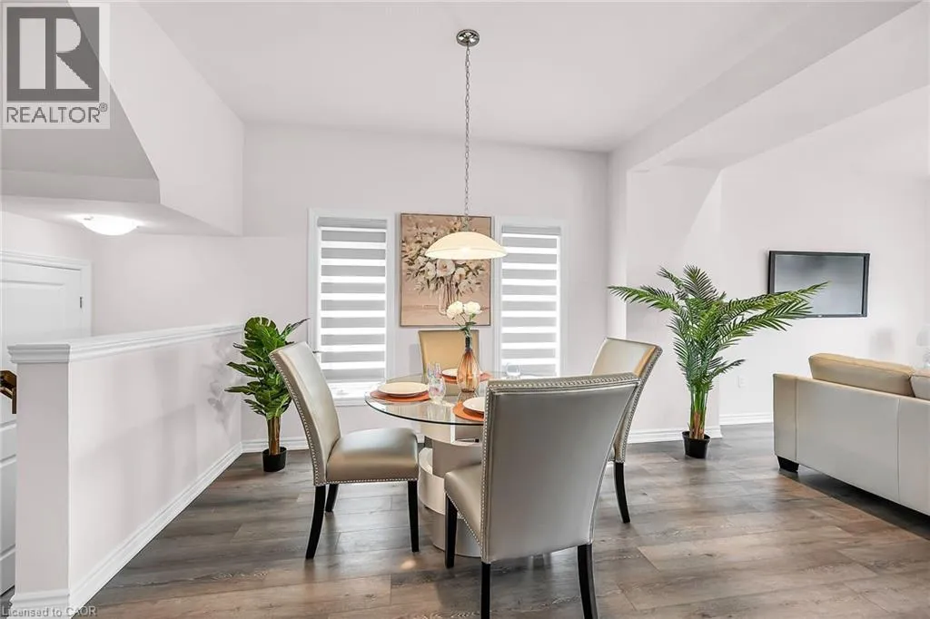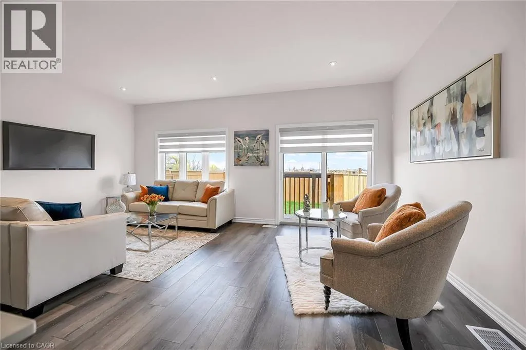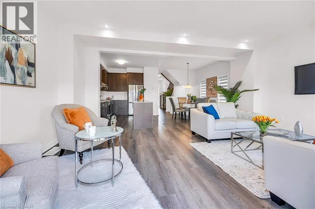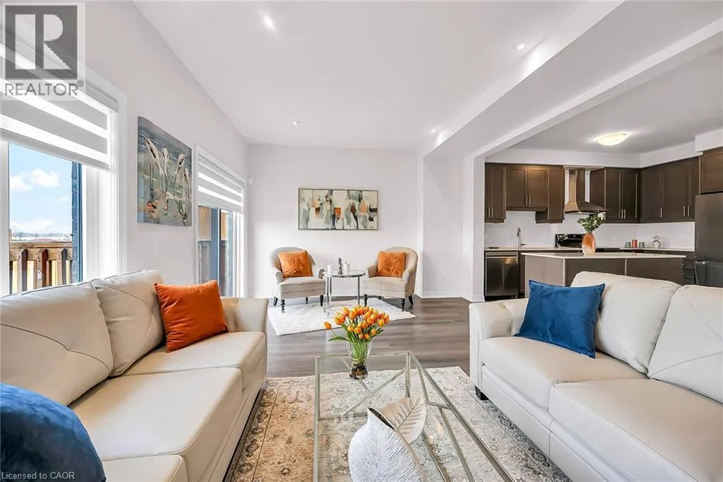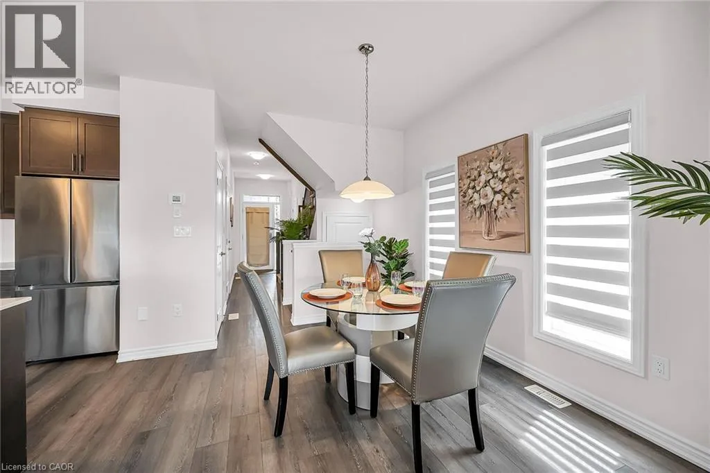 Rymal Rd E/RED HILL VALLEY PARKW/SOHO ST Or Red Hill Valley/Times Square Blvd/Greenwich Ave/Soho St Welcome to 61 Soho Streetâa stunning, 1602 sq ft freehold end-unit townhome built by Losani Homes in 2023, nestled in the sought-after Central Park community. This beautifully designed home offers an open-concept main floor featuring a spacious living and dining area, perfect for both everyday living and entertaining. The modern kitchen boasts stainless steel appliances, quartz countertops, and sleek, durable flooring that adds style and easy maintenance.The bright and airy great room offers large windows and a patio door to enjoy serene sunset views. Upstairs, youâll find 3 generously sized bedrooms, 2.5 bathrooms, and the convenience of second-floor laundry. This location is a commuterâs dream with quick access to highways and public transit. Youâll also enjoy close proximity to shopping centers, schools, parks, a movie theatre, and a recreation centre. Move-in ready and filled with modern touchesâthis home has everything youâre looking for! (id:27476)