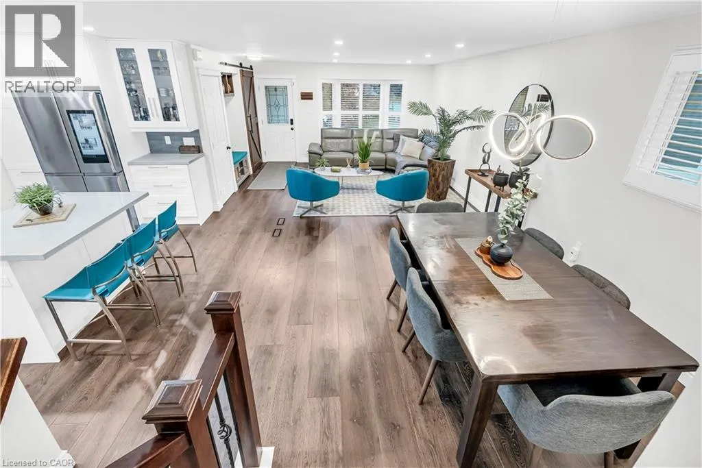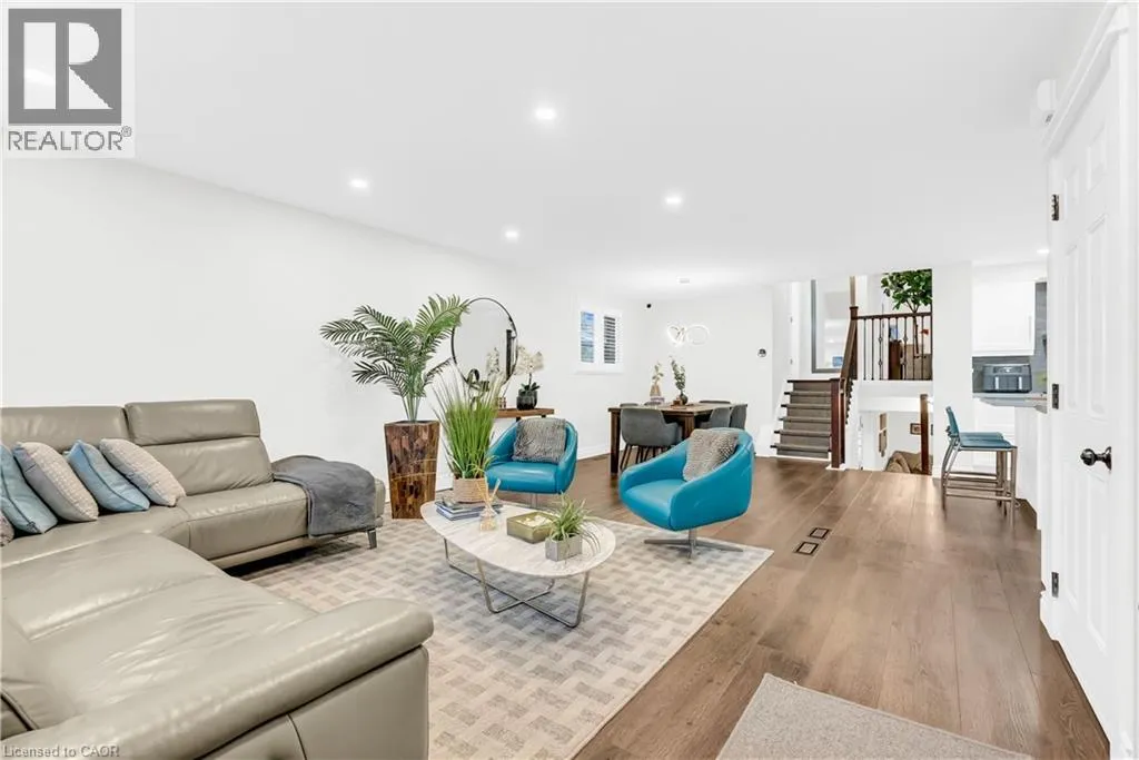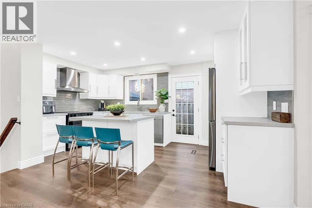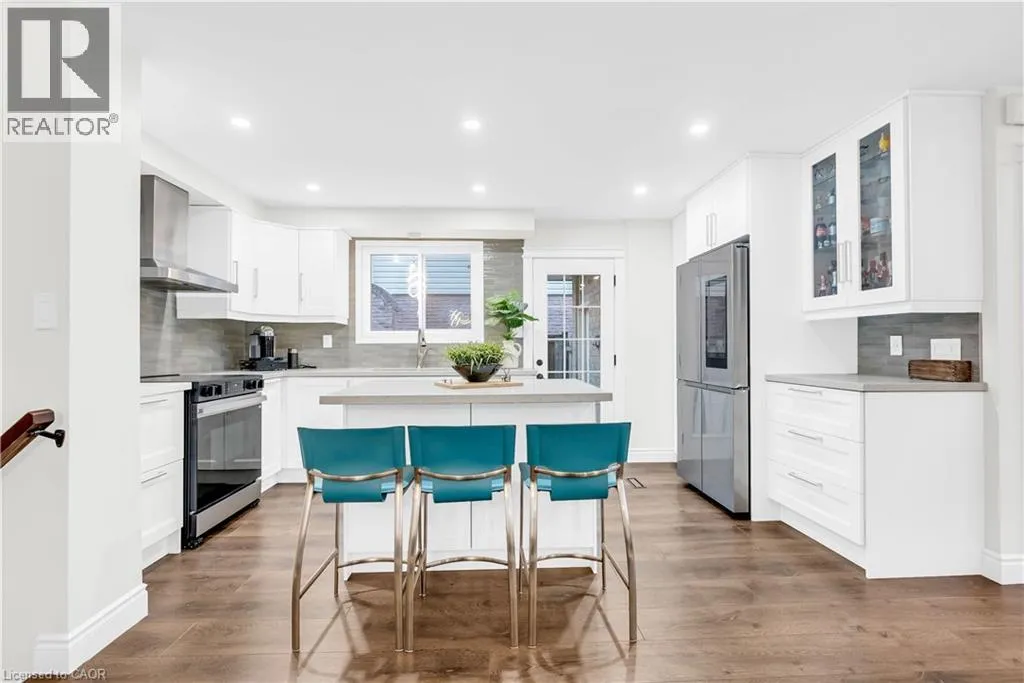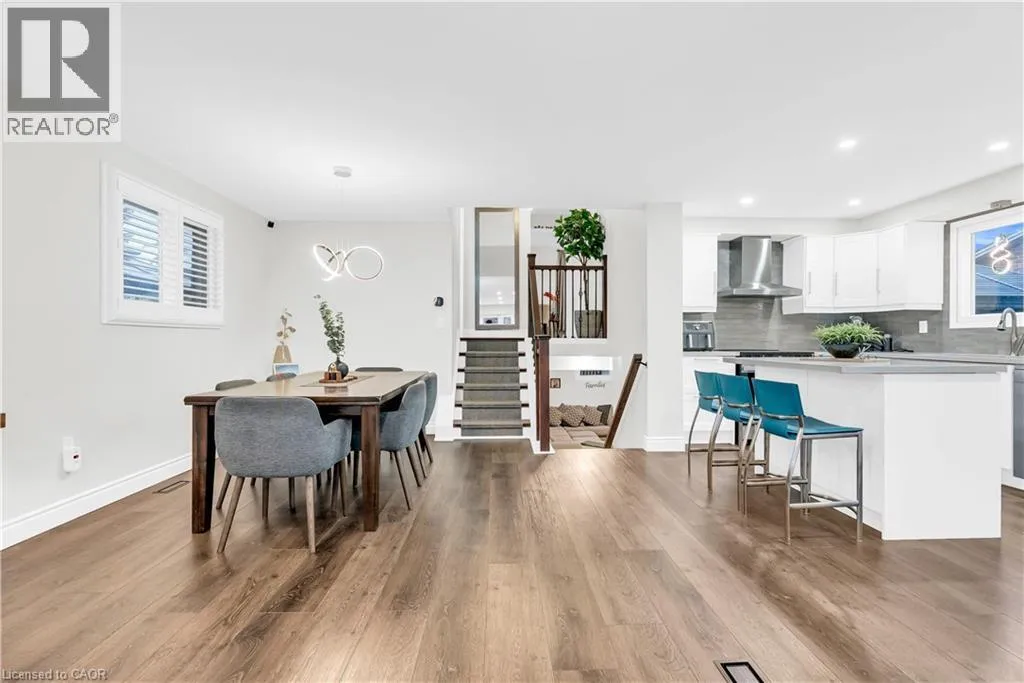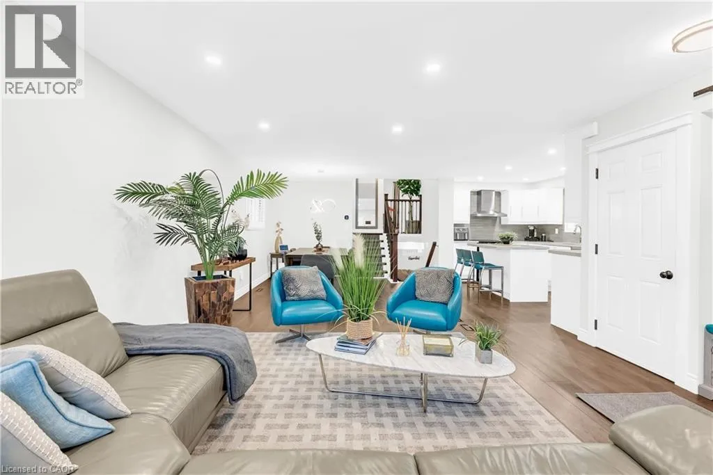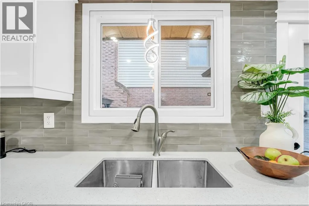 Isaac Brock Dr to Kennard St to Sutton Crt This beautifully renovated back split bungalow offers the perfect combination of comfort, technology, and style for a growing family. Featuring 3+1 bedrooms and 2 full bathrooms, the home is designed with an open layout and modern finishes throughout. From the moment you step inside, youâll feel the openness with new hardwood floors, a bright open-concept design, and a brand new white kitchen with plenty of cabinetry, quartz countertops, stainless steel appliances, and pot lighting. Freshly painted in soft neutral tones, the home flows effortlessly from the kitchen to the dining area and into the formal living room, creating an inviting space for family gatherings and entertaining. The oversized garage includes a new furnace, EV charger setup, and ample room for hobby enthusiasts. A few steps up, the bedroom level features new flooring and a fully renovated modern bathroom with a standing shower, double vanity, and smart toilet. The first lower level offers a large family or recreation room, ideal for relaxing, working from home, or a game area, along with a guest bedroom and a second full bath, perfect for in-laws or visitors. The bonus lower level provides even more flexibility, with space for a gym, hobby, or meditation room, plus a smart laundry area with high-efficiency appliances and integrated security cameras. The entire home is smart controlled, allowing you to manage lighting, appliances, temperature, and entry systems remotely from your smartphone for ultimate comfort and convenience. Outside, enjoy a private backyard retreat featuring an on-ground pool, double sitting areas, outdoor cooking station, and a dedicated entertaining space with an extra storage shed. Conveniently located with easy access to the Red Hill and the Lincoln Alexander Parkway, this superb East Mountain location is close to all amenities, parks, movie theatres, and more. (id:27476)