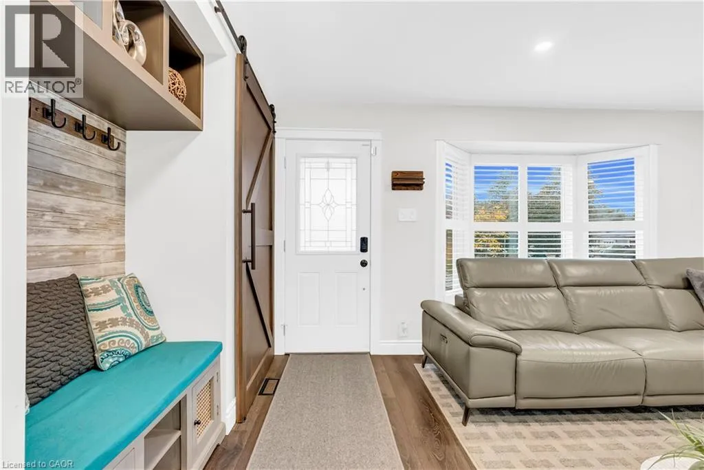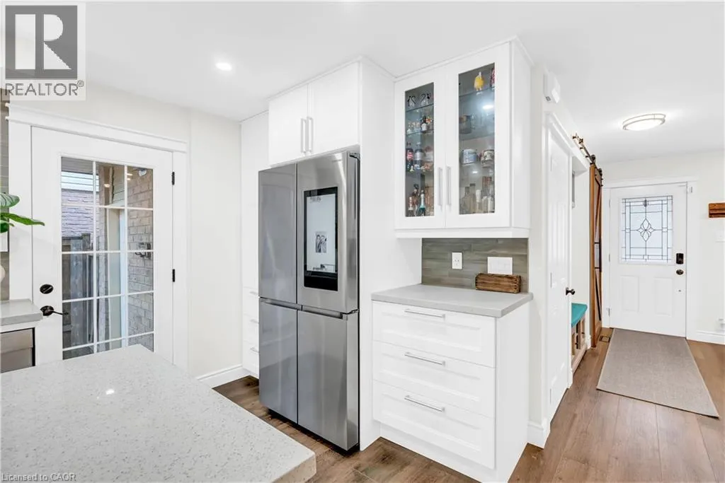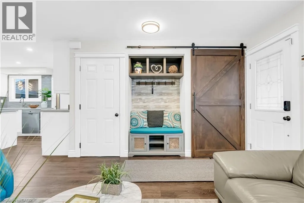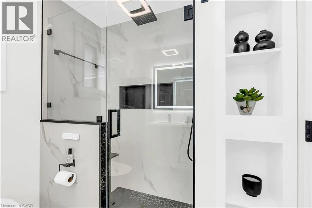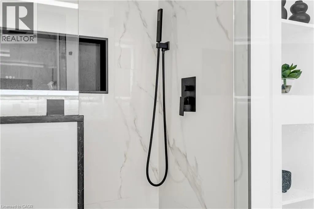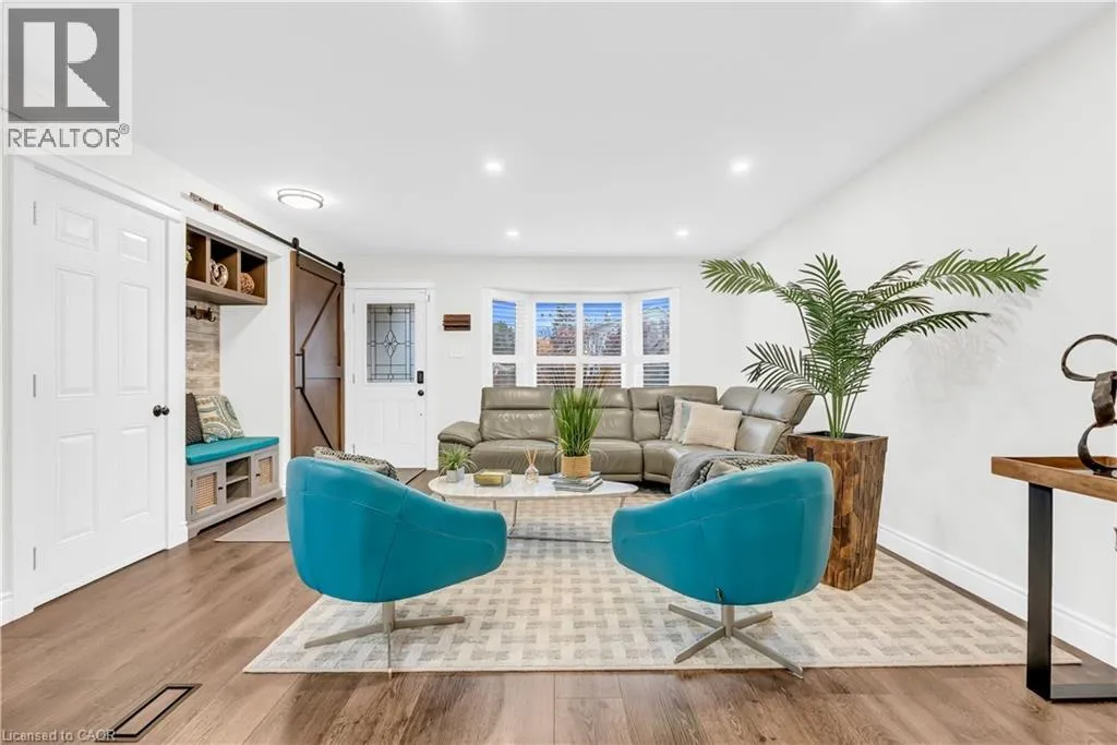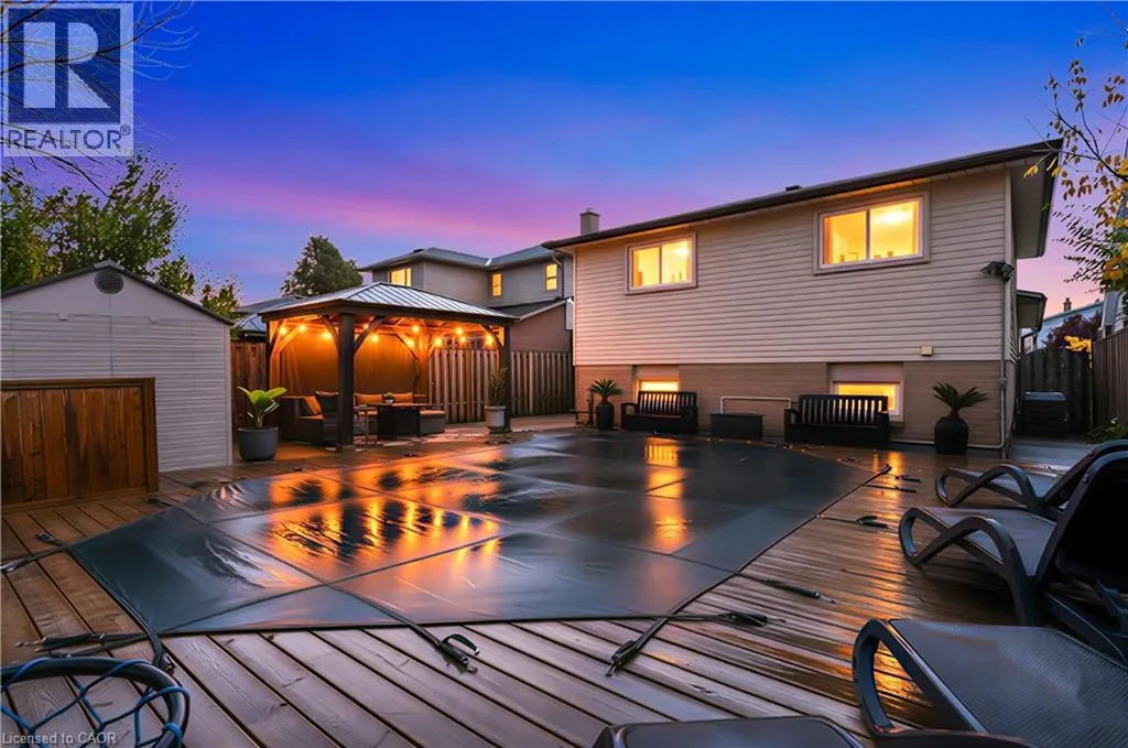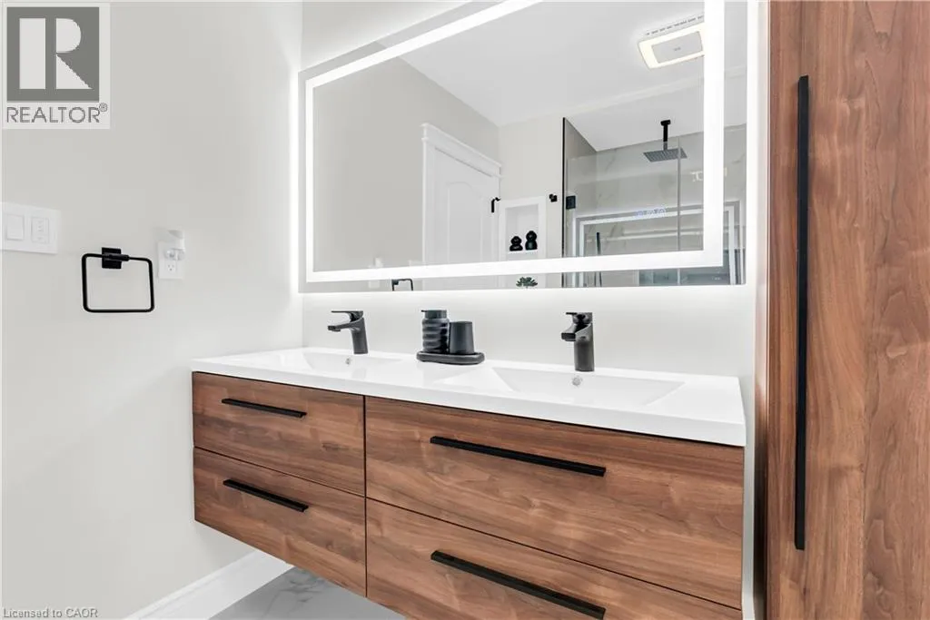 Isaac Brock Dr to Kennard St to Sutton Crt This beautifully renovated back split bungalow offers the perfect combination of comfort, technology, and style for a growing family. Featuring 3+1 bedrooms and 2 full bathrooms, the home is designed with an open layout and modern finishes throughout. From the moment you step inside, youâll feel the openness with new hardwood floors, a bright open-concept design, and a brand new white kitchen with plenty of cabinetry, quartz countertops, stainless steel appliances, and pot lighting. Freshly painted in soft neutral tones, the home flows effortlessly from the kitchen to the dining area and into the formal living room, creating an inviting space for family gatherings and entertaining. The oversized garage includes a new furnace, EV charger setup, and ample room for hobby enthusiasts. A few steps up, the bedroom level features new flooring and a fully renovated modern bathroom with a standing shower, double vanity, and smart toilet. The first lower level offers a large family or recreation room, ideal for relaxing, working from home, or a game area, along with a guest bedroom and a second full bath, perfect for in-laws or visitors. The bonus lower level provides even more flexibility, with space for a gym, hobby, or meditation room, plus a smart laundry area with high-efficiency appliances and integrated security cameras. The entire home is smart controlled, allowing you to manage lighting, appliances, temperature, and entry systems remotely from your smartphone for ultimate comfort and convenience. Outside, enjoy a private backyard retreat featuring an on-ground pool, double sitting areas, outdoor cooking station, and a dedicated entertaining space with an extra storage shed. Conveniently located with easy access to the Red Hill and the Lincoln Alexander Parkway, this superb East Mountain location is close to all amenities, parks, movie theatres, and more. (id:27476)