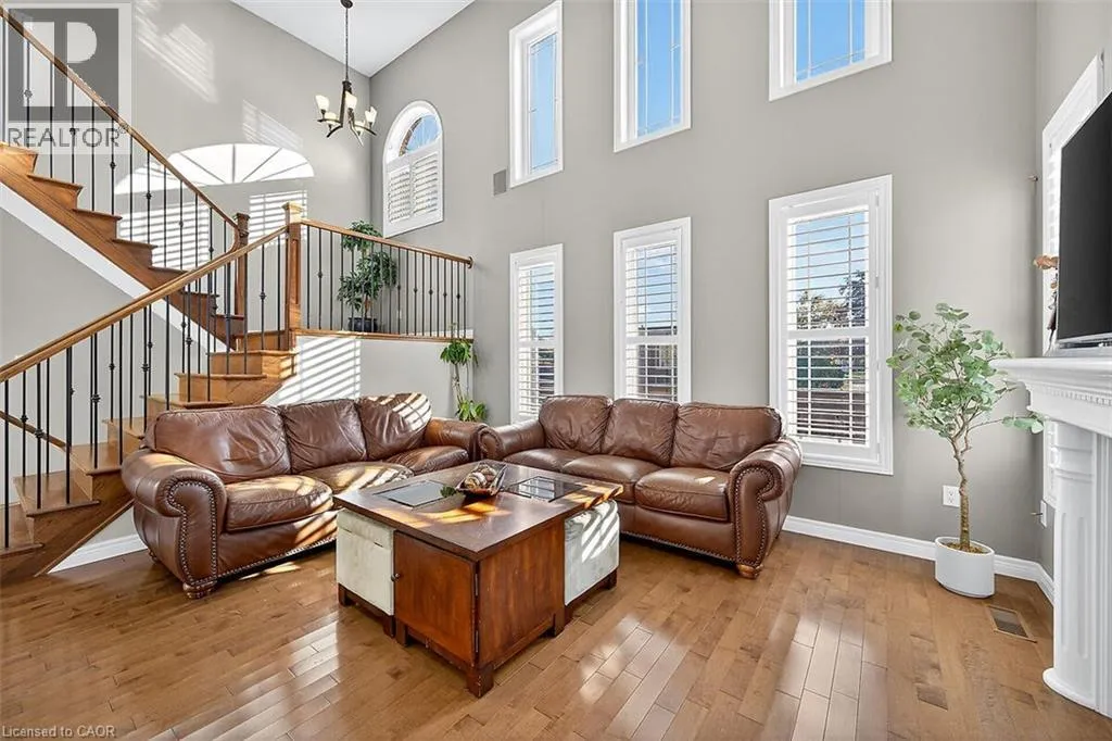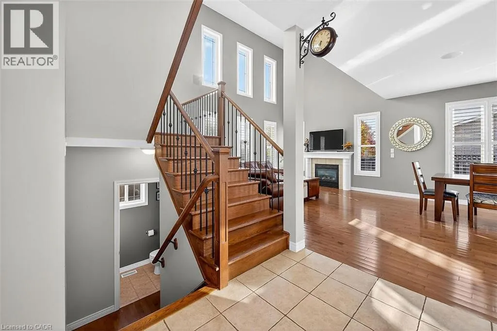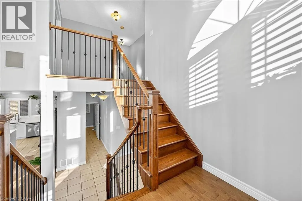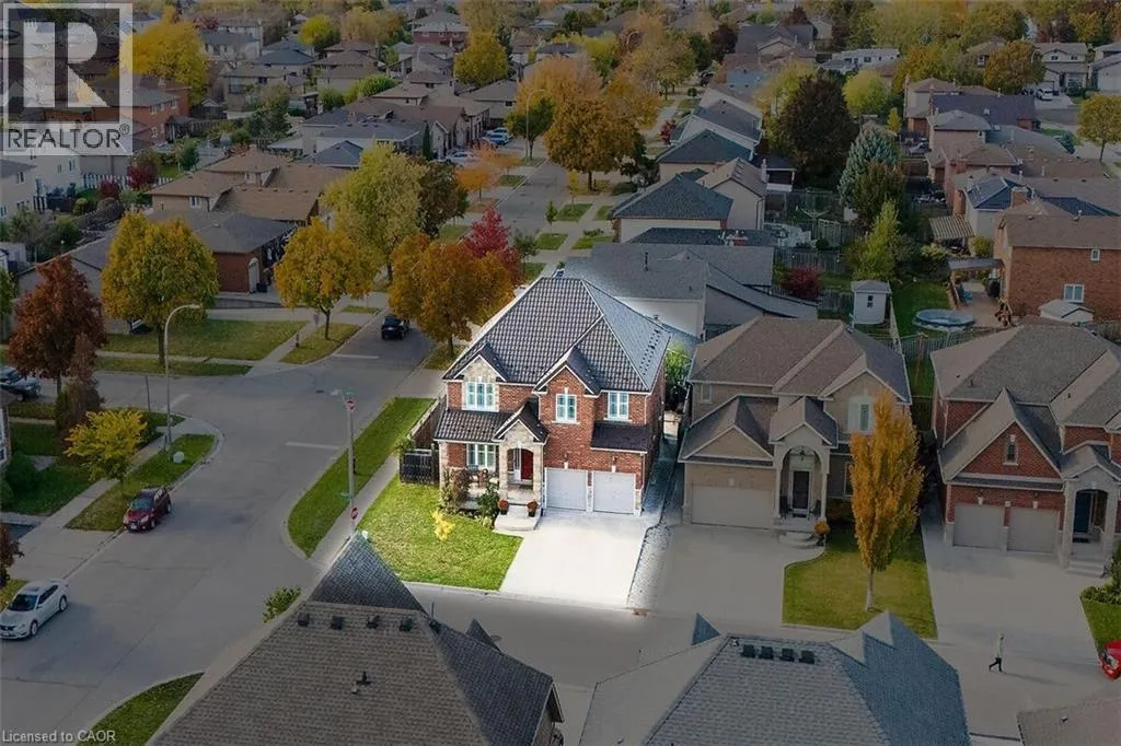 Green Rd to Hemlock Corner of Sasha Crt Welcome to Sasha Court one of Lower Stoney Creek favourite neighbourhoods! This bright, all brick, 2 Storey, 4 Bedroom home, over 2800 sq ft, designed for both everyday family life and entertaining. From the moment you step inside, the soaring 9ft ceilings and open-concept layout create an inviting flow, while the hardwood stairs and elegant rod iron spindles add timeless character. The main floor provides generous principle rooms, hardwood floors, analog speaker system in 4 zones, sliding doors that walk out to a private yard, 21x17 concrete patio, gas barbecue line, making it perfect for summer gatherings. Upstairs, you'll find spacious bedrooms/hardwood floors, open den, including a primary ensuite bath and an impressive walk-in-closet. The unspoiled basement comes with (8'6 ceilings), larger windows, 21x7 cantina, 2nd laundry and bathroom rough in, ready for its finishing touch. With a steel roof(2018-transferable warranty) in place, 2 car garage with inside plus side entry and 4 car parking, this home combines size, comfort and location. Conveniently close to schools, Ferris Park, all amenities, and lower Stoney Creek's most desirable feature of being minutes to the Qew and major routes! View of Escarpment from front porch and backyard! Don't miss the chance to create your vision here! (id:27476)
