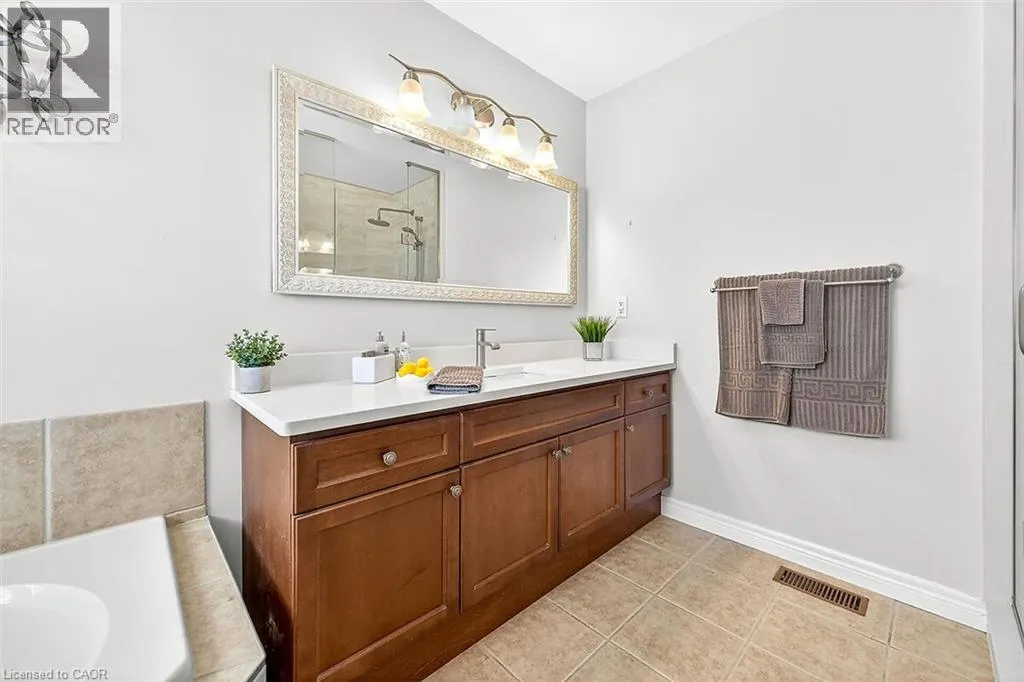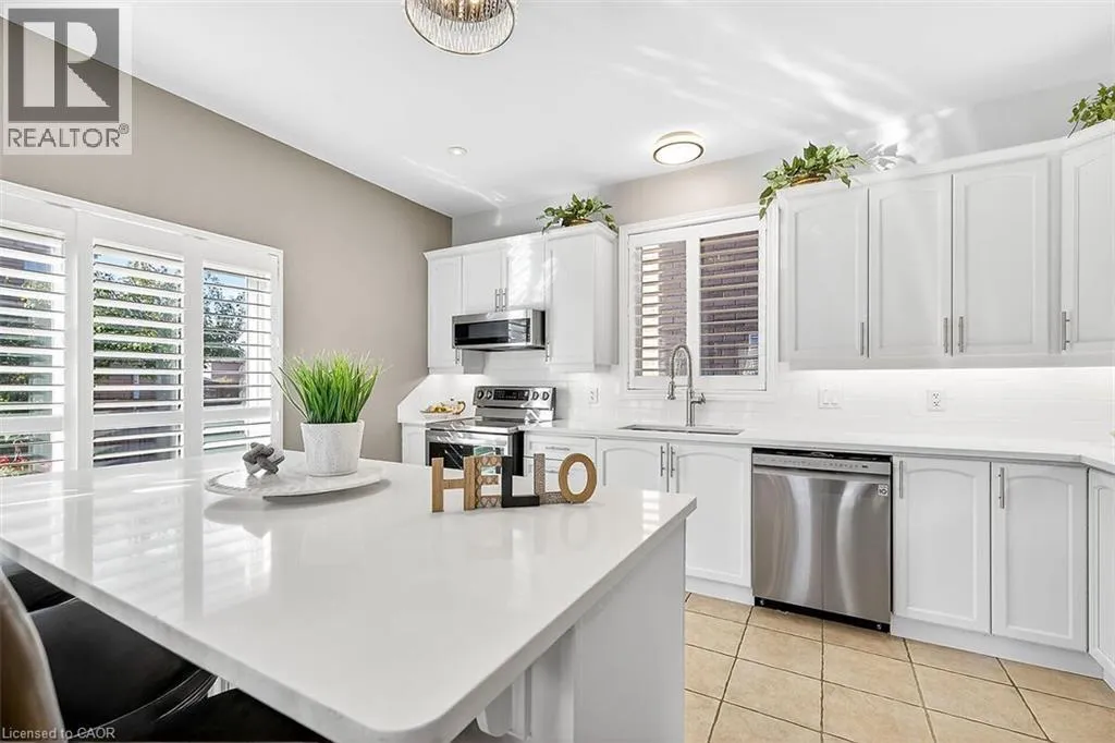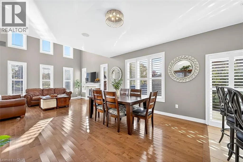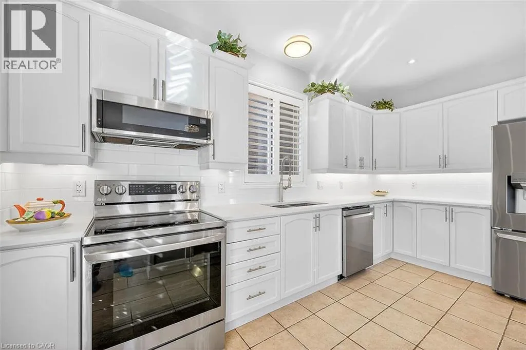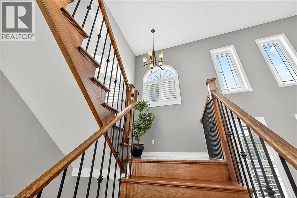 Green Rd to Hemlock Corner of Sasha Crt Welcome to Sasha Court one of Lower Stoney Creek favourite neighbourhoods! This bright, all brick, 2 Storey, 4 Bedroom home, over 2800 sq ft, designed for both everyday family life and entertaining. From the moment you step inside, the soaring 9ft ceilings and open-concept layout create an inviting flow, while the hardwood stairs and elegant rod iron spindles add timeless character. The main floor provides generous principle rooms, hardwood floors, analog speaker system in 4 zones, sliding doors that walk out to a private yard, 21x17 concrete patio, gas barbecue line, making it perfect for summer gatherings. Upstairs, you'll find spacious bedrooms/hardwood floors, open den, including a primary ensuite bath and an impressive walk-in-closet. The unspoiled basement comes with (8'6 ceilings), larger windows, 21x7 cantina, 2nd laundry and bathroom rough in, ready for its finishing touch. With a steel roof(2018-transferable warranty) in place, 2 car garage with inside plus side entry and 4 car parking, this home combines size, comfort and location. Conveniently close to schools, Ferris Park, all amenities, and lower Stoney Creek's most desirable feature of being minutes to the Qew and major routes! View of Escarpment from front porch and backyard! Don't miss the chance to create your vision here! (id:27476)