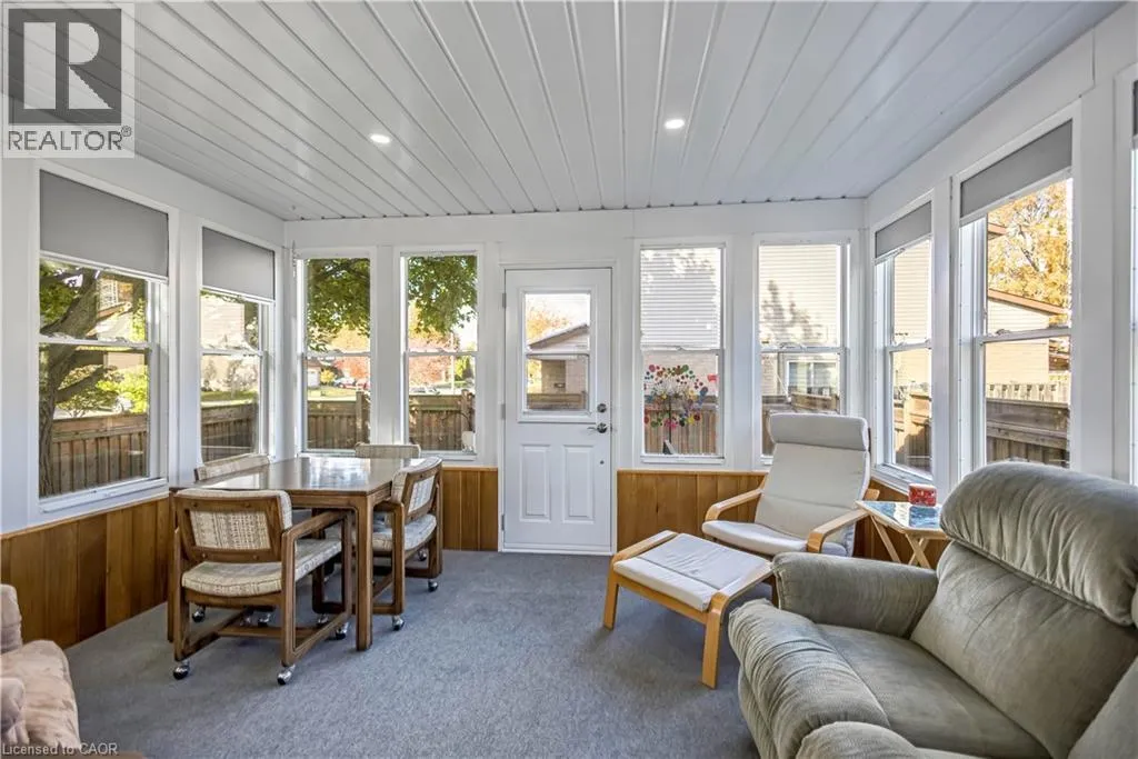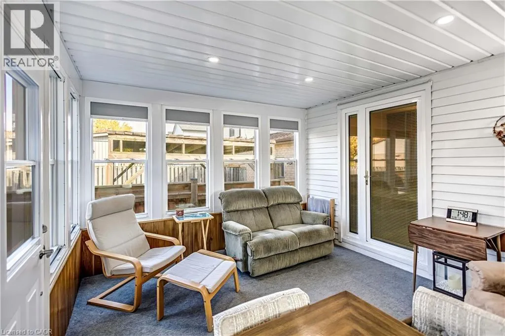 Gordon Drummond to Dalton Gate to Muscot Drive Welcome to 58 Muscot Drive in very desirable Stoney Creek neighbourhood! This beautifully maintained bungalow offers 3 spacious bedrooms, 2 full bathrooms, and a bright, open-concept main floor perfect for modern living. The updated kitchen features stylish finishes and flows seamlessly into the living and dining areas. Downstairs, enjoy a fully finished basement with an additional full bathroom, cozy living space, and a gas fireplace â perfect for family nights or entertaining guests. Step into the stunning three-season room â fully insulated, with pot lights, window screens, and blinds â the ideal spot to relax spring through fall. The private, fully fenced backyard is a serene retreat complete with a sprinkler system in the front, back, and side yard. Proudly owned and cared for by the same owners for over 40 years. Pride of ownership is evident throughout this warm and welcoming home. Close to Parks, schools, groceries, restaurants, shopping, and much more! Whether you're starting your homeownership journey or looking to downsize into something more manageable, this home offers comfort, convenience, and long-term value in a sought-after location. Please note: the property is linked to the neighbor via an underground 2x4. Don't miss out! Act fast! (id:27476)