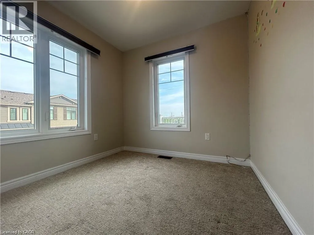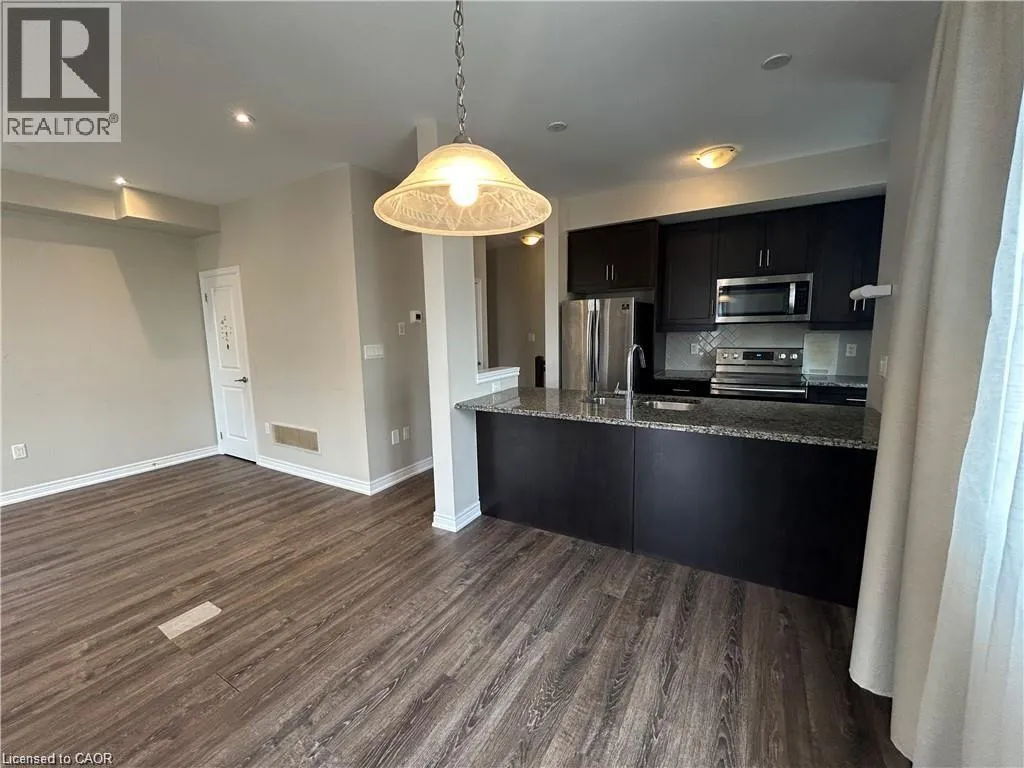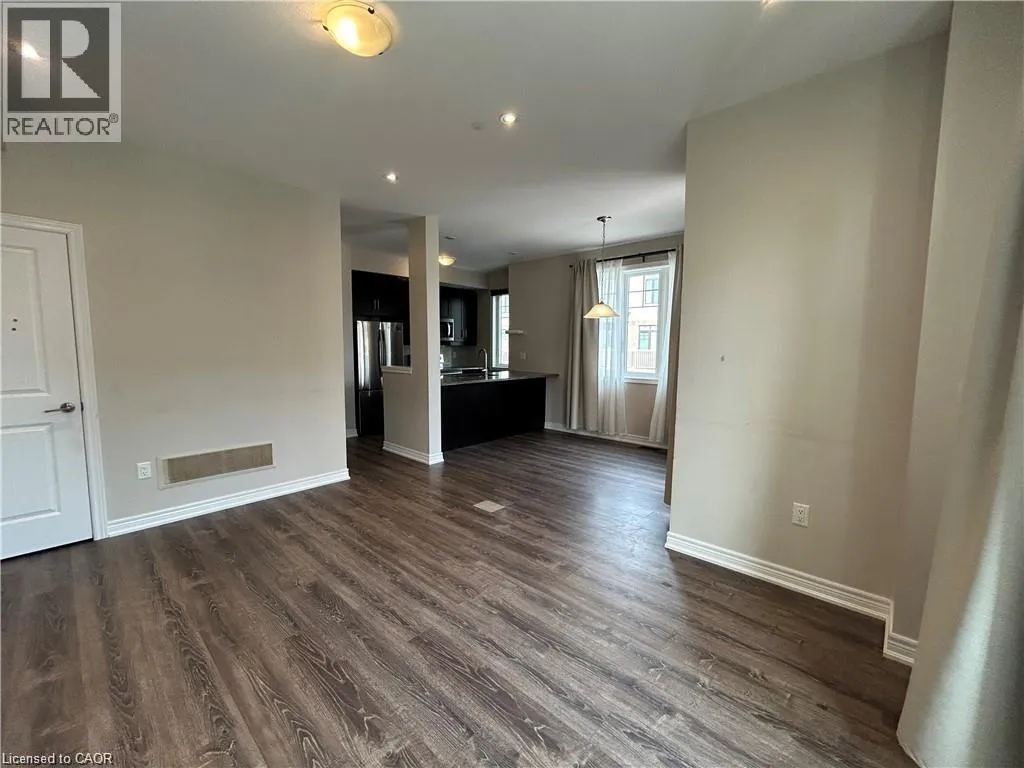 South of QEW -East of Fruitland- West of Fifty Road This modern Branthaven end-unit townhome is available for immediate possession, two parking spaces, and a quiet interior location within the complex. Featuring an open-concept layout with tall ceilings, wide plank flooring, quartz countertops, stainless steel appliances, and two private balconies, it combines style and function. The home includes three bedrooms, a full bath upstairs, a main floor powder room, in-suite laundry, and a versatile flex space at the garage entryâideal for a home office. Located minutes from the QEW, Fifty Road shopping, the beach, and Fifty Point Conservation Area, itâs perfect for commuters and outdoor enthusiasts alike. Tenant responsible for utilities. No pets. Non-smoking home (id:27476)