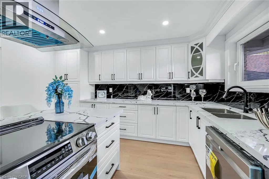 HWY 20 to Second Rd E Beautiful raised ranch bungalow with over 2,525 sq ft of living space set on a sprawling 2.1-acre lot just minutes from the city! Fully renovated top-to-bottom with neutral décor and modern finishes. The open-concept main floor showcases a sleek white kitchen with a center island cook top and quartz counters. Beautiful living room with gas fireplace and separate dining area. The fully finished basement boasts a secondary kitchen, two bedrooms, 3pc bathroom, laundry, and a spacious rec room, perfect for multi-generational living, a rental unit, or a fantastic entertainment area! The walk-up mudroom provides direct access to the massive backyard, complete with existing storage buildings for added convenience. With parking for 20+ vehicles on the private driveway and a spacious 3+ car garage, thereâs abundant room for cars, trucks, RVs, trailers, and all your outdoor toys. This impressive 735-foot deep lot offers ample space and potential for customization. Whether you envision extensive gardens, recreational spaces, or serene landscaping, this expansive lot is a canvas ready for your vision. (id:27476)