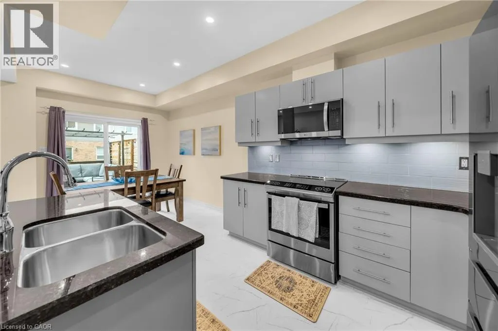 From North Service Road, turn north onto Dartmouth Gate Modern, carpet-free townhouse in the desirable Stoney Creek Lakeshore community. This bright 3-bedroom home features an open-concept main floor with updated flooring throughout the upstairs and most of the main floor, granite countertops, and a functional kitchen layout perfect for everyday living. Spacious bedrooms, large windows, and generous closet space throughout. Enjoy a private outdoor area ideal for relaxing or entertaining. Steps from parks, schools, restaurants, and all major amenities. Quick access to the QEW for easy commuting and minutes to the lake, Confederation Park, and the GO transit connection toward Niagara and Toronto. Well-managed complex in a mature, quiet pocketâgreat for families, professionals, and investors. (id:27476)