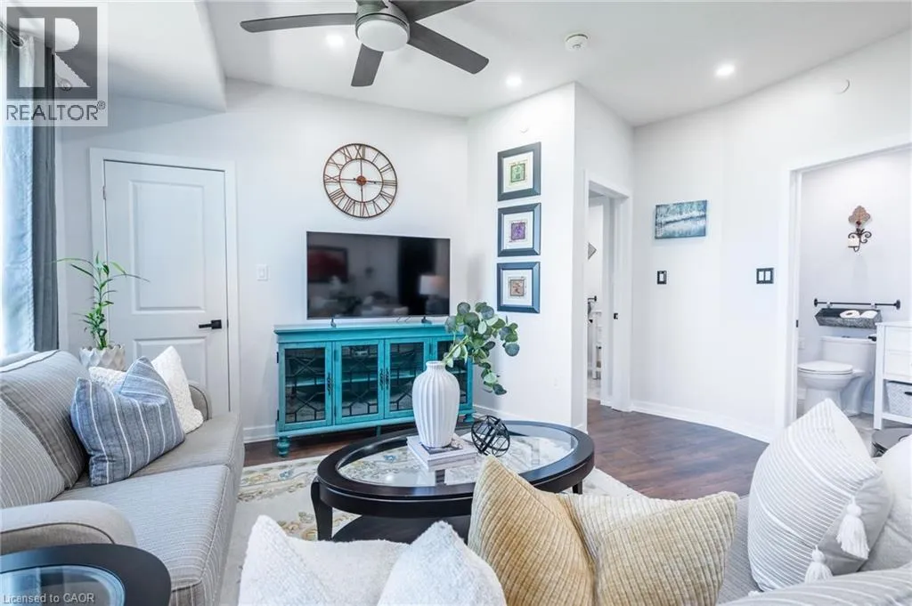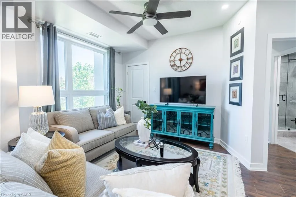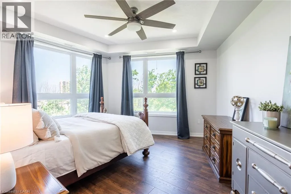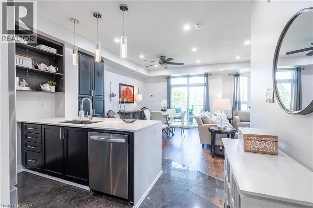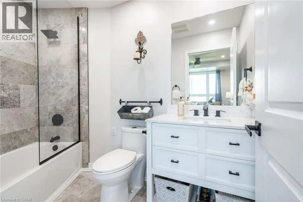 North Service Road - Millen Road - Shoreview Place Step into a serene waterfront lifestyle with this spacious one-bedroom condo featuring a private office and two full bathrooms â the perfect combination of home and workspace at 422-125 Shoreview Place! Perfectly situated just steps from Lake Ontario, this exceptional unit showcases stunning updates, tall ceilings, and plenty of natural light. The kitchen boasts a sleek design with dark cabinetry, full-size stainless steel appliances, and luxurious stone countertops with a waterfall edge. The open-concept layout offers a seamless flow from the dining area with a walkout balcony and access to the welcoming living room. The bright primary bedroom is a retreat of its own, featuring a walk-in closet, a spa-like 3-piece ensuite, and partial lake views. The versatile den serves beautifully as a private office or creative retreat. A gorgeous 4-piece bathroom and in-suite laundry complete this lovely home. Enjoy the buildingâs amenities, including a rooftop terrace with panoramic lake views, a fitness centre, party room, and ample visitor parking. With easy access to the QEW, downtown Burlington and Hamilton, and tranquil walking trails along the lake, this location is truly unbeatable. Immerse yourself in the fabulous lifestyle this home offers â schedule your viewing today! (id:27476)
