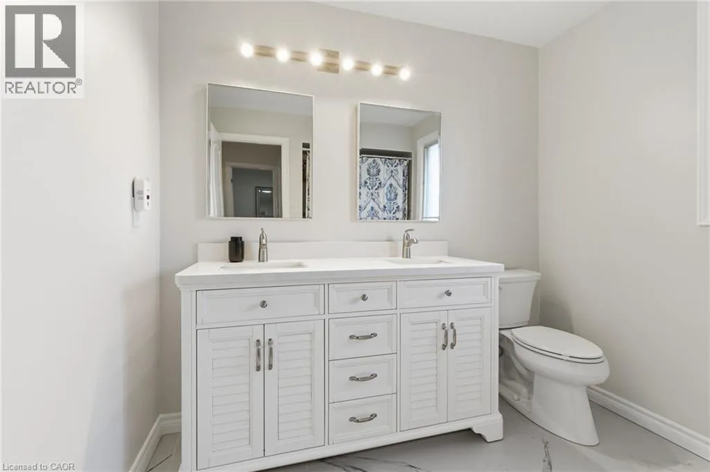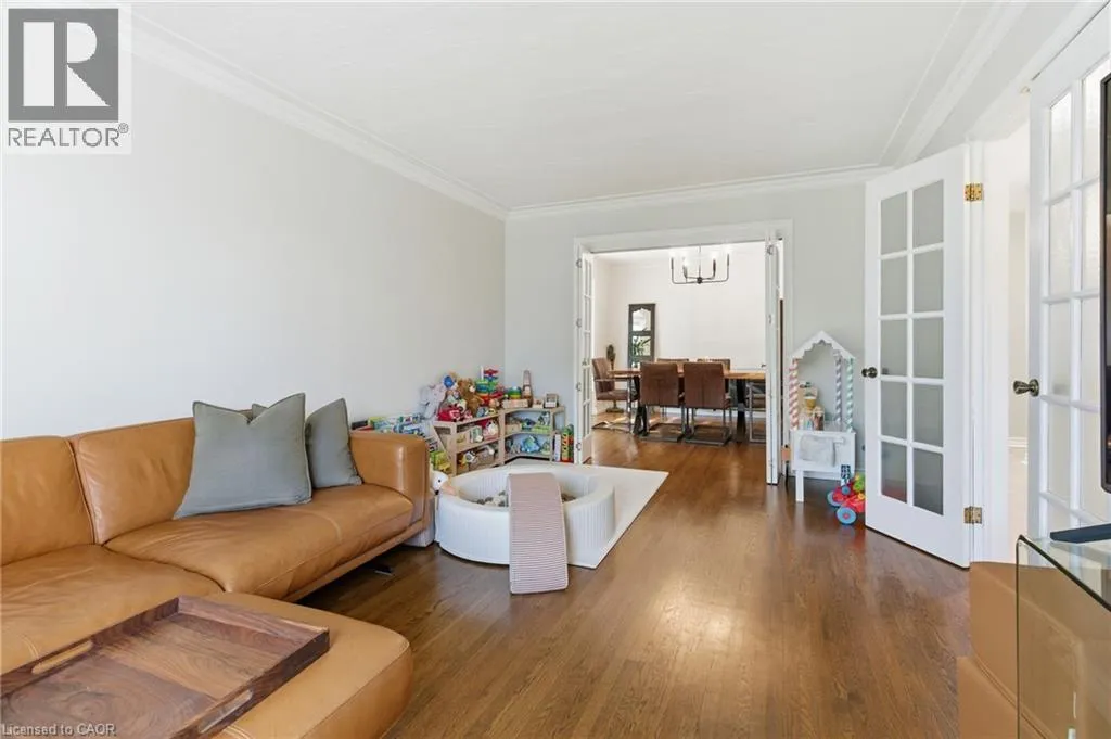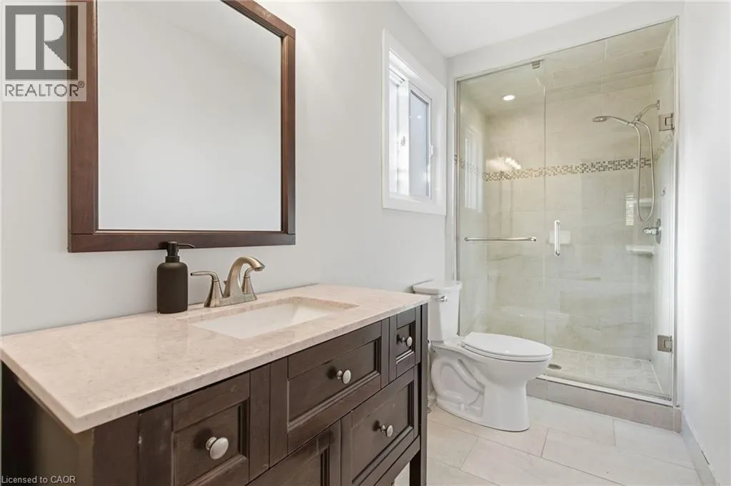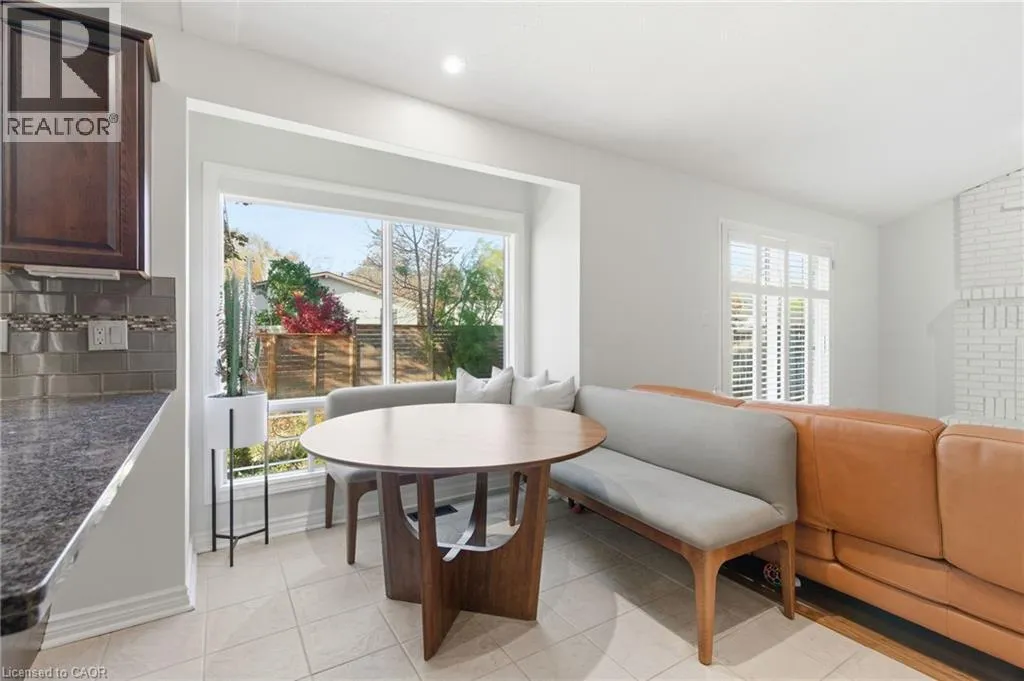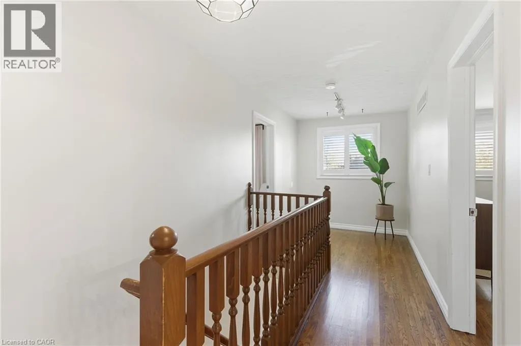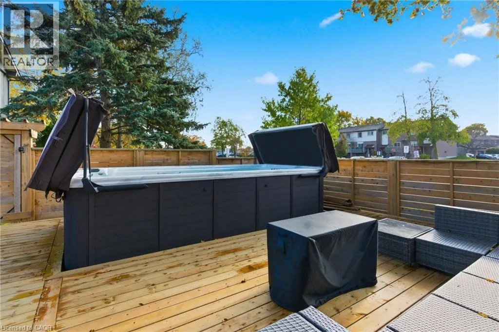 From Mud St. W. go north on Paramount Dr. right on Auckland. Great family home steps to schools/parks, Felker's Falls, close to shopping, rec centre, library, arena and great Hwy access. Numerous updates Inc. Windows, bathrooms (24') etc. Open concept kitchen/family room with granite counter tops, refurbished wood burning fireplace leading to stunning fenced backyard private gardens & concrete patio. Separate formal dining room & main floor Laundry. HW thru-out. 3 good size bedrooms with updated Master bedroom ensuite. Swim Spa and all accessories. Stunning new 5pce. Roof (14'), Furnace (21'), some windows (24'). R/I C/V, laundry in basement. (id:27476)