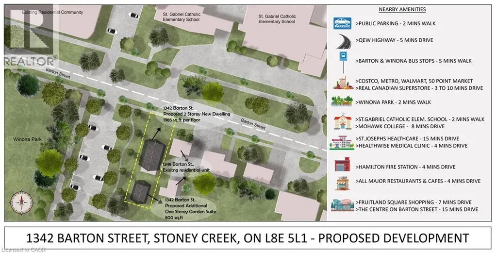 Winona Rd & Barton St Rare opportunity to build your dream home in the heart of Winona. This deep, level 46â x 161â lot backs directly onto Winona Park and is zoned Urban Residential (R2), allowing for a custom home up to 3,968 sq ft plus an 800 sq ft garden suite. The sale includes over $33,000 in municipal deposits (grading, sidewalk, and service connections)âalready paid and included in the purchase price. Also included: legal survey, topographic drawing. Surrounded by high-end homes and walking distance to Winona Crossing Shopping Centre, Costco, Fifty Point Conservation Area, and Confederation GO Station. Ideal for builders, investors, or those looking to design a custom home in a prime, family-friendly location. Attachments available upon request. (id:27476)