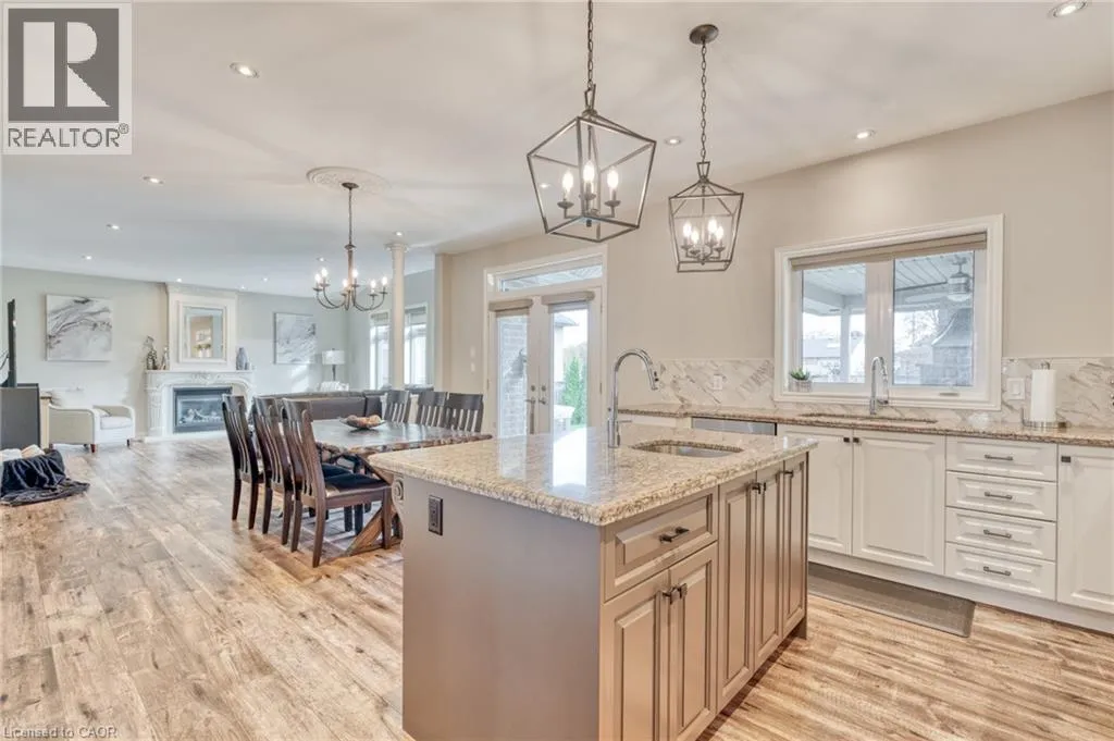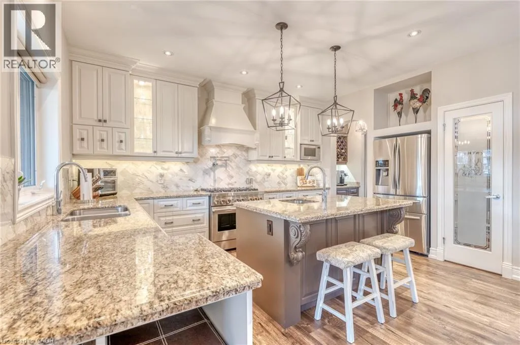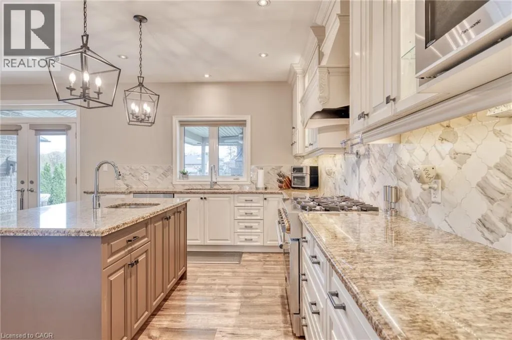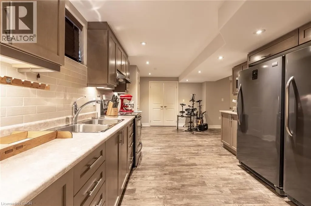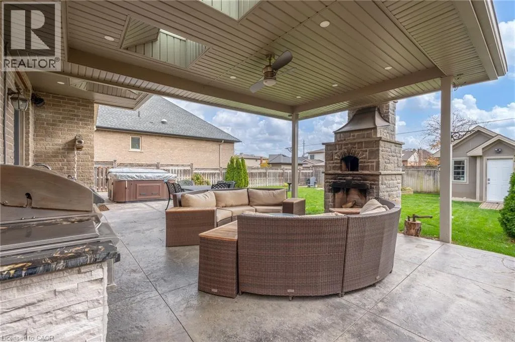 south on millen, right onto Royce, left onto south meadow Welcome to 28 Southmeadow Crescent, Stoney Creek. Nestled into a quiet neighbourhood, this home is an entertainers dream, featuring large open concept rooms on the main floor and in the basement. Featuring over 4000 square feet of finished living space, this home is equipped with 4 bedrooms, 4 bathrooms, 2 full kitchens, and multiple living and family rooms. With the gymnasium style rolling wall in the basement, kids can enjoy a huge recreation space that is versatile for hanging out with friends, sports training and expandable for large family gatherings. For the hobbyists and handy men we have a heated garage with high shelving, 50 AMP electrical panel, hot water hose bib, gas radiant heat, and additional space in the rear shed also including a 50 AMP electrical Panel. Stepping into the backyard this home enjoys a covered outdoor kitchen and sitting area surrounding a custom stone fire place with a brick pizza oven in the upper portion. The ceiling fan keeps the air moving on those warm summer nights, while the illuminated pond creates a picturesque backdrop for ultimate relaxation. For those with a green thumb, the raised garden beds and fence mounted planters provide plenty of space for home grown foods and botanical arrangements. Full list of features and upgrades ready upon request. Book your showing today! (id:27476)