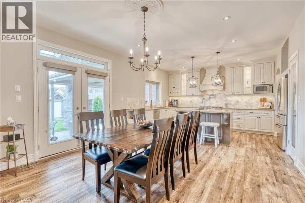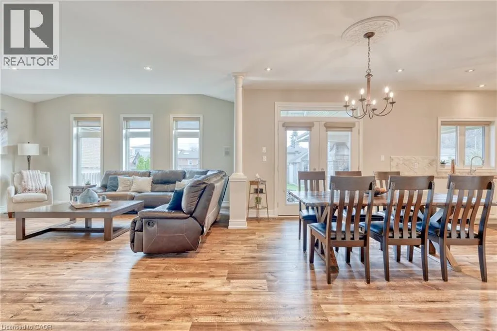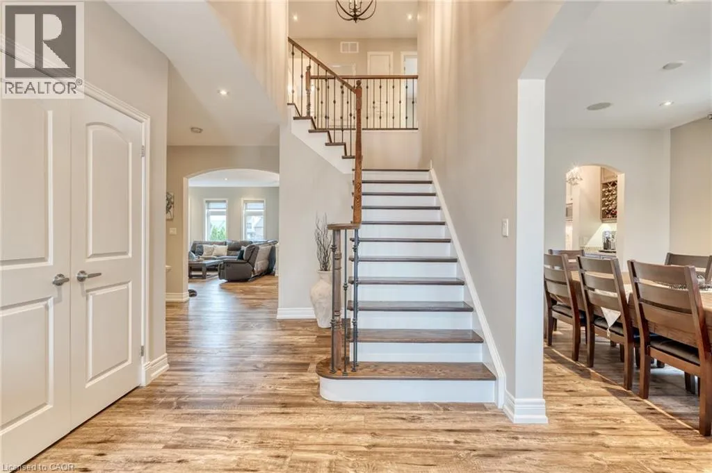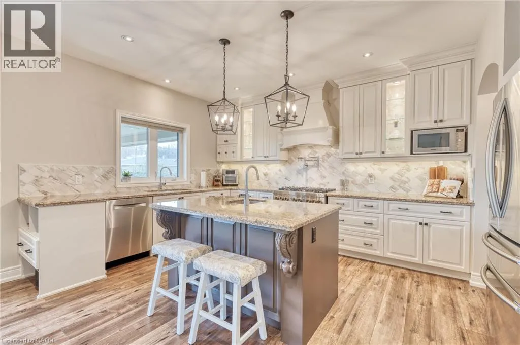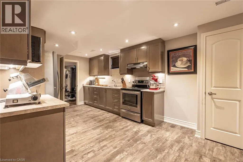 south on millen, right onto Royce, left onto south meadow Welcome to 28 Southmeadow Crescent, Stoney Creek. Nestled into a quiet neighbourhood, this home is an entertainers dream, featuring large open concept rooms on the main floor and in the basement. Featuring over 4000 square feet of finished living space, this home is equipped with 4 bedrooms, 4 bathrooms, 2 full kitchens, and multiple living and family rooms. With the gymnasium style rolling wall in the basement, kids can enjoy a huge recreation space that is versatile for hanging out with friends, sports training and expandable for large family gatherings. For the hobbyists and handy men we have a heated garage with high shelving, 50 AMP electrical panel, hot water hose bib, gas radiant heat, and additional space in the rear shed also including a 50 AMP electrical Panel. Stepping into the backyard this home enjoys a covered outdoor kitchen and sitting area surrounding a custom stone fire place with a brick pizza oven in the upper portion. The ceiling fan keeps the air moving on those warm summer nights, while the illuminated pond creates a picturesque backdrop for ultimate relaxation. For those with a green thumb, the raised garden beds and fence mounted planters provide plenty of space for home grown foods and botanical arrangements. Full list of features and upgrades ready upon request. Book your showing today! (id:27476)