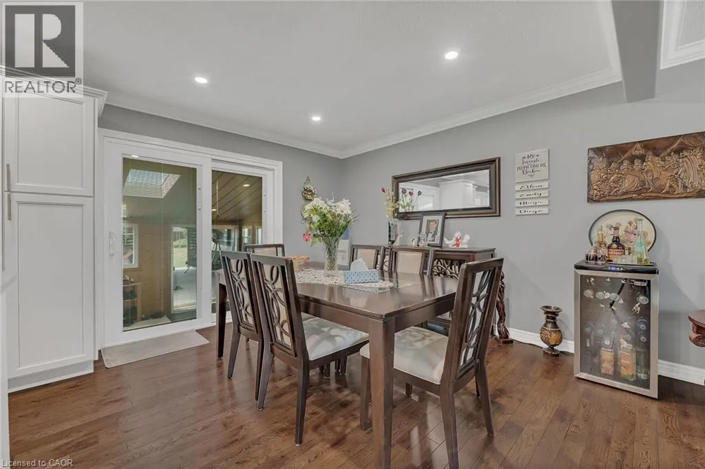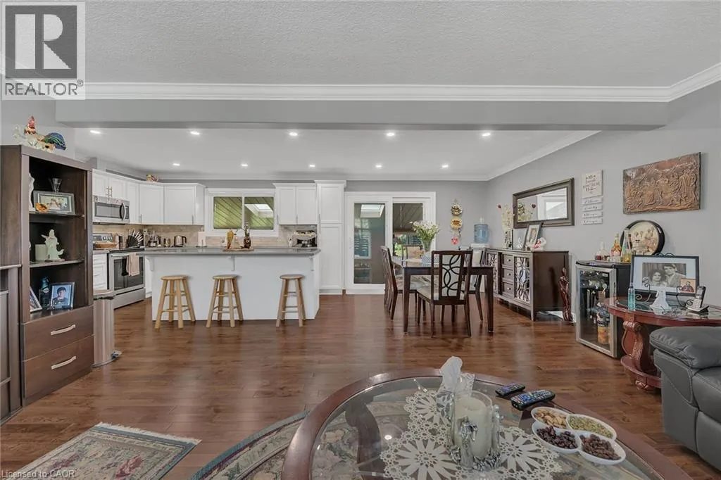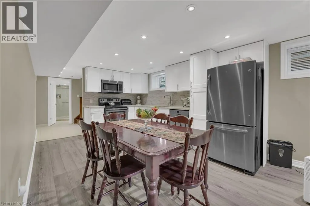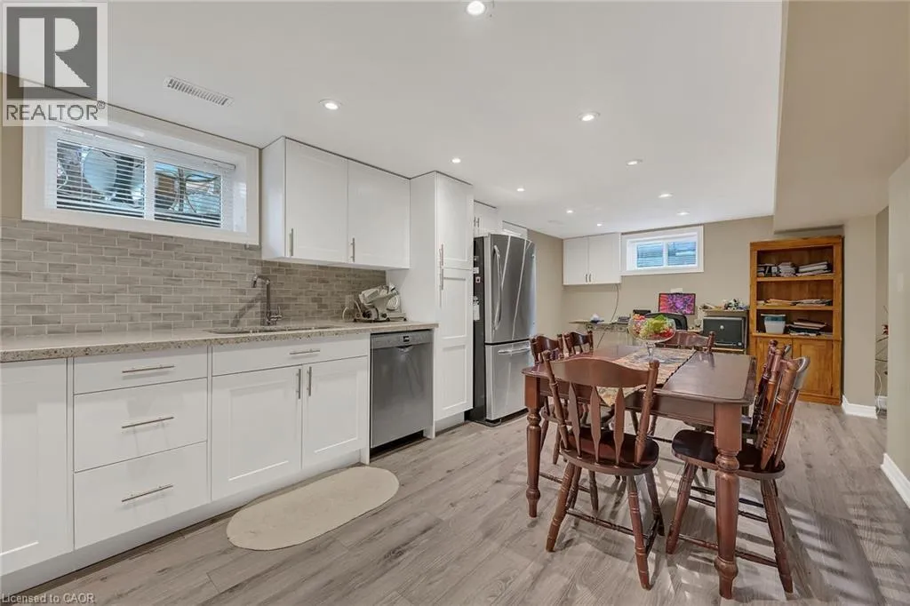 Between 8th and 9th Road Welcome to breathtaking, beautiful home at 982 Highland Road E, Stoney Creek. A rare opportunity to own unique property in rural Stoney Creek by escaping city traffic, while staying just minutes from city conveniences. Renovated and updated large bungalow features 3 spacious bedrooms with hardwood flooring, open concept kitchen, dining room, living room, 5 pcs bathroom (heated floor) and sun room on main floor. Fully finished lower level features In-Law suite set up, with another large eat-in-kitchen, bedroom, full bathroom (heated floor), living room, laundry and plenty of storage space. Step outside to humongous family friendly back yard, with large covered sitting area between garage and home for enjoyment and entertainment of summer days/nights. Standout feature of this property is detached double car garage/workshop. This is dream come true for hobbyist, trades people, or anyone needing ample storage or parking spaces that can fit up to 14-15 cars. Endless possibilities are here. Property offers the ideal combination of function, comfort, and accessibility. Call today to make this versatile, family oriented property your own! 100x200 lot. RSA (id:27476)