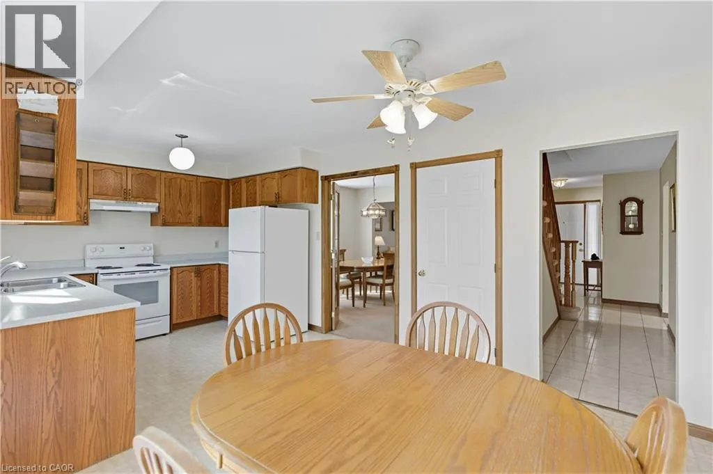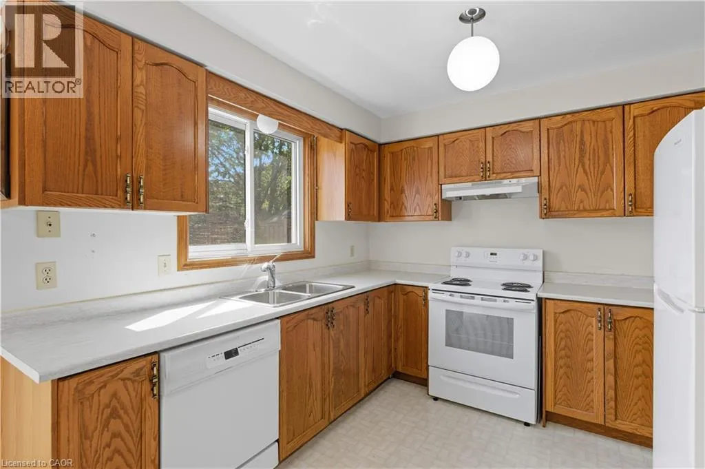 Hwy 20 driving south, turn right on Highland Rd W, turnright on Gatestone Dr Welcome to this spacious 4-bedroom, 2.5-bathroom family home, ideally located in a highly sought-after neighbourhood on a premium lot backing onto greenspace and across from Maplewood Park. Lovingly maintained by the same family for over 25 years, this property has great bones and is easy to modernize with simple updates like new flooring, fresh paint, etc. allowing you to truly make it your own. The main floor features a practical, family-friendly layout perfect for both everyday living and entertaining. Enjoy a bright eat-in kitchen, a separate dining room, a comfortable living room, and a generous family room ideal for gatherings. A convenient powder room and a functional side entrance leading to the mudroom/laundry area enhance day-to-day convenience. Sliding doors open to a large, private backyard with no rear neighbours, offering a peaceful setting for entertaining, future landscaping, or even adding a pool. Upstairs, the spacious primary suite includes a large closet and an ensuite bathroom with a separate shower and jet tub. Three additional well-sized bedrooms and a full main bathroom complete the second floor, providing plenty of room for a growing family. The finished lower level further expands your living space with an additional bedroom, a large recreation room, and abundant storage. With its own separate entrance, the basement offers excellent possibilities for a secondary unit, adding versatility and long-term value.With its all-brick construction, double-car garage, bright airy spaces, premium lot backing onto green space, and strong structural bones that make cosmetic updates simple, this home checks all the boxes. Located in a desirable neighbourhood with excellent schools, parks, and amenities nearby, it offers the perfect blend of comfort, privacy, and opportunity. Donât miss your chance to make this property your own! (id:27476)