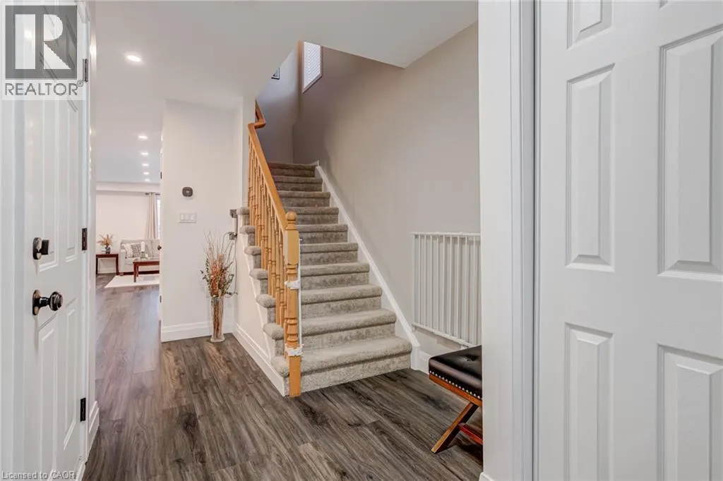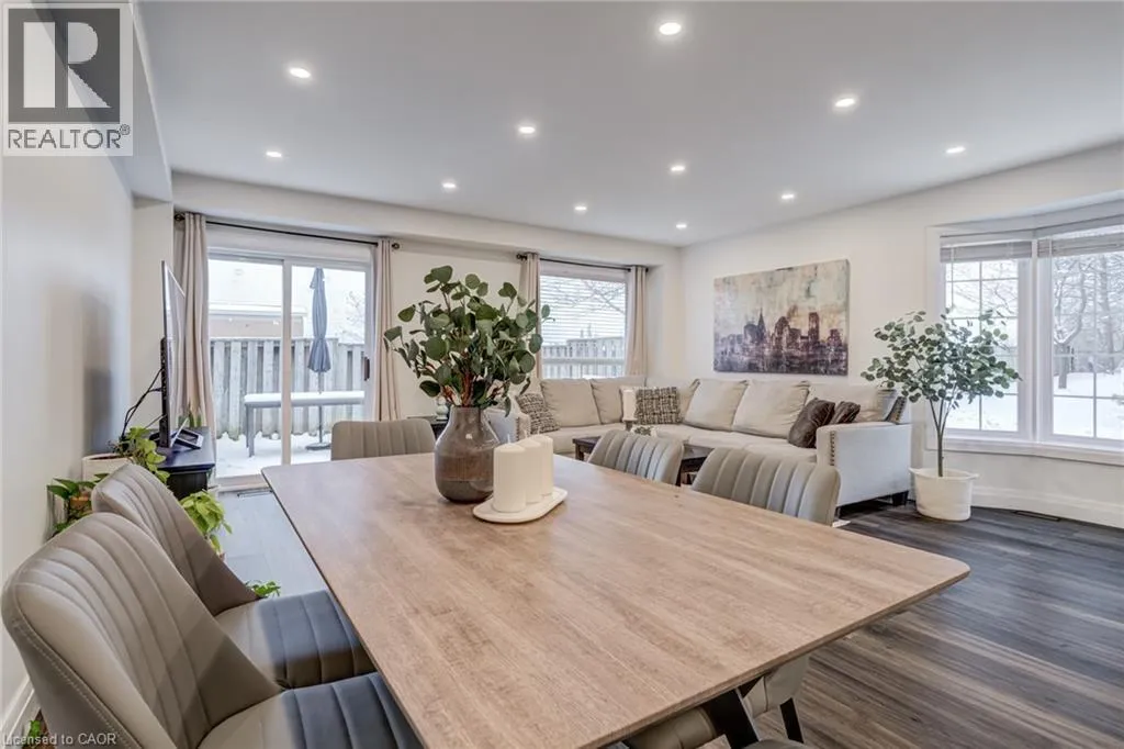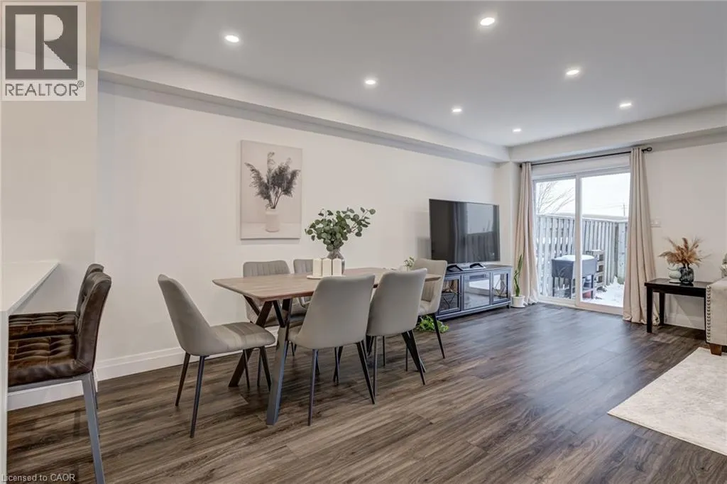 South from Highland Rd W on Gatestone Rd then East on Highbury Dr This attractive end-unit townhome is tucked away in a great family neighbourhood called Leckie Park. It is close walking distance to schools. There is 2139 sq ft of finished living space. The main floor was renovated to have spacious open concept living in 2022. The updates include granite counters, double-sized under mount sink, new cabinetry and appliances, pot lights, and luxury vinyl flooring throughout the main floor enhancing the continuity of open concept flow between kitchen, dining and living room and extends to the 2pc bath and hallway. The main floor is updated with Smart light switches which can be controlled by a Google Home app or Alexa. Walk out through the living room sliding doors to a fenced deck area for extended living. The finished recroom is 21x16 feet offering potential for a variety of entertaining options, and has a 3pc bath. The large primary bedroom has a walk-in closet that could potentially be converted to an ensuite given the 2pc bath below it, with the option of a closet being added wall to wall at the other end bedroom still leaving a large bedroom. Backs onto the park of the elementary school. Close to parks, shopping, dining and community amenities. Come and see all that this home and area have to offer. (id:27476)