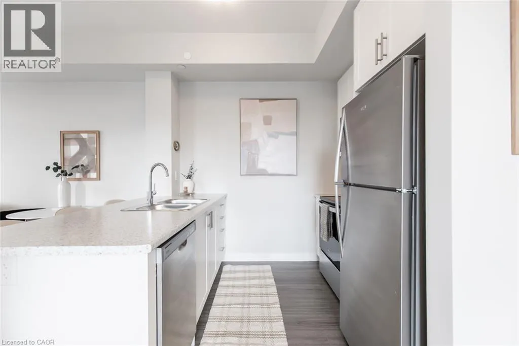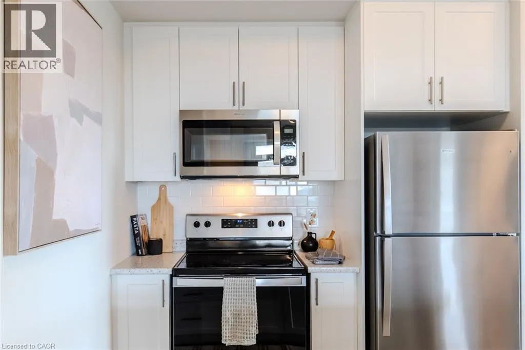 Centennial Pkwy N to Queenston Rd. Stunning never lived in 1 Bedroom + Den 1 Bath unit. Be the first to live in this stunning suite, featuring modern, contemporary finishes. The spacious kitchen boasts brand new stainless steel appliances (fridge/freezer, over-the-range microwave, and dishwasher), ample counter space, and sleek cabinetry. The open-concept living area extends to a cozy den, perfect for a home office or extra living space. Key Features: In-Suite Laundry, Individual Thermostat. Geo-Thermal Heating and Cooling. Amenities: Bike storage room, fitness center, and smart parcel lockers. (id:27476)
