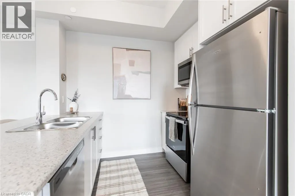 Centennial Pkwy N to Queenston Rd Stunning never lived in 1 Bedroom + Den 1 Bath unit. Be the first to live in this stunning suite, featuring modern, contemporary finishes. The spacious kitchen boasts brand new stainless steel appliances (fridge/freezer, over-the-range microwave, and dishwasher), ample counter space, and sleek cabinetry. The open-concept living area extends to a cozy den, perfect for a home office or extra living space. Key Features: In-Suite Laundry, Individual Thermostat. Geo-Thermal Heating and Cooling. Amenities: Bike storage room, fitness center, and smart parcel lockers. (id:27476)