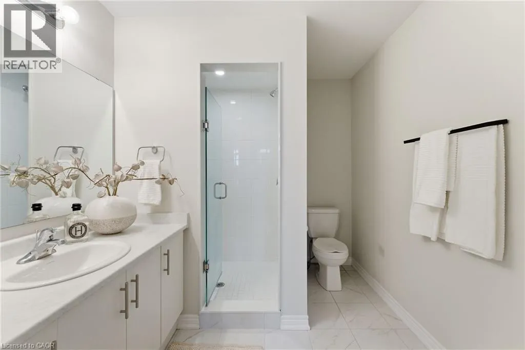 Fifty Rd to Sonoma Lane to Zinfandel Dr. Experience 3 bedrooms and 2.5 bathrooms of clean, calming, contemporary living at #38 - 40 Zinfandel Dr, perfectly positioned in one of Winonaâs most convenient neighbourhoods. The heart of the home is the bright, modern kitchen featuring an oversized island with seating, sleek stainless-steel appliances, and a striking mosaic tile backsplash that adds character to the crisp white cabinetry. Ideal for hosting or everyday meals, this space blends style and function seamlessly. A highly versatile main-level bedroom features endless flexibility, serving as the perfect home office, guest room, or private retreat. Upstairs, the exceptionally spacious primary suite provides the comfort and breathing room rarely found in todayâs newer builds. Located steps from the Fifty Road Power Centre, you'll enjoy unbeatable access to Costco, groceries, banks, restaurants, retail, and major commuter routes, placing convenience at your doorstep. (id:27476)