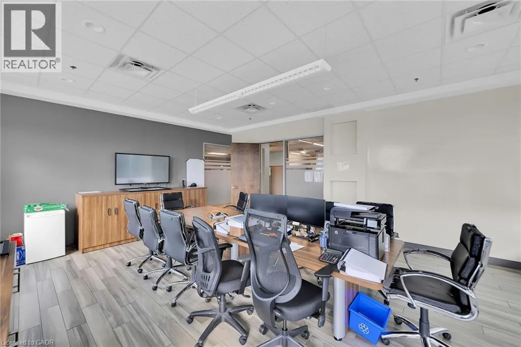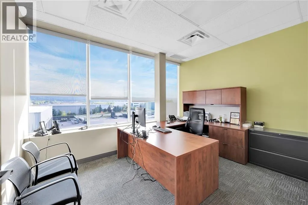 Take QEW exit to Fruitland, east on South Service Rd Office condominium in a well-maintained 17-year-old building. This professionally finished high profile office space is located along the QEW business corridor, making it a prime location with easy access to QWE. The office boasts glass walls, providing ample natural light and a sleek aesthetic. This space also includes convenient kitchenettes. Additionally, units 424/423, can be sold together and come with 12 parking spots. (id:27476)