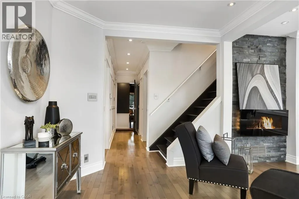 Highway 8/Warwick NEWLY APPROVED MEDICAL USE - MINOR VARIANCE. A rare opportunity to own a commercial non-conforming office and residence in one, offering an exceptional range of permitted uses. Approved uses include medical offices, barber and beauty shops, estheticians, shoe repair, tailoring and dressmaking, dry-cleaning depots, laundromats, photographic studios, and optical shops. This unique property allows you to live and work in one place, with excellent visibility, ample parking, and flexibility for modern business owners. The 1.5-storey building blends professional functionality with comfortable, upgraded living. The commercial entrance opens to a welcoming reception area with slate flooring, 9' ceilings, track lighting, chair rail detailing, large windows facing Highway 8, and a convenient bathroom. A spacious waiting area leads to a large studio space with soaring ceilings-ideal for a medical office or clinic, with flexible options for treatment rooms or consultations. A large basement adds a private office and generous storage for records, equipment, or staff use. Outside, the property offers 10 parking spaces and two street-facing signs, providing outstanding exposure on a high-traffic corridor .The separate residential entrance reveals a beautifully updated home featuring an electric fireplace, stone feature wall, hardwood flooring, crown moulding, and California shutters throughout. The upgraded kitchen includes quartz countertops, stainless steel appliances, breakfast bar, backsplash, and under- and over-cabinet lighting. The primary bedroom offers a walk-out to a private balcony/deck. The fully finished basement adds a third bedroom with pot lights, built-in shelving, and a gas fireplace, plus a 3-piece bathroom and a large storage room. The expansive backyard completes the offering with a two-level deck, in-ground sprinklers, and a large shed with hydro-ideal for additional storage or workspace. (id:27476)