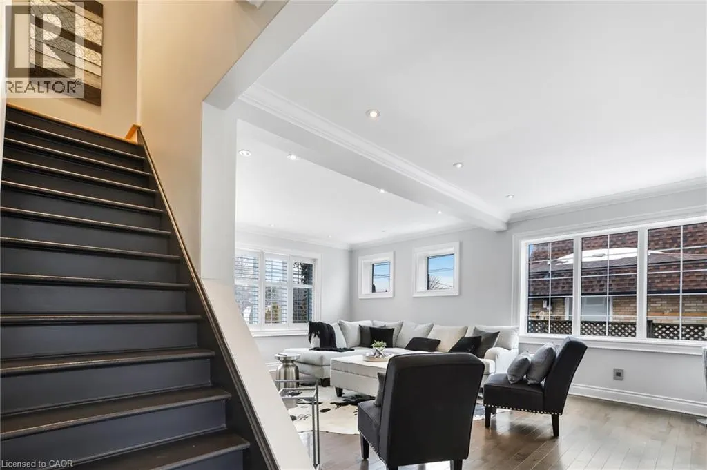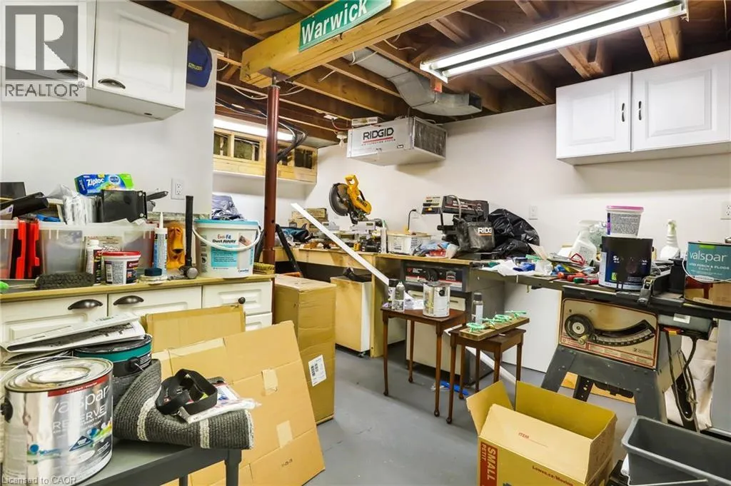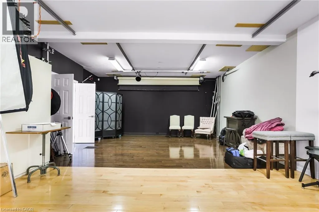 Highway 8/Warwick Road NEWLY APPROVED MEDICAL USE - MINOR VARIANCE. A rare opportunity to own a commercial non-conforming office and residence in one, offering an exceptional range of permitted uses. Approved uses include medical offices, barber and beauty shops, estheticians, shoe repair, tailoring and dressmaking, dry-cleaning depots, laundromats, photographic studios, and optical shops. This unique property allows you to live and work in one place, with excellent visibility, ample parking, and flexibility for modern business owners. The 1.5-storey building blends professional functionality with comfortable, upgraded living. The commercial entrance opens to a welcoming reception area with slate flooring, 9' ceilings, track lighting, chair rail detailing, large windows facing Highway 8, and a convenient bathroom. A spacious waiting area leads to a large studio space with soaring ceilings-ideal for a medical office or clinic, with flexible options for treatment rooms or consultations. A large basement adds a private office and generous storage for records, equipment, or staff use. Outside, the property offers 10 parking spaces and two street-facing signs, providing outstanding exposure on a high-traffic corridor .The separate residential entrance reveals a beautifully updated home featuring an electric fireplace, stone feature wall, hardwood flooring, crown moulding, and California shutters throughout. The upgraded kitchen includes quartz countertops, stainless steel appliances, breakfast bar, backsplash, and under- and over-cabinet lighting. The primary bedroom offers a walk-out to a private balcony/deck. The fully finished basement adds a third bedroom with pot lights, built-in shelving, and a gas fireplace, plus a 3-piece bathroom and a large storage room. The expansive backyard completes the offering with a two-level deck, in-ground sprinklers, and a large shed with hydro-ideal for additional storage or workspace. (id:27476)