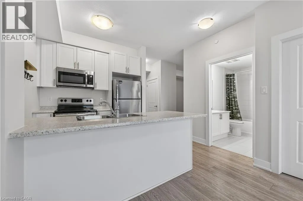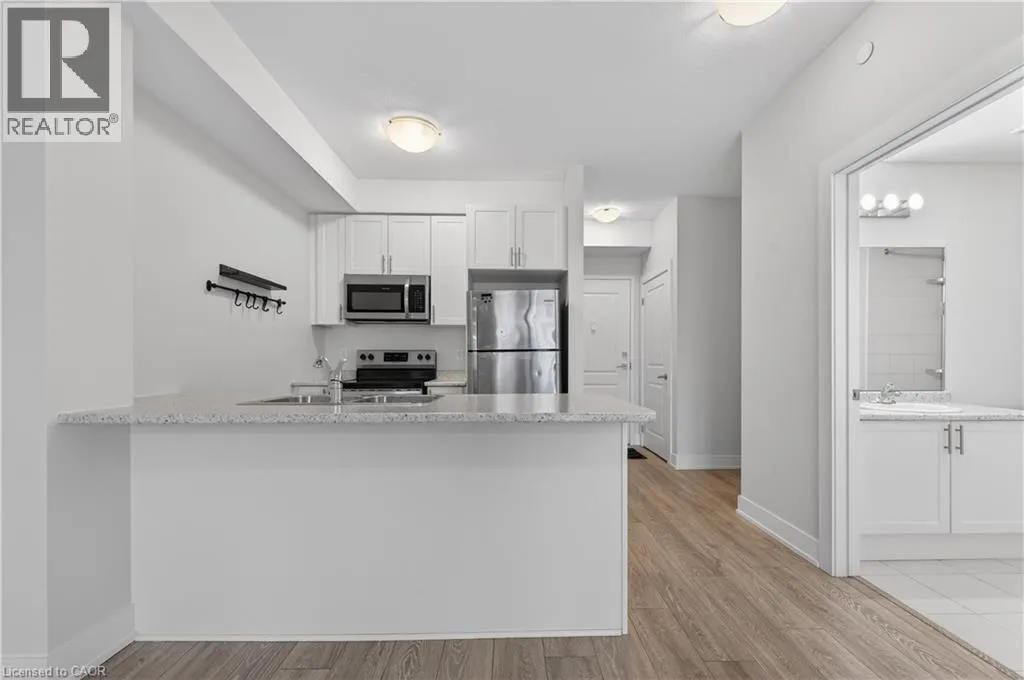 QEW - Centennial Parkway - North Service - Shoreview Place Welcome to 303-125 Shoreview Place. This spectacular condo features modern and stylish finishes with 1 BEDROOM + DEN, 1 bathroom, open concept kitchen with breakfast bar, in-suite laundry, walk-in-closet, stainless steel appliances, 1 underground parking, 1 locker. Fantastic location in the desirable Stoney Creek lakefront community with spectacular view of Lake Ontario right from your bedroom and private balcony! Sapphire condos built by award winning builder New Horizon Development Group. Building offers its residents a fully equipped gym, party room, bike room and breathtaking views of the lake from the rooftop terrace. You can also take a walk along the Waterfront Trail or dip in the lake from the beach strip located just behind the building. Ideal for young professionals, retirees, commuters. Convenient location near Hwy access, and Go Confederation Station. Immediate possession available. Minimum 1 y lease, 1st and last deposit, letter of employment, recent 4 pay stubs, references, rental application, credit check (Full report Equifax) and ID's. No smoking of any kind. Not pet friendly. Monthly rent includes: heat. Tenant responsible for electricity, water. RSA. 668 sqf, as per builder plan. (id:27476)