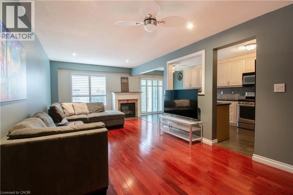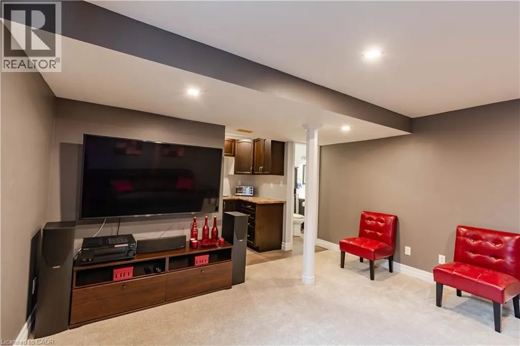 North Service Road to Green Road Welcome to beautiful Stoney Creek. This unique freehold townhome is only attached at the garage walls. Step inside to the sunfilled living room with gleaming hardwood floors and custom kitchen with stone countertops. Upstairs has 3 great size bedrooms with the primary having a large walk in closet and ensuite. Bedroom level laundry as an added bonus. The lower level in completely finished with a family room, wet bar and a 2pc bathroom. California shutters throughout the home, gas line for BBQ and inside entry to the oversized garage. Just steps to Lake Ontario, walking trails, the QEW, shopping and dining. (id:27476)