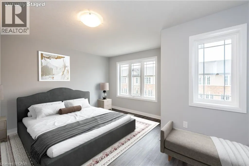 Rymal Rd. South onto Terryberry Rd. Left onto Dalgleish Trail, First Left onto Canary Grass Blvd, Left of Aquarius Cres Welcome home to this beautiful, move-in ready 3-storey townhome in the highly sought-after Hannon Community of Stoney Creek Mountain (2021 new build), available for possession on March 1st. This family-friendly home features 3 bedrooms, 2.5 bathrooms, and a finished rec room that could serve as a 4th bedroom. The primary bedroom includes a 4-piece ensuite, and the bedroom-level laundry adds convenience. Enjoy an eat-in kitchen with quartz countertops, white cabinets and stainless steel appliances, laminate floors throughout, and patio doors leading to a private rear deck and backyard. Inside entry from the garage and driveway adds practicality. Tenants are responsible for all utilities, including hydro, water, gas, hot water tank and internet. Small pets are welcome, smoking is not permitted. Key deposit is $250. Grass maintenance is handled by Condo Corp, while snow shovelling on the driveway is the tenantâs responsibility. Ideally located within walking distance to public transit, schools, and shopping, with easy access to highway, and close to big box stores, entertainment, and nature trails. This is the perfect family home in a prime location! (id:27476)
