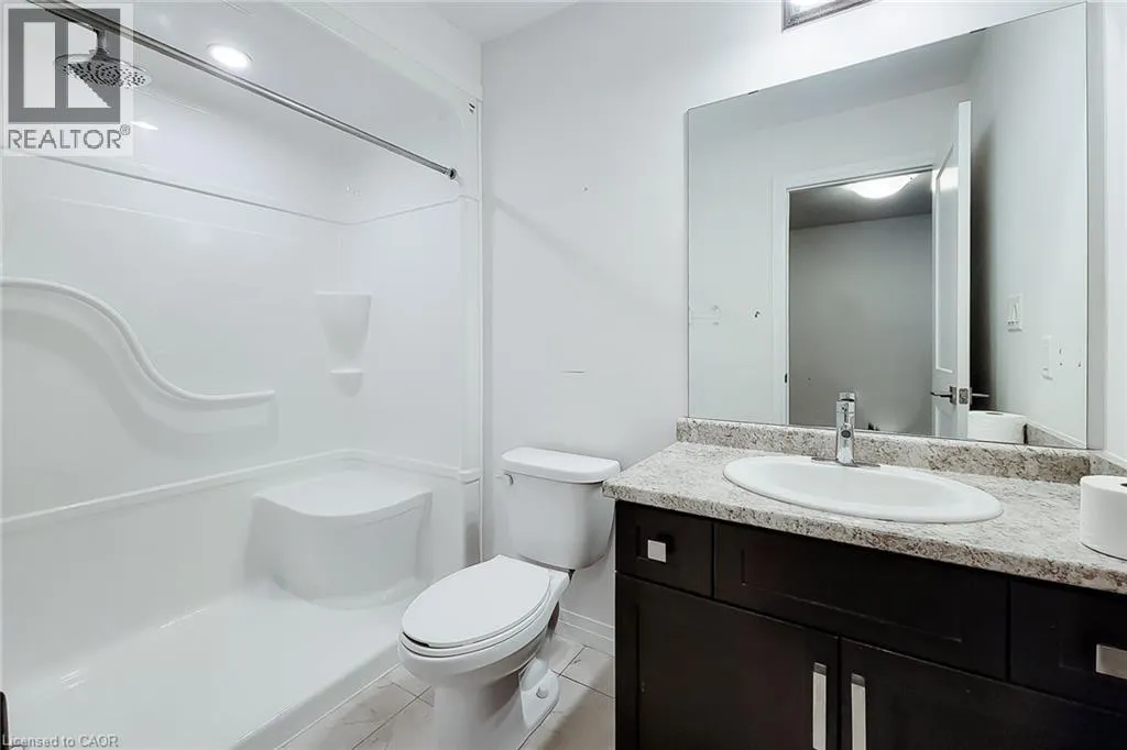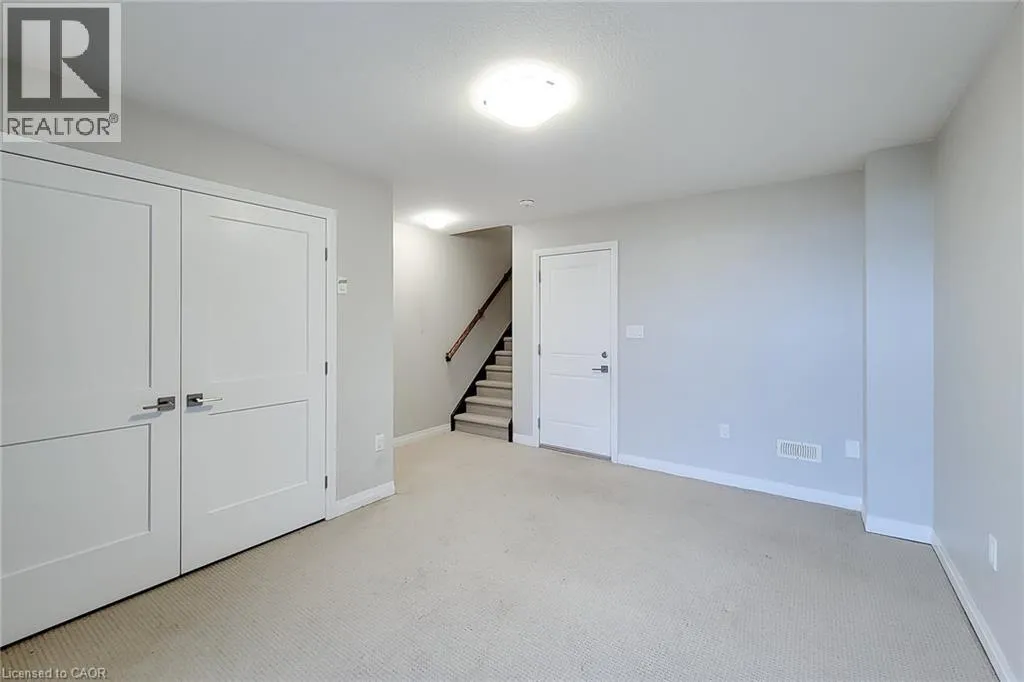 Upper Red Hill & Rymal Welcome to this beautifully maintained freehold townhouse located in the desirable Central Park community, offering just over 1,600 sq ft of finished living space. Thoughtfully designed for comfort and functionality, the main floor features a cozy living room, convenient 2-piece powder room, and main-floor laundry. The spacious eat-in kitchen provides ample cupboard space and a walk-out to a private balcony, perfect for morning coffee or casual dining. Upstairs, the primary bedroom is a true retreat with a walk-in closet and 4-piece ensuite bathroom featuring a walk-in shower, complemented by two additional well-sized bedrooms and a 4-piece main bathroom. The finished basement adds valuable living space with a large rec room and walk-out to the back patio, ideal for entertaining or relaxing. Additional highlights include a built-in single-car garage with extra storage and inside entry. Ideally located close to schools, parks, walking trails, highway access, and all major amenities, this end-unit townhouse offers the perfect blend of space, convenience, and lifestyle. (id:27476)