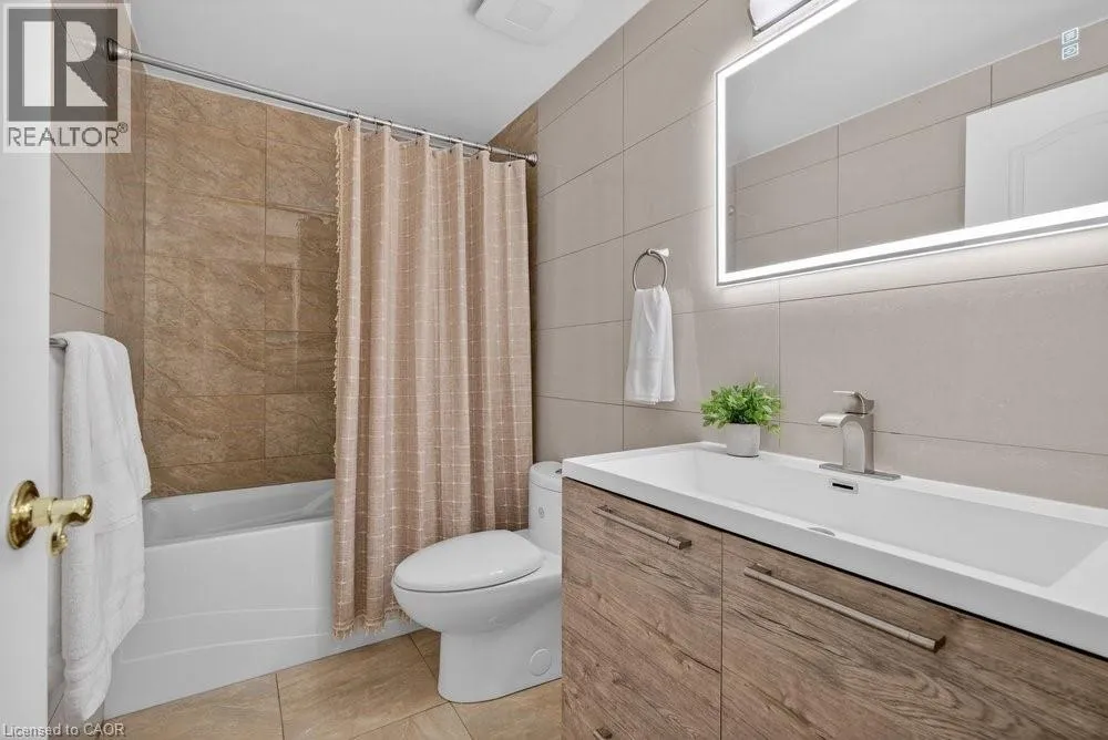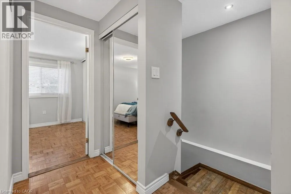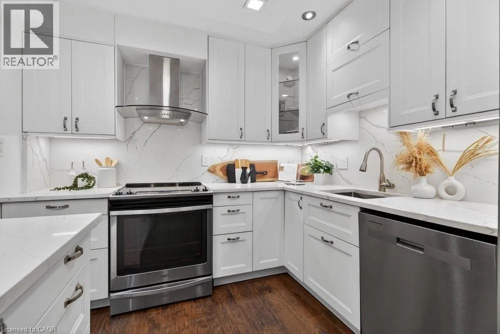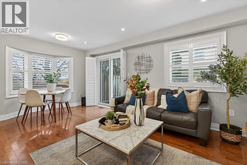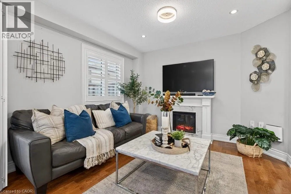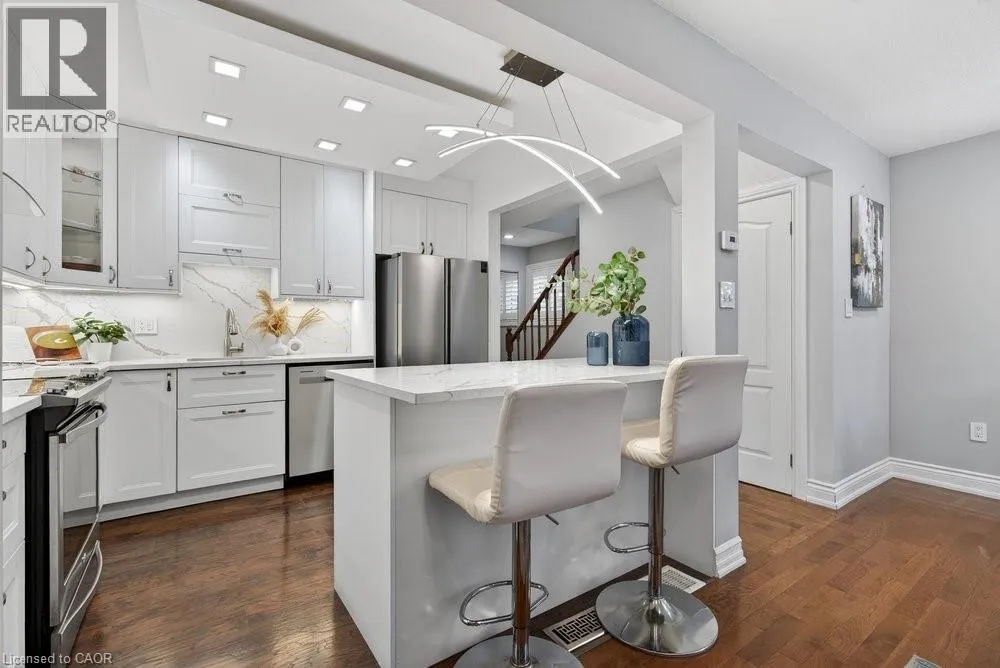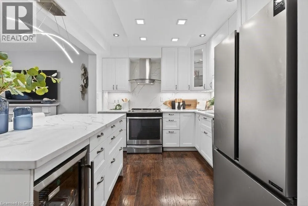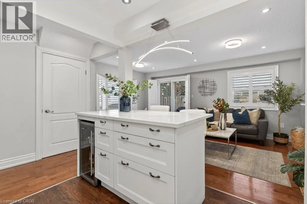 Fruitland Rd to Barton St Gorgeous end-unit townhouse in a fantastic Stoney Creek location! Just minutes to the QEW (Fruitland) and close to schools, parks, restaurants, and all amenities. This home is extremely well maintained, spotless, and loaded with updates. Stunning open-concept kitchen featuring white soft-close cabinetry, quartz countertops, backsplash, centre island, and wine fridgeâperfect for everyday living and entertaining. Updated bathrooms, ceramic and hardwood flooring, pot lights, California shutters, and convenient inside entry from the garage. Major updates include furnace and A/C (August 2022) and a garage door opener (August 2022). Unspoiled unfinished basement offers endless potential. Enjoy a private rear yard surrounded by trees with patio, deck, and professional landscaping. Outstanding location, great complexâshows 10+! (id:27476)