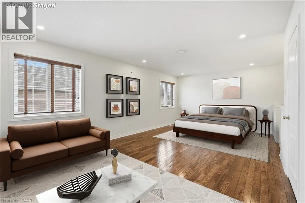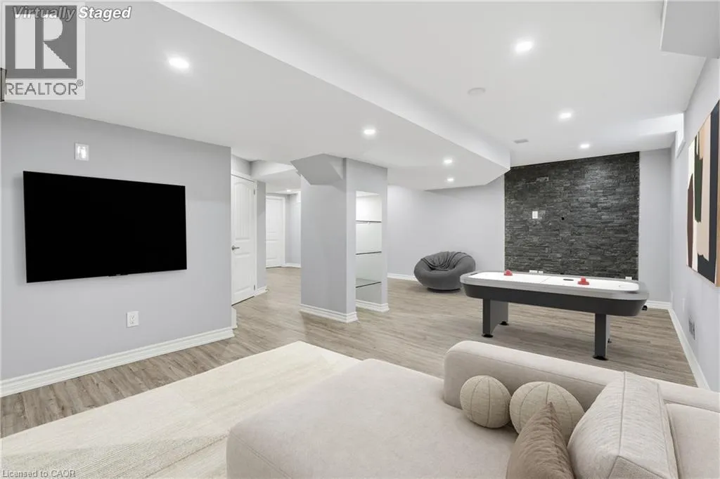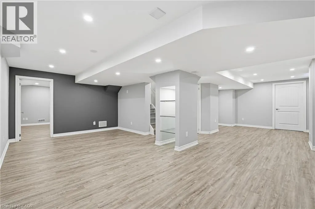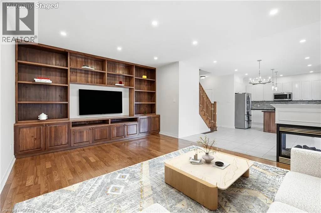 North Service Rd to Lockport Wy to Springstead Ave Welcome to 100 Springstead, an exceptional corner-lot home offering space, style, and thoughtful upgrades throughout. This 5 bedroom, 4 bathroom residence impresses from the moment you arrive with an exposed aggregate driveway, stamped concrete covered wrap-around front porch, and a double garage finished with epoxy chip flooring. Inside, the open concept main level is anchored by a striking three-sided fireplace connecting the kitchen and living room, complete with granite countertops, stainless steel appliances, a built-in entertainment unit, and solid oak staircase. Main level laundry, central vac, wood blinds throughout, and a seamless flow make everyday living effortless. The primary bedroom retreat offers a private ensuite and two walk-in closets with custom built-ins, providing exceptional comfort and storage. Step outside to enjoy a wrap-around balcony that can be accessed directly from the front bedroom through elegant French doors. In the backyard you will find a large deck ideal for entertaining or relaxing and a private yard with shed. A Rainbird automatic sprinkler system will make sure the grass is always green. The finished basement adds flexible living space, while 4K cameras, alarm system, and fully hardwired internet provide peace of mind and modern convenience. Located minutes from Fifty Point Conservation Area, Lake Ontario shoreline, parks, and trails, with quick access to the QEW, Winona Crossing, Costco, restaurants, and local shops. This is a home designed for comfort, connection, and an elevated lifestyle. (id:27476)