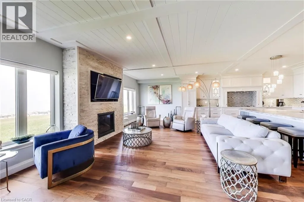 North Service Road to Millen road Step into luxury lakefront living at its finest in this fully renovated ground-floor suite at the exclusive 24-unit Bal Harbour Condos in Stoney Creek. This is the most coveted and rarest unit in the community â and none like it have come up for sale in over 5 years. Spanning 2,280 sq. ft. plus a fully finished lower level, this exceptional residence blends high-end finishes with modern design and includes an attached double garage and electric car charger. The open-concept layout flows seamlessly into a stunning Lumon glass-enclosed patio â perfect for year-round entertaining or relaxing with unobstructed waterfront views. Both the living room and the extra-large primary suite open directly to this elegant indoor-outdoor space, creating a private retreat on the shores of Lake Ontario. The primary suite is a true showstopper, with panoramic lake views, a spa-inspired ensuite, and a massive built-in walk-in closet that feels like a boutique dressing room. The designer kitchen features a striking marble island, high-end appliances, and sleek custom cabinetry, opening to the living and dining areas for effortless hosting. High-end engineered hardwood runs throughout the main level, where youâll also find a second bedroom currently used as a stylish home office. The lower level offers two additional bedrooms, a bathroom, and ample extra living space. Move in today and enjoy a carefree lifestyle that feels like a vacation every day. From the luxury finishes to the serene waterfront setting, this is lakefront living redefined. (id:27476)