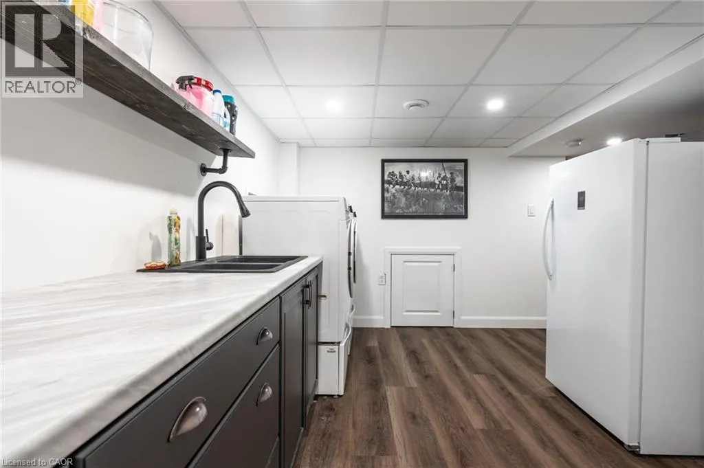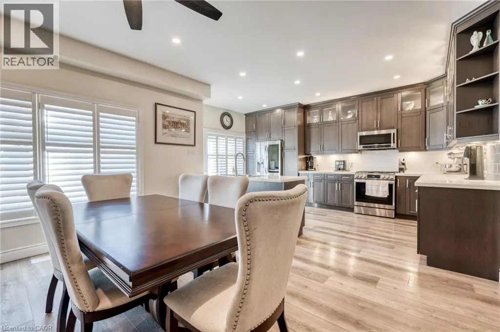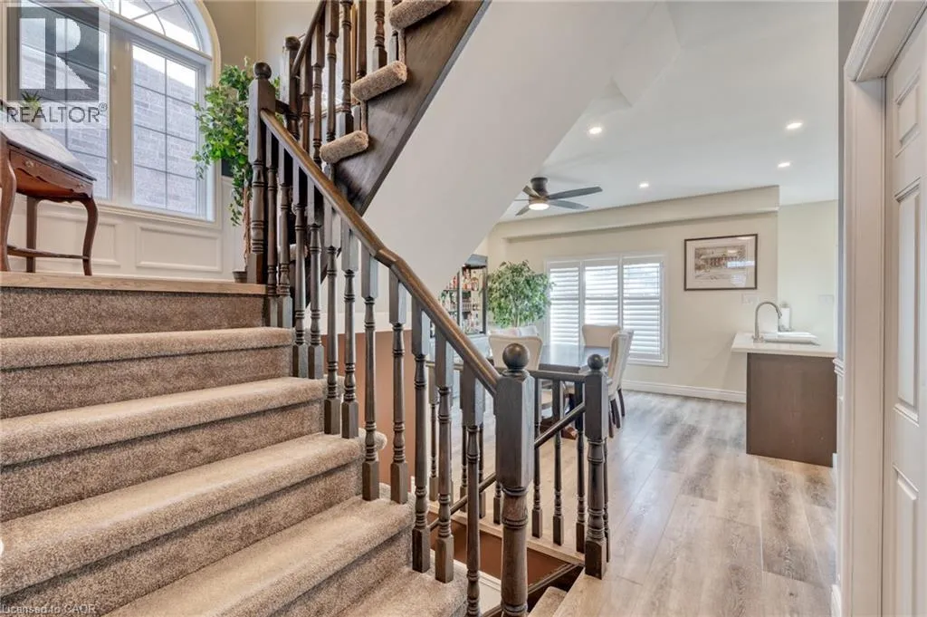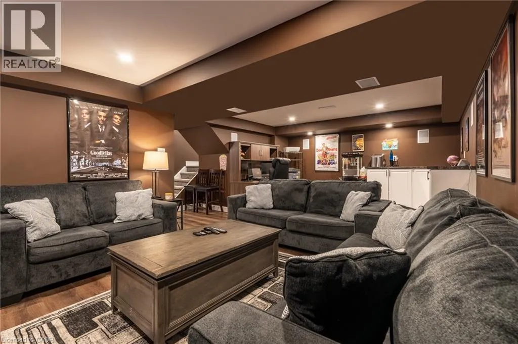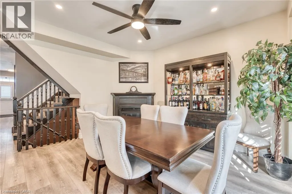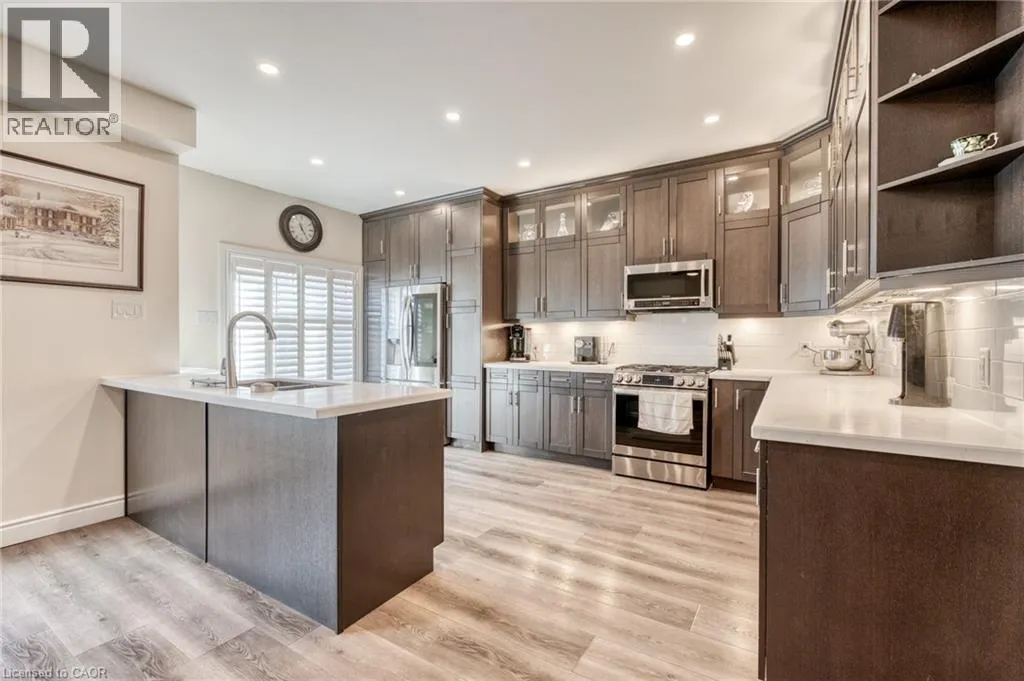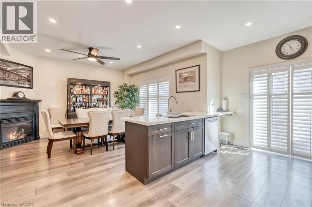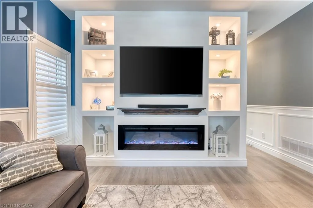 North off North Service Road Welcome to 10 Lockport Way, ideally located just steps from the scenic Fifty Point Conservation Area. This beautifully updated end-unit townhome has been thoughtfully renovated and styled throughout, featuring a brand-new kitchen with quartz countertops, custom millwork, and a fully finished basement with a theatre-style living room. Designed for both comfort and convenience, the home offers three fireplaces, dimmable and smart lighting across the main floor, basement, garage, and exterior, enjoying full smart-home integration. The heated garage provides exceptional flexibility, perfect for a home gym or workshop. Recent upgrades include a roof (3 years), furnace and air conditioning (5 years). The backyard is fully equipped with natural gas lines for a BBQ and fire pit, plus electrical service to the shed. The basement is pre-wired for a Dolby Atmos home theatre system, creating an immersive entertainment experience. (id:27476)