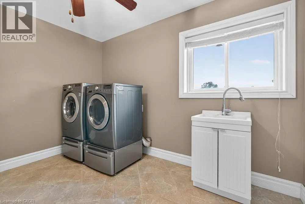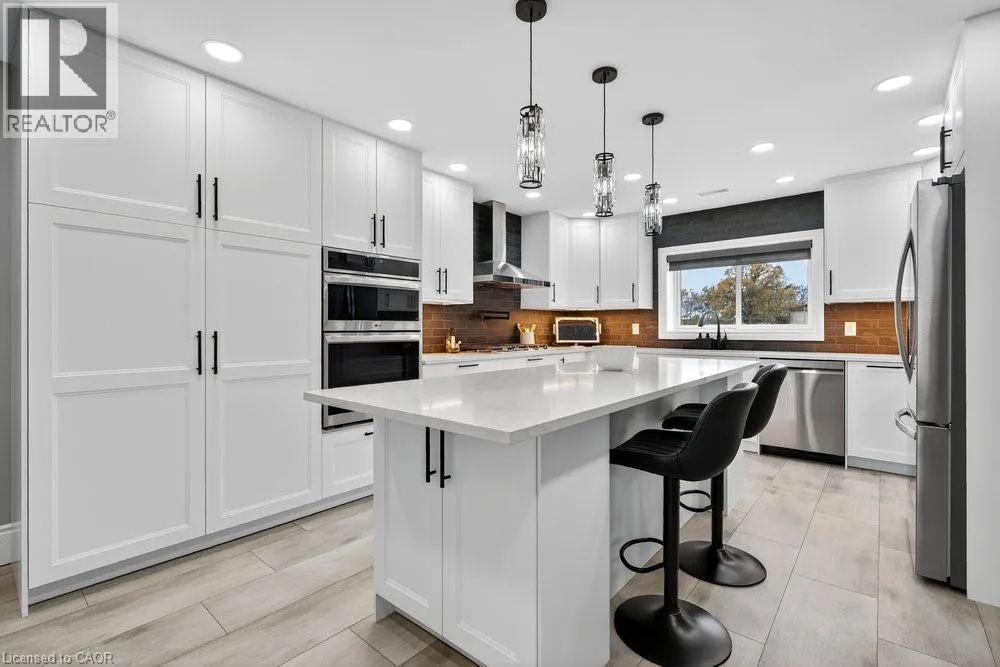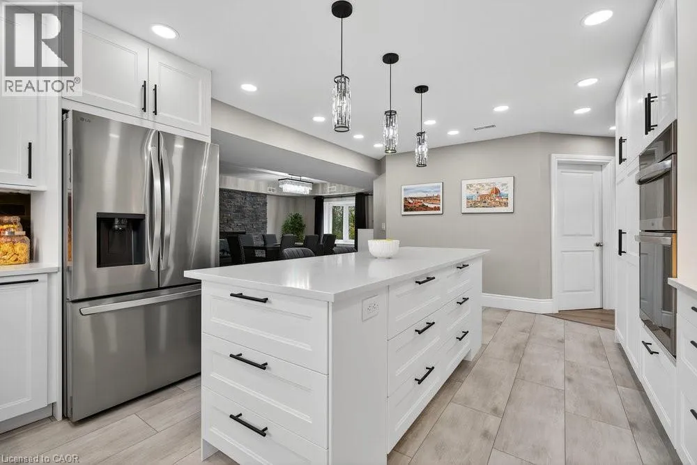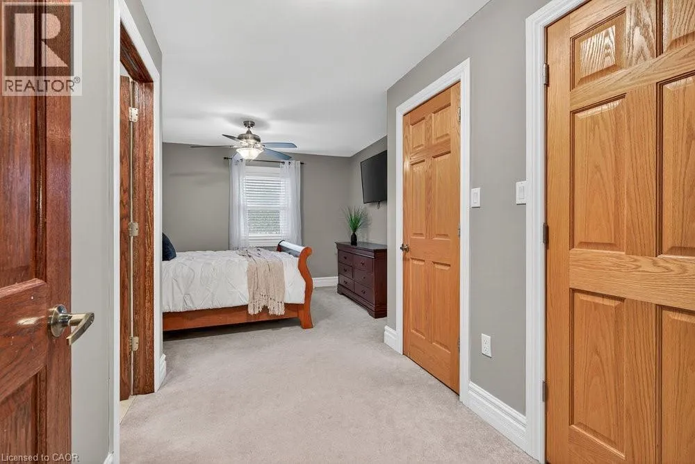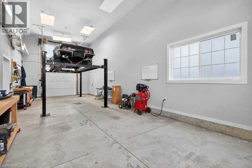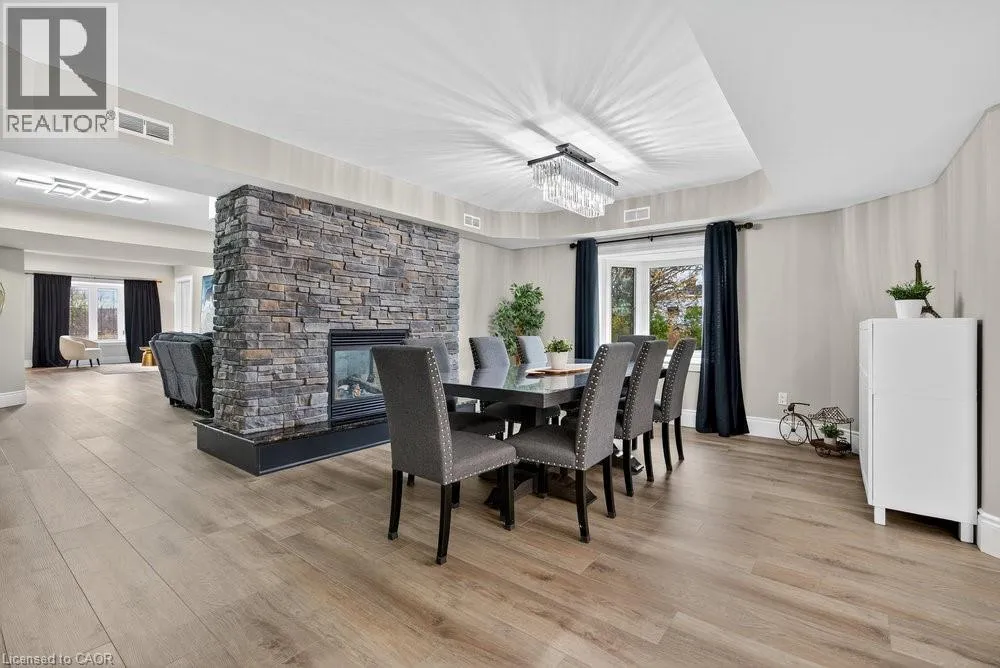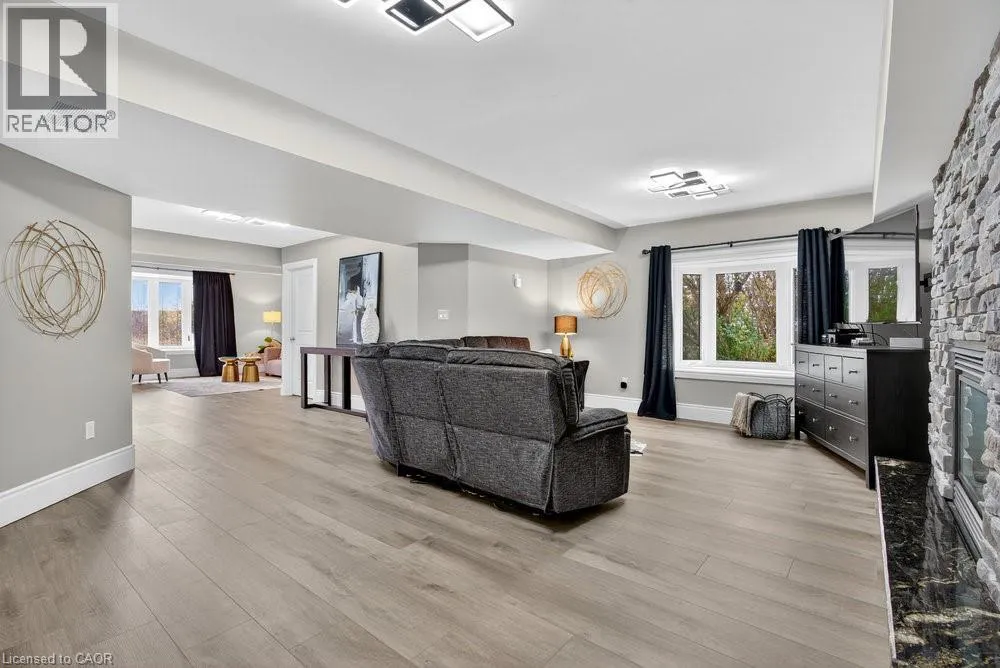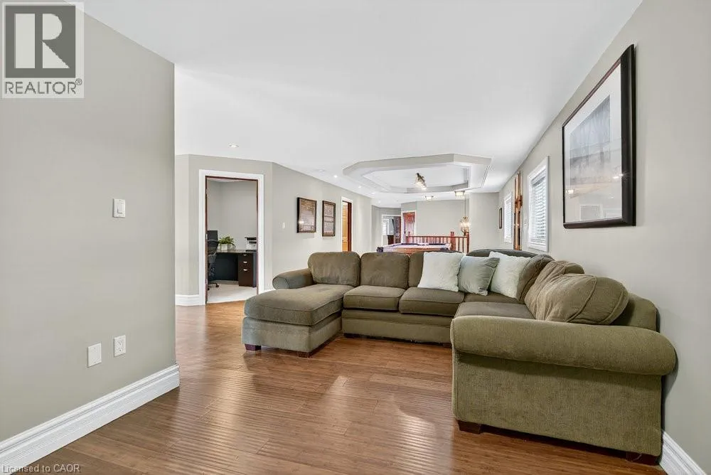 south on Fruitland Rd - right onto Highway 8 - left on Dewitt Rd - right at Ridge Rd - left on First Rd E - right onto Green Mountain Rd E Welcome to 74 Green Mountain Road where spacious country living meets city convenience! Discover the perfect blend of rural tranquility and modern comfort in this stunning 5,200 sq. ft. two-story home, ideally located just minutes from city amenities. Designed for those who value space and versatility, itâs perfect for large families, multigenerational living, or anyone needing room for hobbies, vehicles, or a home business. Step inside to a bright, open-concept layout featuring a grand two-story front sitting room, spacious living and dining areas with a two-sided gas fireplace, and a beautifully updated kitchen (2024) with quartz counters, built-in appliances, a large island, and breakfast bar. Enjoy main and second-floor offices, a generous mudroom with custom built-ins, and flexible living and storage spaces. Entertainment options abound with a games room, theatre room, and multiple gathering areas. Recent upgrades include luxury vinyl and hardwood flooring (2024), designer ceilings, updated baths, new lighting, pot lights, and fresh paint. Outside, enjoy an attached drive-thru quad garage with double storage addition (six roll-up doors), extensive concrete driveways, patios, and 55 privacy cedars for a peaceful retreat. Relax with morning coffee or sunset views from the south-facing primary balcony. With updates to the roof, furnace, and AC, this move-in ready home offers comfort, abundance, and connection to both nature and convenience. (id:27476)