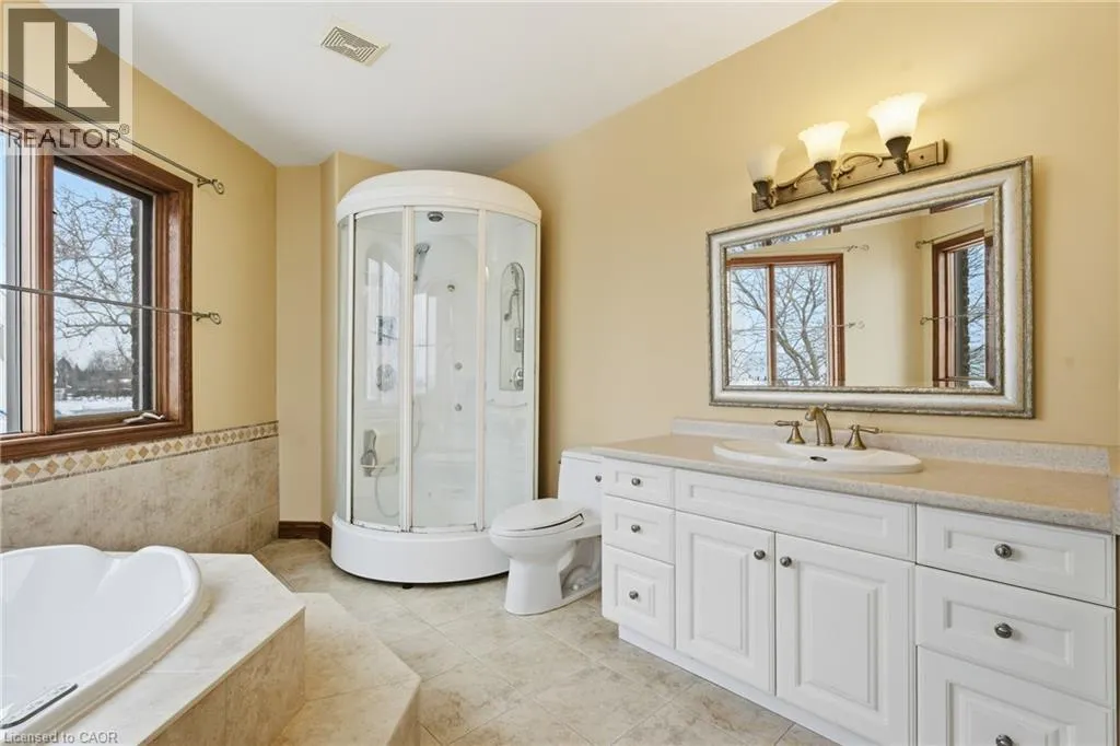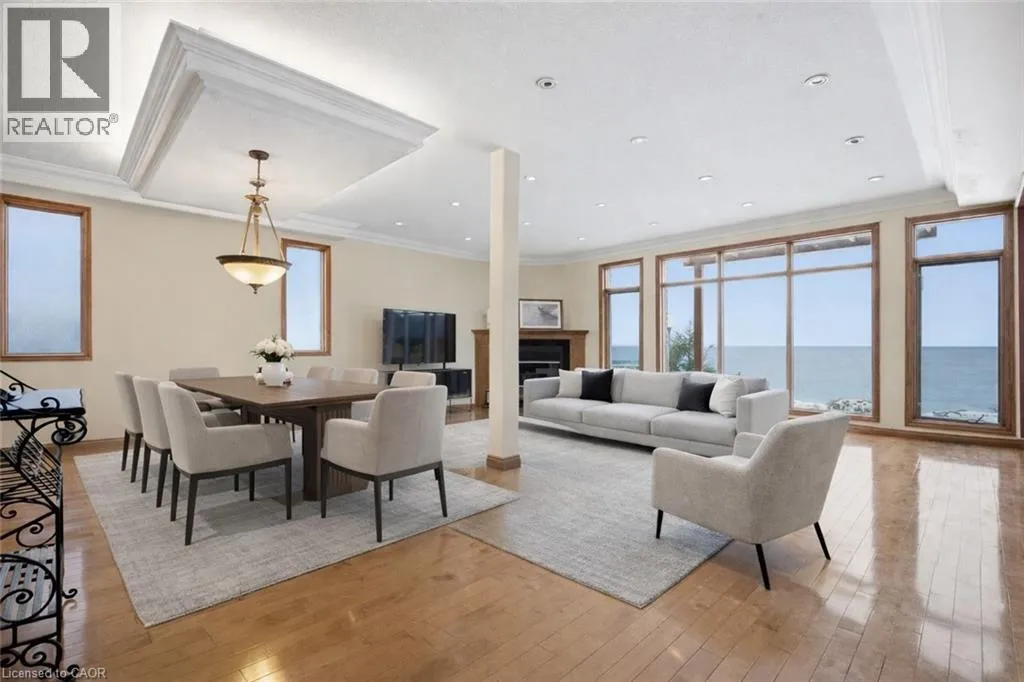 Welcome to 4 Lakeside Dr, Stoney Creek, a rare opportunity to own a custom-built waterfront home (2002) with 50 feet of direct frontage on Lake Ontario. From the moment you walk through the front door, you are greeted by breathtaking, unobstructed lake views, setting the tone for this exceptional property. This beautifully maintained home offers 4 spacious bedrooms on the upper level plus an additional 5th bedroom in the finished basement, making it ideal for families or multi-generational living. Designed with comfort and style in mind, the home features no carpet throughout, ensuring a clean, modern feel. Enjoy stunning panoramic views of Lake Ontario and the Toronto skyline, creating a truly one-of-a-kind backdrop for everyday living and entertaining. Whether watching the sunrise over the water or city lights at night, this property delivers a lifestyle that is both peaceful and impressive. A rare blend of custom craftsmanship, prime waterfront frontage, and unforgettable views, 4 Lakeside Dr is lakefront living at its finest. (id:27476)