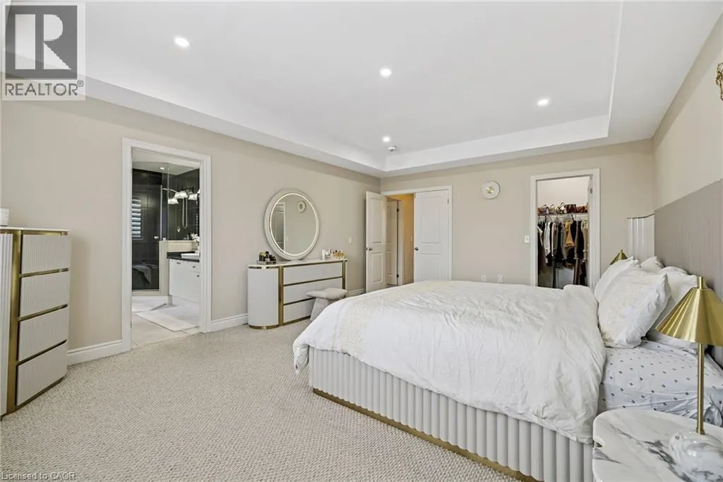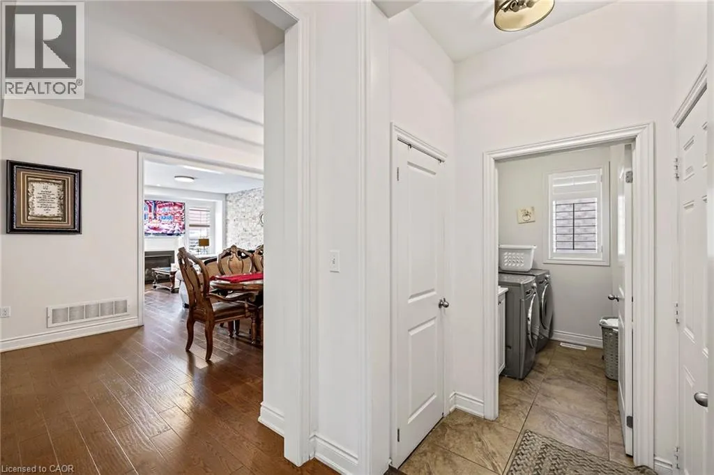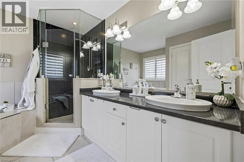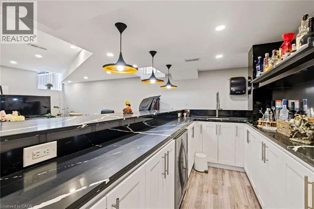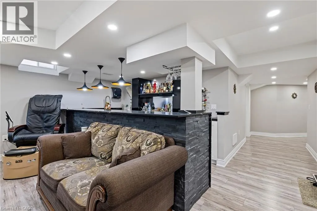 Upper Centennial Pkwy to Highland Rd to Chaumont Dr Welcome to 114 Chaumont Dr and step into refined living in this beautifully appointed Stoney Creek Mountain home, offering soaring 9-foot ceilings, and impressive grand foyer, main-floor laundry, and a convenient separate entrance for In-Law Potential. Rich hardwood floors, California shutters, and in-ceiling speakers complement the thoughtfully designed layout, featuring separate living and dining spaces, a gas fireplace, and a bright open-concept kitchen with a breakfast bar, quartz countertops, designer stone backsplash, premium appliances, and a French door walkout to the backyard, all filled with an abundance of natural light. The second level offers four generously sized bedrooms and two full bathrooms, including a Jack-and-Jill layout, while the spacious primary suite features a walk-in closet and a luxurious five-piece ensuite. The finished basement, complete with a separate entrance, is designed for entertaining and relaxation, showcasing a large recreation area, custom stone wet bar with built-in wine cooler, sleek quartz countertops, a striking stone feature wall, an electric fireplace, and pot lighting throughout. Outside, enjoy an expertly crafted composite deck with gas BBQ hookup, a custom cabana, and a stunning illuminated hot tub for year-round hosting and enjoyment. Ideally located in the heart of Stoney Creek Mountain, just minutes from top-rated schools, parks, shopping, and quick highway access, this exceptional home is a must-see! (id:27476)
