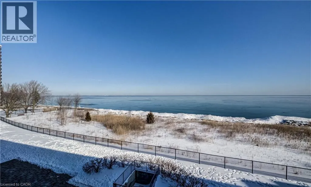 Beautiful 1 bedroom plus 1 den with unobstructed Lake Ontario views from Living Room, balcony and picture window in primary suite. Premium unit with 9 foot ceilings, quartz countertops, ensuite laundry, matching stainless steel Whirlpool appliances, under ground parking space. Fantastic common amenities include massive rooftop terrace with Lake Ontario views, party room, gym, bike storage. Donât miss this great home. (id:27476)