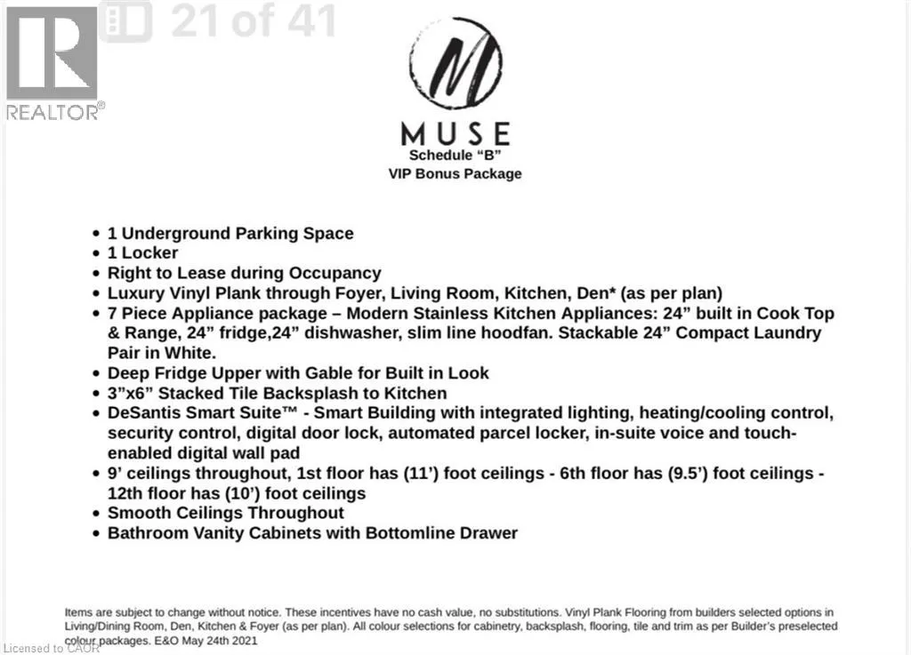 Off North Service Road between Fruitland Road and Centennial Parkway from QEW Niagara Be the First to Live in this 4th Floor Unit in The Muse Condos in Stoney Creek. Unit #422 offers 525 sq/ft plus a Large 82 sq/ft West facing balcony. This modern 1 Bedroom, 1 Bathroom has it all with 9' Ceilings, Floor-to-Ceiling Windows, Luxury vinyl plank flooring throughout, Quartz countertops, Pot lights, Brand New Stainless Steel Appliances with in-suite stackable Laundry. One underground Parking space & One Locker included. Bell Internet is FREE for the first year. Smart Building with Smart Suite includes integrated lighting, heating/cooling control, security control, digital door lock, automated parcel locker in front entrance, in-suite voice and touch enabled digital wall pad. The Smart Home features include app-based climate control, security, energy tracking, and digital access. Great Location for Commuters being just minutes from the new GO Station, Confederation Park, Van Wagner's Beach, scenic lakeview trails, shopping & restaurants. Ground floor commercial space and resident amenities, including a stunning 6th-floor lakeview terrace with BBQ(s) and seating areas, studio space, media lounge club room with chef's kitchen, art gallery, and pet spa. Great Condo For Lease in Stoney Creek and Condo to add to your Property Search. Smoke Free Building. RSA. (id:27476)