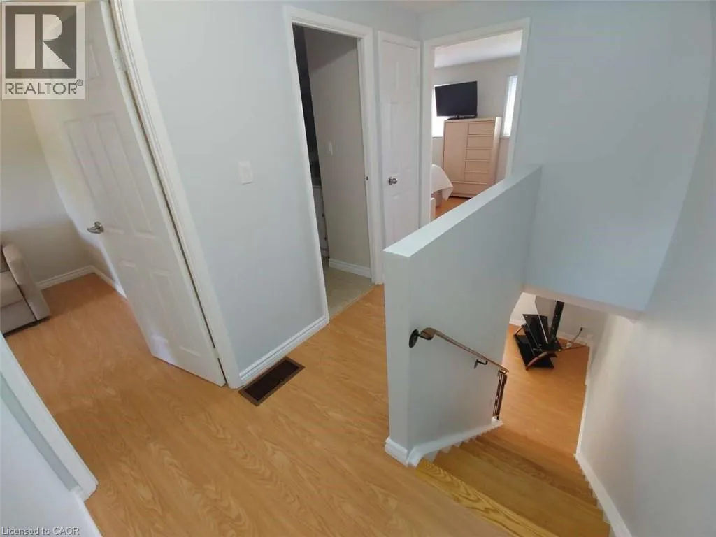 For more info on this property, please click the Brochure button. Location! Location! This stunning 3-bedroom, 1.5 bath townhome must be seen! Perfectly located minutes from Lincoln Alexander and Red Hill Valley parkways! Walking distance to all amenities, including recreational center, schools, churches, parks, trails, and public transportation. Upgrades include but are not limited to: kitchen, bathroom, vanities, laminate floors, solid oak stair treads, front and interior doors, windows, freshly painted walls, and modern light fixtures. All kitchen appliances are brand new. The large living room features a patio door that allows for a natural flow out to the rear, fenced yard. The kitchen has a door to a cozy little balcony with an amazing open space of surrounding view to enjoy coffee while sitting, welcoming the sunshine. Don't miss the opportunity to make this beautiful townhouse your new home! (id:27476)
