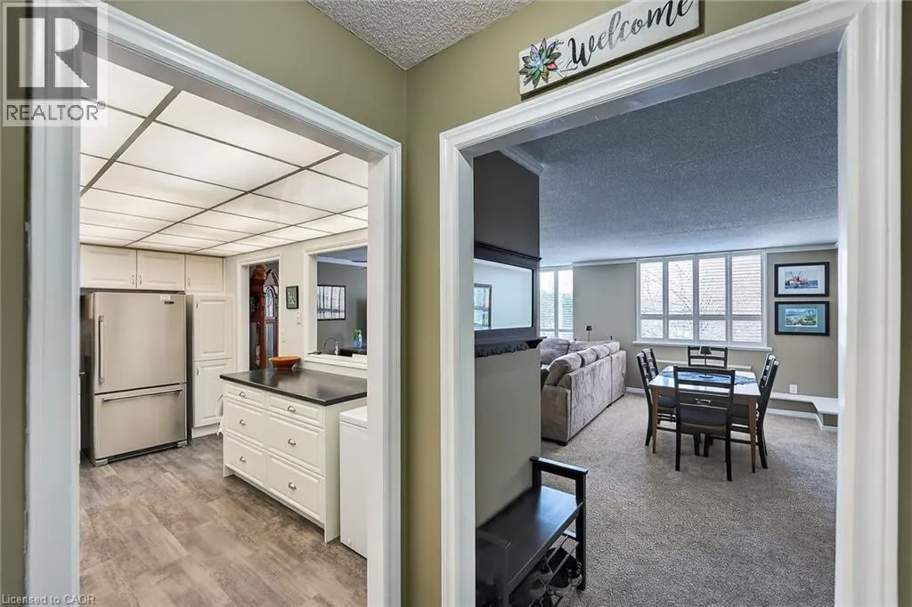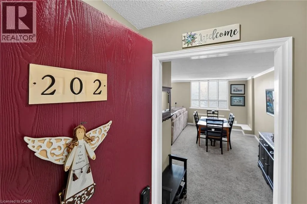 Donn Ave between Gray Rd and Lake Ave Drive Welcome to 99 Donn Avenue, Unit 202 â located in the highly sought-after Florentine Building, a well-maintained community with a predominantly senior-friendly atmosphere. Enjoy an exceptional location within walking distance to Fiesta Mall, public transit, pharmacies, medical offices, restaurants, and just minutes to the QEW and Confederation GO Station. This spacious and beautifully updated unit offers approximately 1,215 sq. ft. of bright, open-concept living space. Tastefully painted and decorated throughout, it features a modern kitchen with updated cabinetry and stainless-steel appliances. The generous living and dining areas are perfect for relaxing or entertaining. The unit includes two large bedrooms, including a primary bedroom with a renovated 3-piece ensuite. A remodeled main 3-piece bathroom with a walk-in shower and new glass doors, plus convenient in-suite laundry, completes the layout. California shutters are on every window throughout the home enabling you to allow as much or as little light as you desire! Recent updates include kitchen cabinetry and stainless-steel appliances in 2022, washer and dryer in 2023, a new heat pump, air conditioner and thermostat in 2024, both bathrooms fully updated with walk-in showers, new carpeting in 2025, and new laminate flooring in the kitchen and bathrooms. Safe underground parking and a storage locker are included. Truly move-in ready â just unpack and enjoy comfortable, worry-free living! (id:27476)