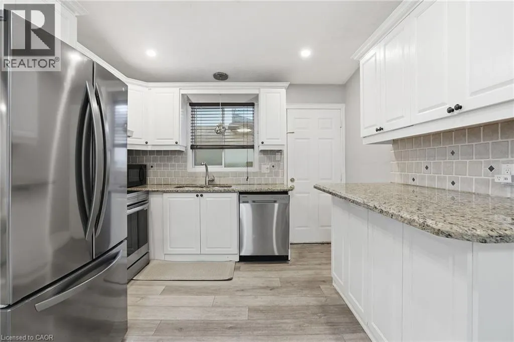 Gordon Drummond to Twinoaks Cres Welcome to this beautifully maintained 4-level backsplit, ideally situated in the highly sought-after community of Stoney Creek. Offering approximately 2,300 sq ft of finished living space, this home is perfectly suited for large or growing families. Step inside to discover a bright and airy main floor featuring an open-concept living and dining areaâideal for entertaining. The spacious kitchen is both stylish and functional, complete with granite countertops and brand new stainless steel appliances (2023). Upstairs, you'll find a generous primary bedroom, two additional well-sized bedrooms, and a full 4-piece bath. The lower level boasts a large family room that can easily be transformed into a luxurious primary suite, complete with its own 3-piece bathroom. Descend to the fully finished basement where you'll find a versatile rec roomâ perfect for a games area, home office, or even a 4th bedroom with double closets. This level also includes a dedicated laundry room, cold storage, and additional space for all your storage needs. The private backyard is a serene retreat, featuring a covered deckâperfect for enjoying your morning coffee or hosting evening gatherings. A double-wide driveway provides ample parking for up to 6 vehicles. Recent updates in 2022: screen doors, garage door with automatic opener, flooring on the main and lower levels, Central air unit & backyard deck. New stainless steel appliances 2023. Location is everything: Just minutes to major highways, and within close proximity to shopping, dining, movie theatres, parks, and excellent schools. Don't miss your opportunity to call this wonderful home your own. (id:27476)