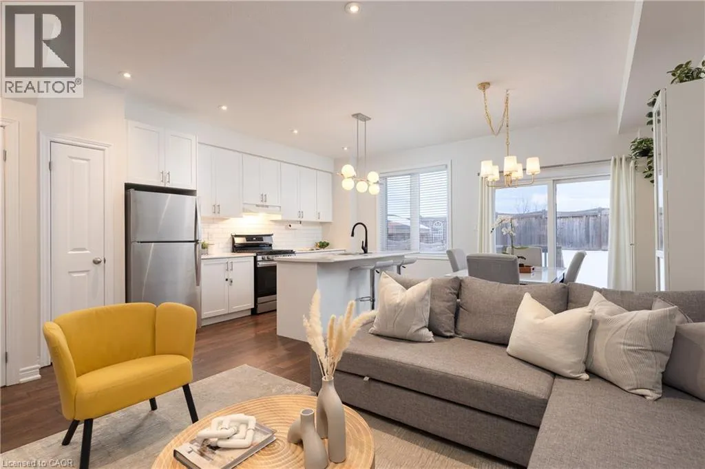 Take QEW Niagara to Fifty Rd. Exit on Fifty Rd and turn right. Turn right onto Sonoma Ln and then right onto Pinot Cres Beautifully maintained freehold townhome in the sought-after Foothills of Winona, offering the perfect combination of space, upgrades, and location. This bright 3-bedroom, 2.5-bathroom home features an excellent two-storey layout ideal for families, professionals, and commuters alike. The upgraded main floor showcases 9-foot ceilings, hardwood flooring, an oak staircase, pot lights, and a seamless open-concept design. The kitchen is both stylish and functional with white cabinetry, stainless steel appliances, and a large island overlooking the living and dining areas. Walk out to a private, fully fenced backyard with deck â perfect for summer entertaining. Upstairs, the oversized primary bedroom includes two walk-in closets and a private 3-piece ensuite. Two additional generously sized bedrooms and a full 4-piece bathroom complete the upper level. The basement offers endless potential and is already roughed-in for a future bathroom, making it ideal for additional living space, a home gym, or a home office. Located just minutes to the QEW, this home is a fantastic option for commuters while still being surrounded by convenience. Enjoy quick access to shopping, restaurants, parks, schools, Winona Crossing, and waterfront trails at Fifty Point Conservation Area. An exceptional opportunity to own a move-in ready freehold townhouse in one of Winona's fastest growing communities. (id:27476)