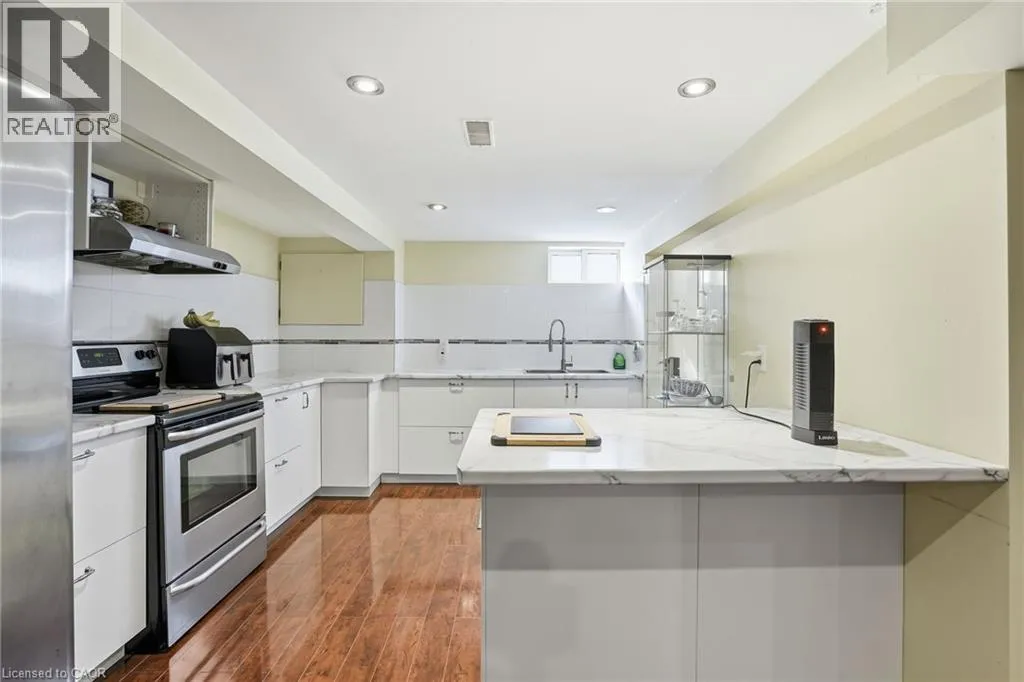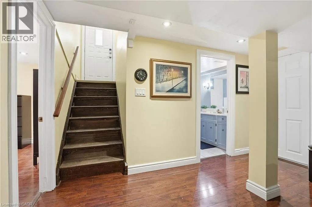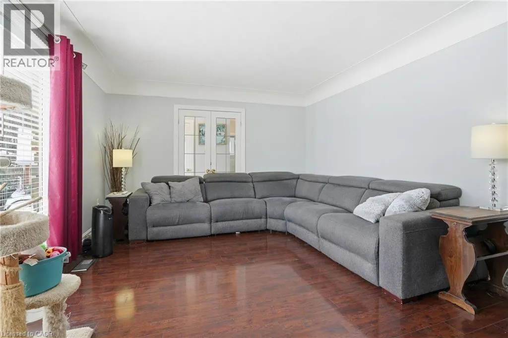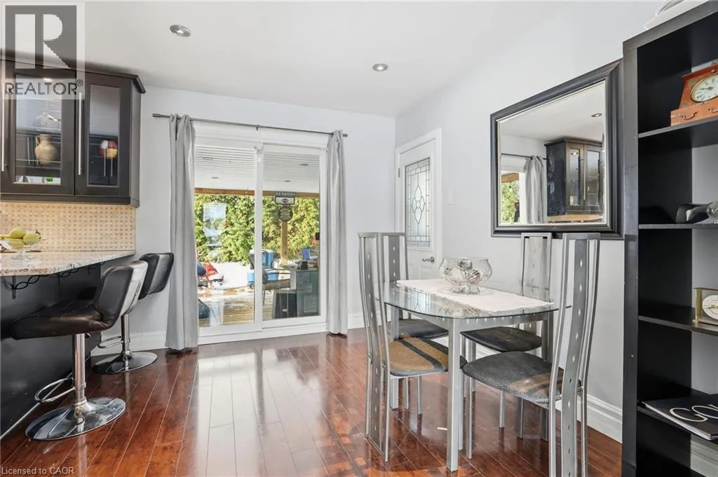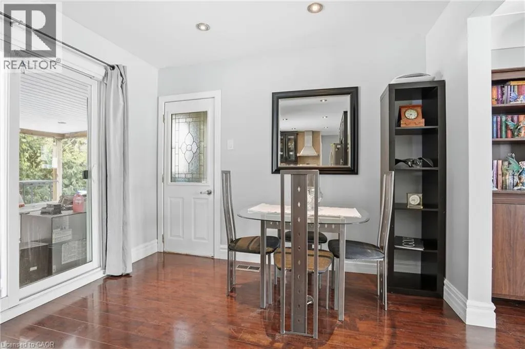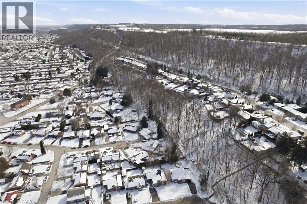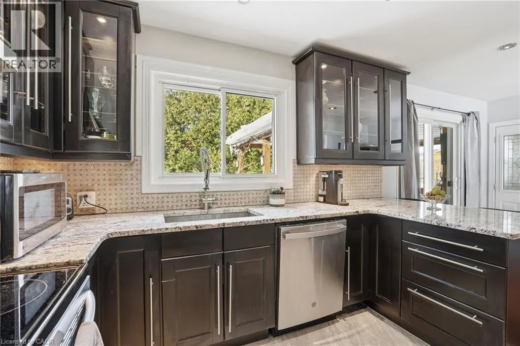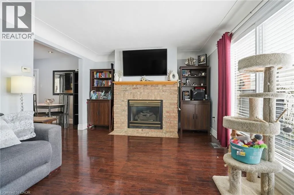 King St E / New Mountain Rd / Cherrywood Dr / Piott Ct Escarpment Views! Rare Court Location in Old Stoney Creek. Complete In-Law Suite with Separate Entrance! Homes seldom come available on this private cul-de-sac in the sought-after Battlefield community. This lovingly maintained solid brick home offers 4 bedrooms, 2 baths, and exceptional versatility for families or multi-generational living. The main level features an eat-in kitchen, separate dining room, and a bright living room with French doors and a cozy gas fireplace. Updated laminate and hardwood flooring, newer windows and doors reflect pride of ownership throughout. The fully finished lower level is a complete in-law suite featuring a brand-new full kitchen, offering excellent flexibility for extended family living. Set on a beautifully treed pie-shaped lot, the backyard is designed for entertaining, featuring a heated in-ground pool, an updated stone patio, two gazebos, and full fencing for kids and pets. A unique loft-style bedroom and enclosed porch overlooking the yard add charm and flexibility. Quiet court living beneath the Escarpment a rare opportunity in one of Old Stoney Creek's most desirable pockets. (id:27476)